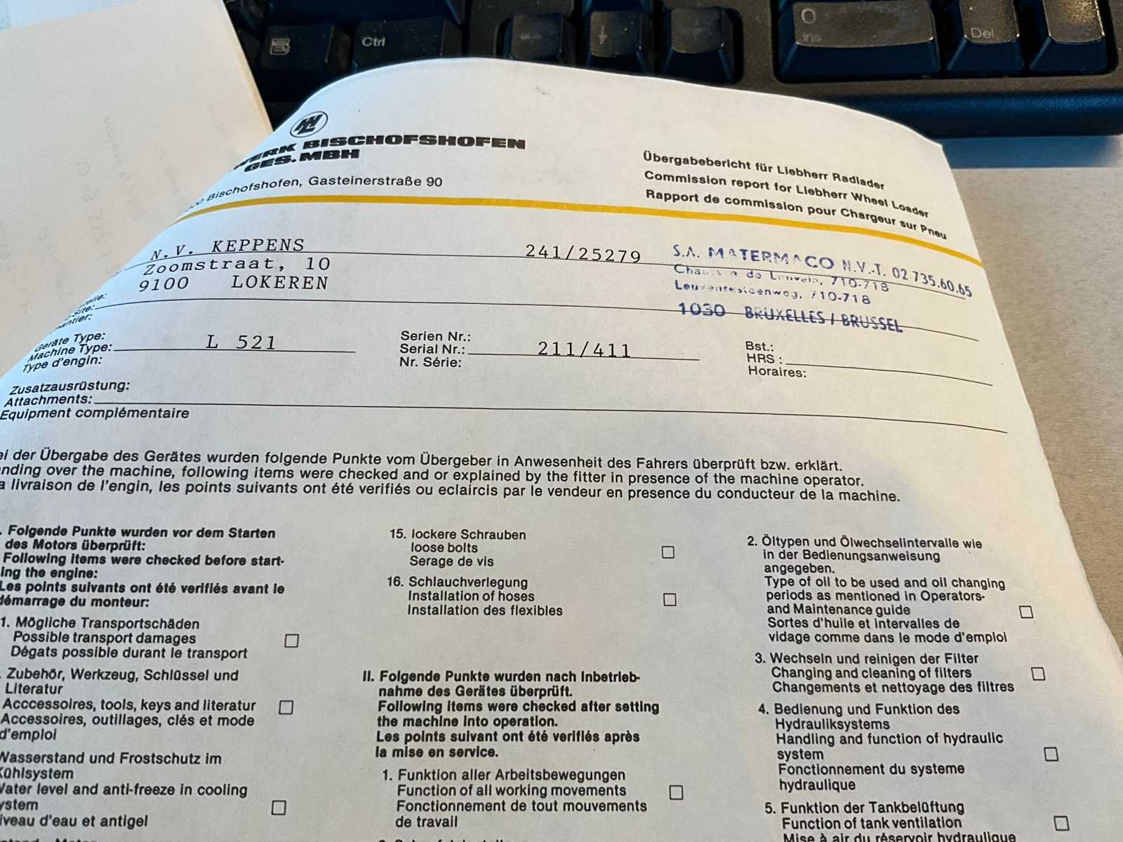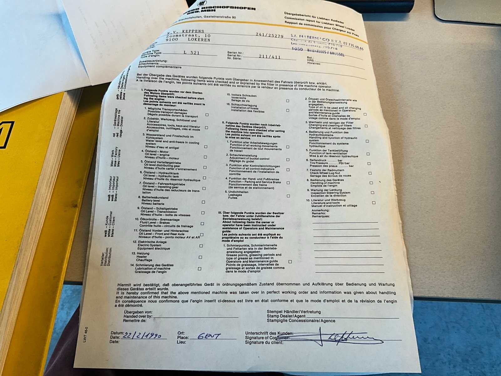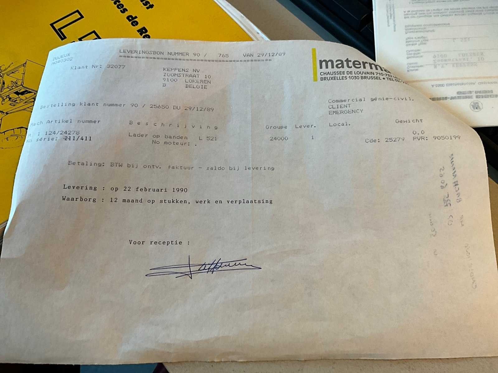 Start en rijdt. Voorzien van wisselstukkenboek bandenlader en handleiding. Ook leveringsbon en rapport. No Merk: Liebherr Type: L 521 Bouwjaar: 1990 Serienummer: 211/411 Brandstof: Diesel Graafbak afm. l: 2400mm Graafbak afm. b: 800mm Graafbak afm. h: 900mm Afgelezen urenstand: 10956