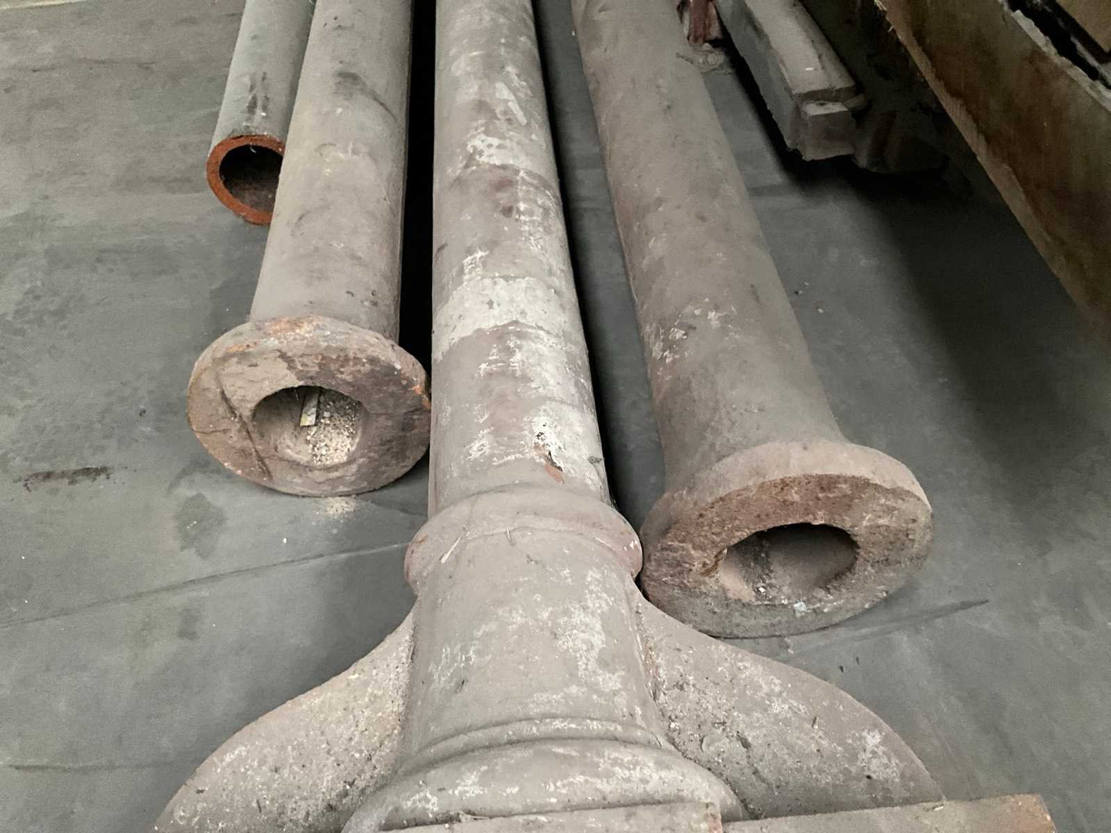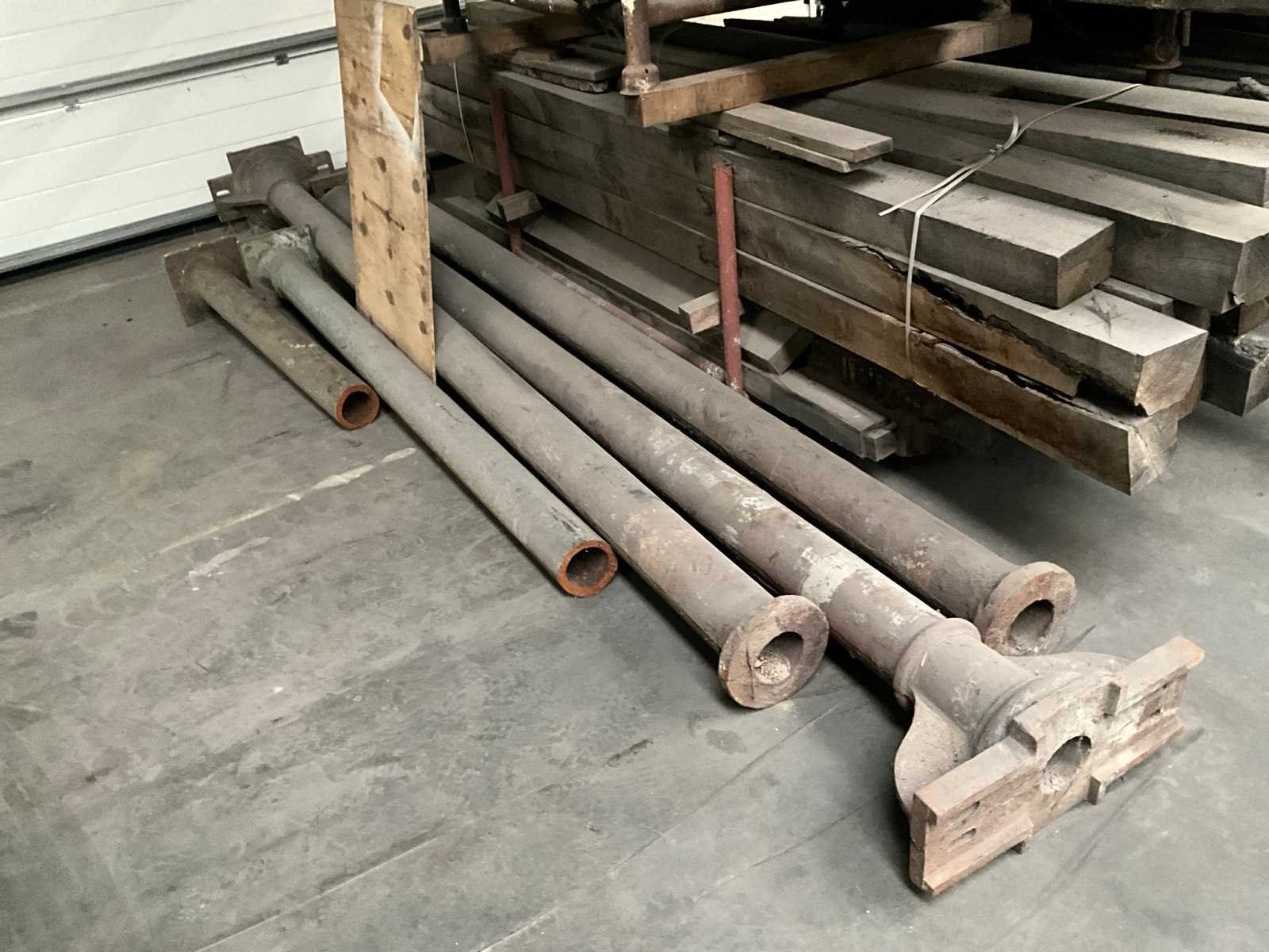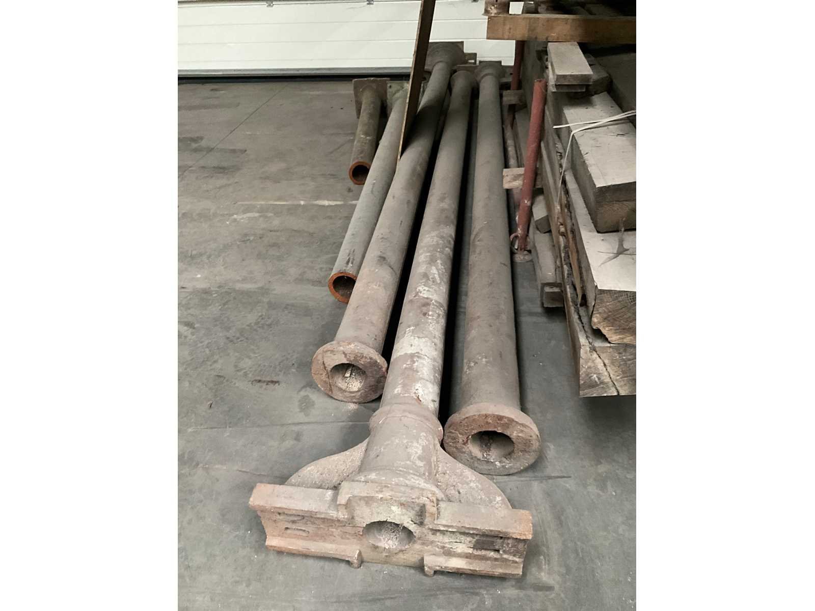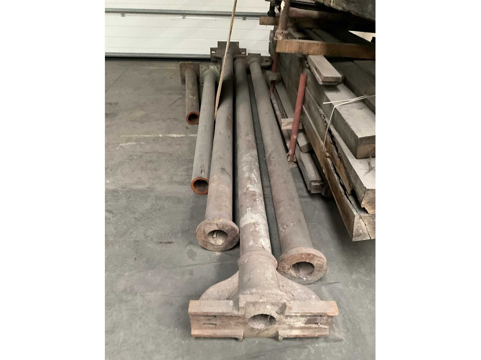 Met lengte 420 cm en dia 16 cm, wanddikte 2 cm, elke kolom ongeveer 350 kg. en enige restanten. No