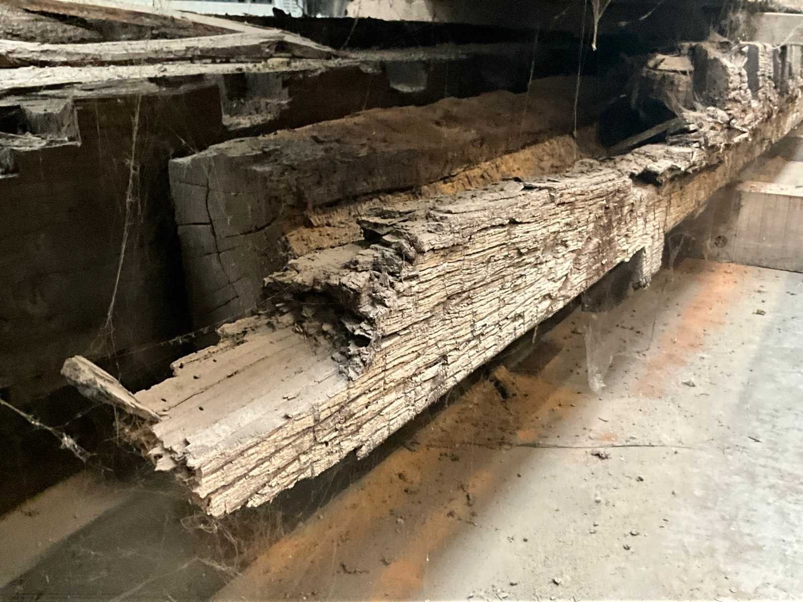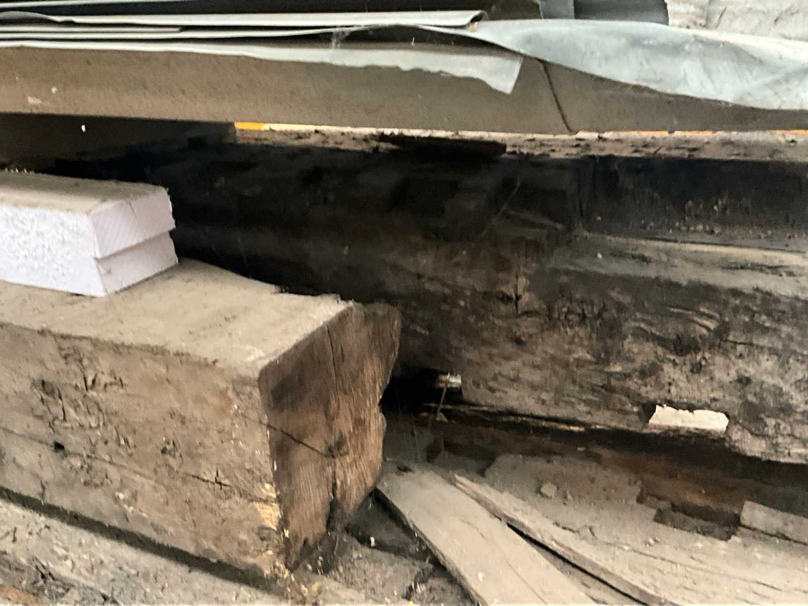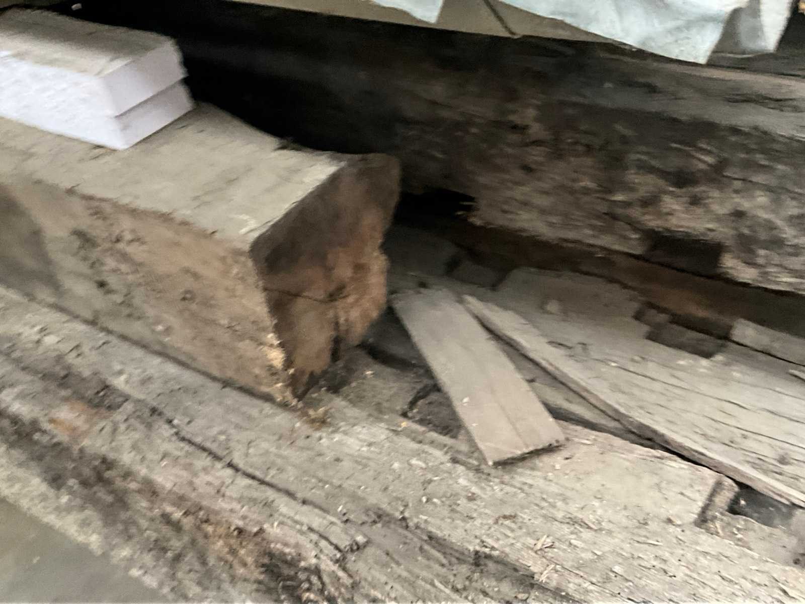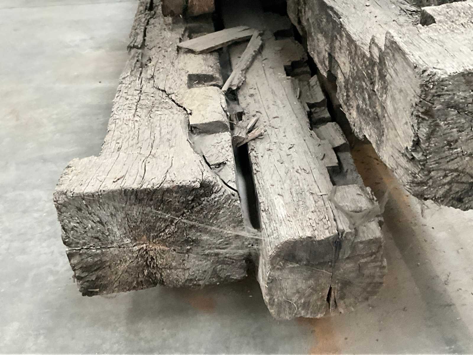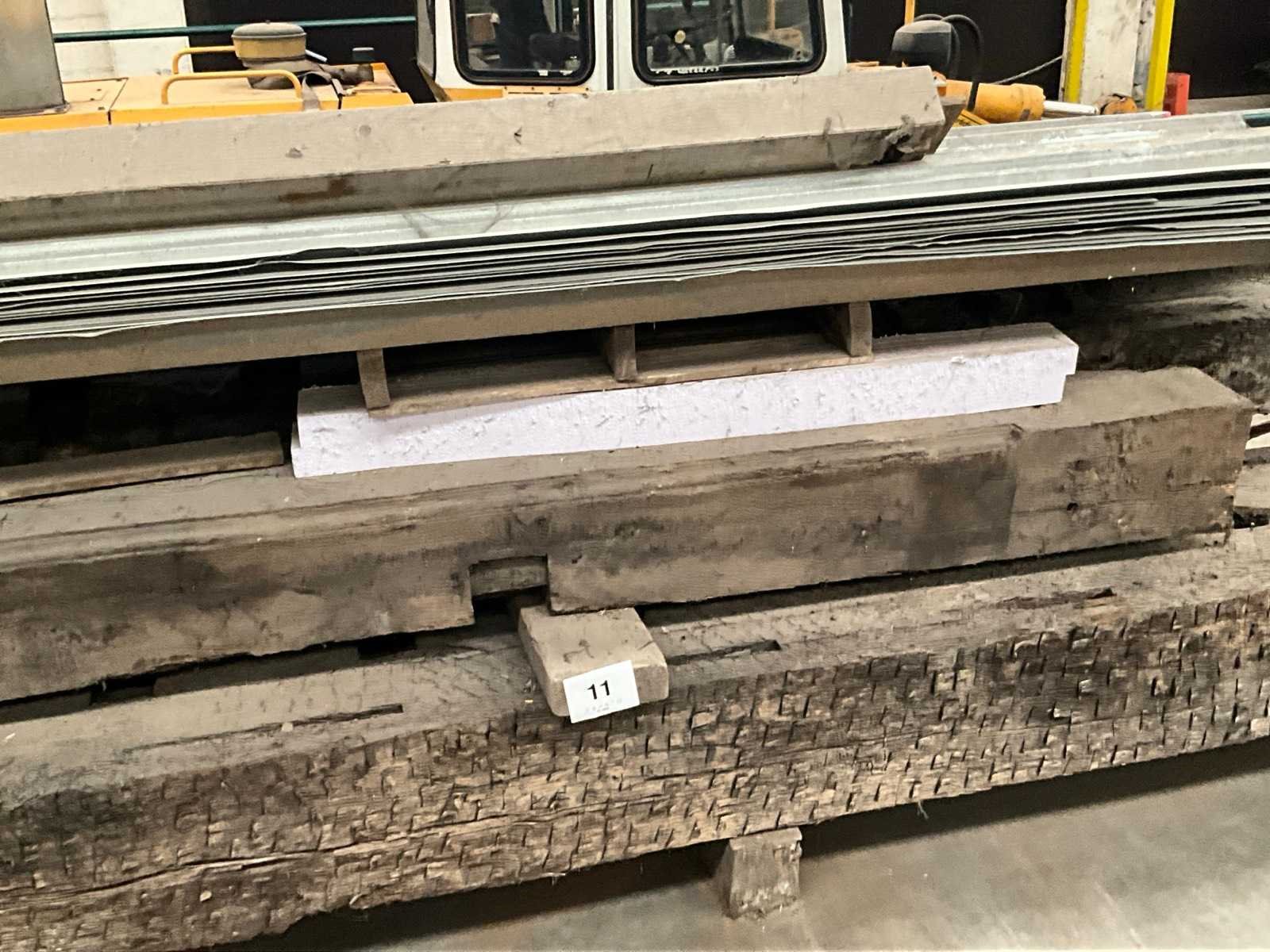 Waaronder met lengtes 600 tot 650 cm en met diktes en breedtes 39x32cm, 30x40cm, 29x26cm, compleet met partij ijzeren dakplaten. No