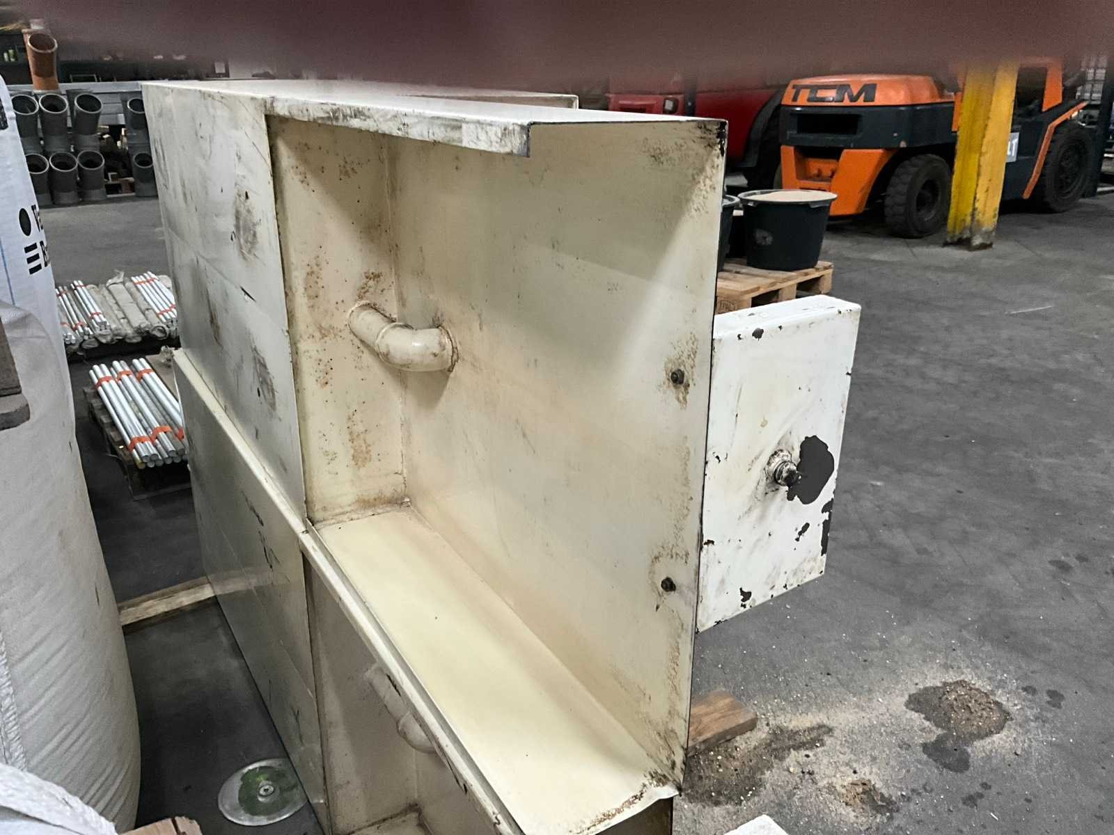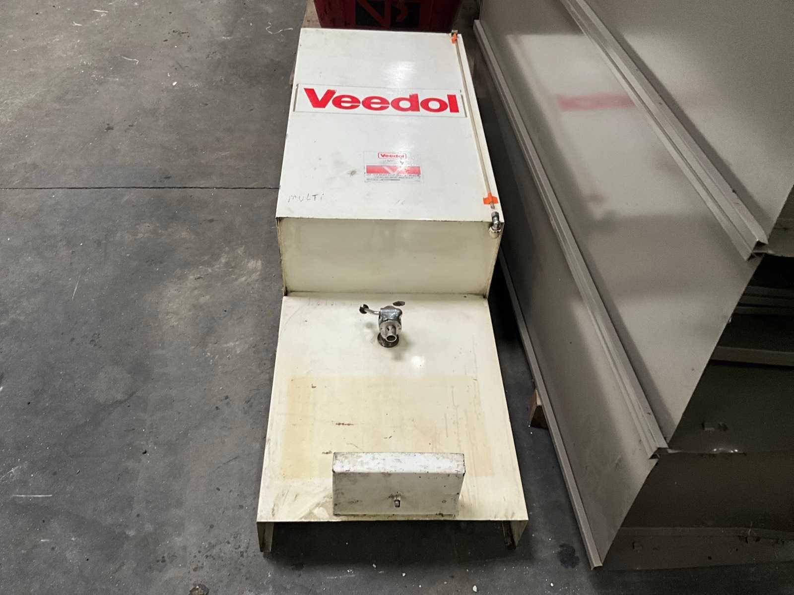 Voorzien van aftapkraan onderaan en vulopening met dop bovenaan. Met houder onder aftapkraan en peilmeter vooraan. (eventueel om tegen muur te plaatsen) Ongeveer voor 200 liter inhoud. Nee Merk: VEEDOL Totale afmeting L: 430mm Totale afmeting Breedte: 550mm Totale afmeting Hoogte: 1650mm