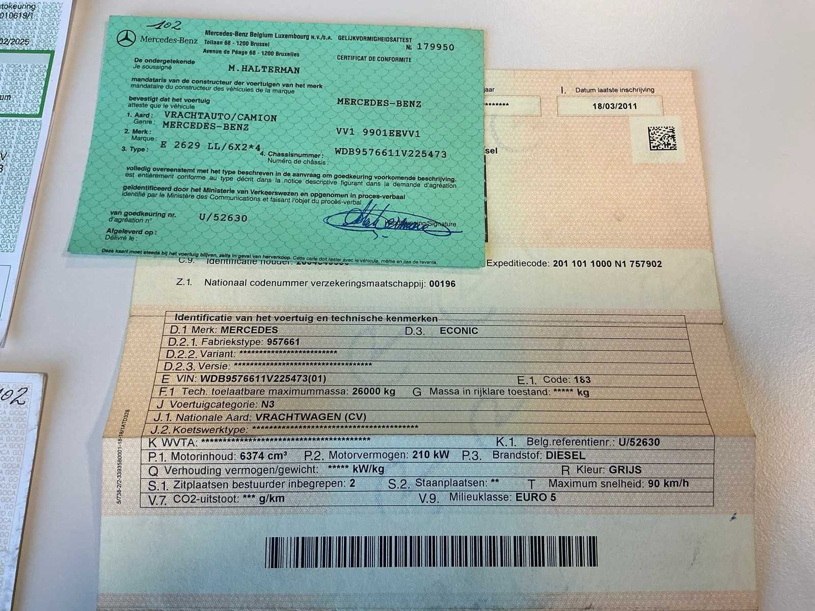 Voorzien van afvalpers Pusher 2000 CB Duel, bj. 2011, Heeft luchtdrukverlies door gesprongen luchtbal Nee Merk: Mercedes-Benz Type: Econic Bouwjaar: 2011 Chassisnummer VIN: WDB9576611V225473 Cilinderinhoud: 6734cc Kilometerstand bij opname: 245358km Datum eerste toelating: 18/03/2011 Type transmissie: Automatisch Aantal assen: 3 Fuel Type: Diesel Aantal sleutels: 2 Emissieklasse: Euro 5 Nationaliteit documenten: België Kentekenpapieren compleet?: true Automaat: true