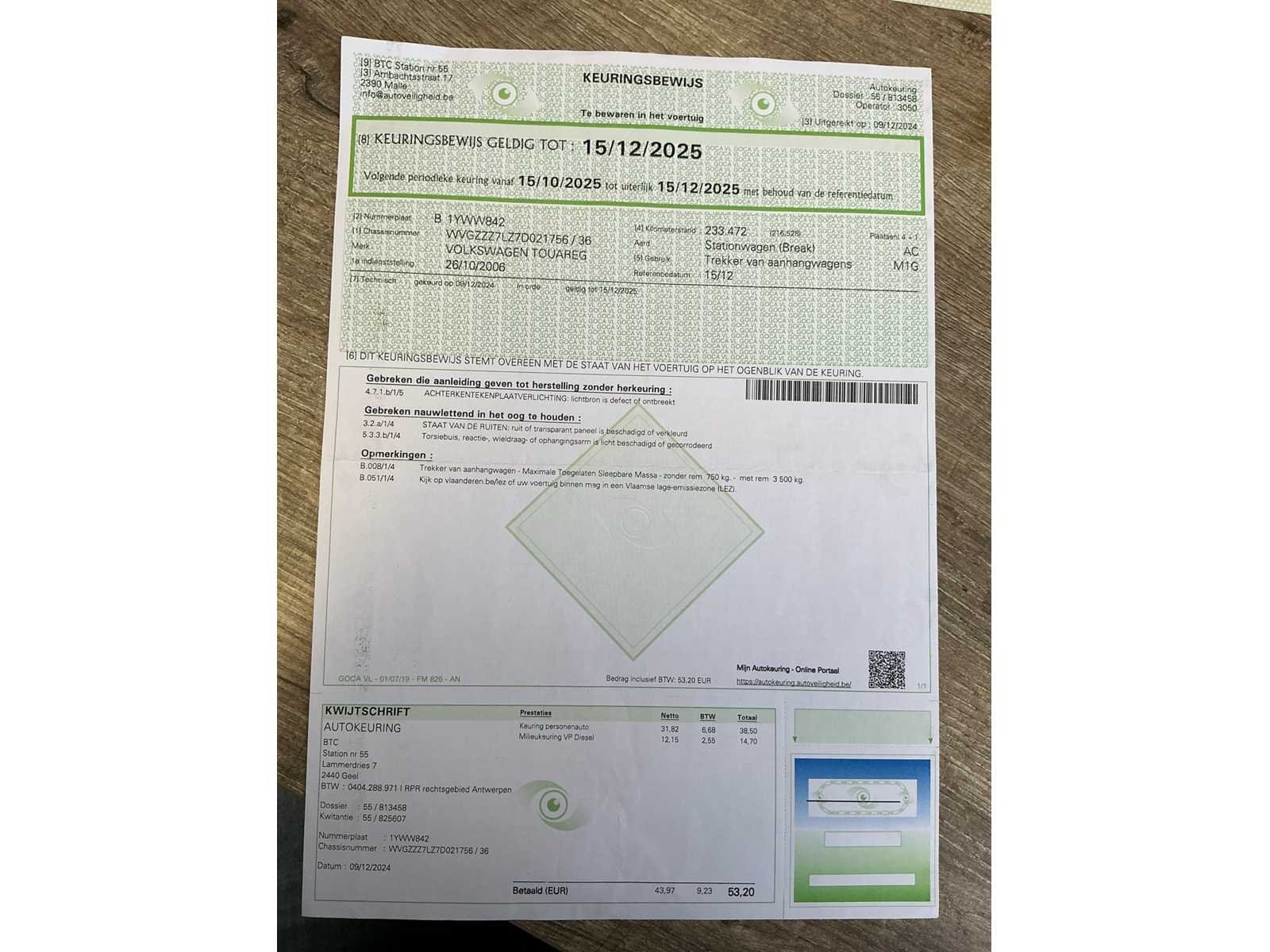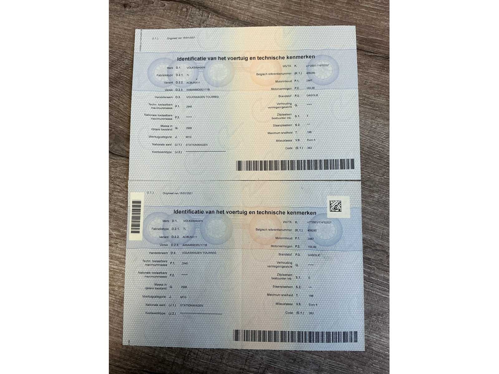 Nee Merk: Volkswagen Model: Touareg Type: SUV Bouwjaar: 2006 Afgelezen kilometerstand: 250758km Cilinderinhoud: 2967cc Vermogen (kW): 155kW Brandstof: diesel Chassisnummer: WVGWVGZZZ7LZ7D021756 Datum eerste toelating: 26/10/2006 Aantal zitplaatsen: 5 Transmissie: Automaat Aantal deuren: 5 Aantal sleutels: 2 Nationaliteit documenten: België Gelijkvormigheidsattest aanwezig: true Start en rijdt: Ja Keuringsrapport geldig tot: 15/12/2025 Vavato voert geen technische keuring uit.: true Airconditioning: true Navigatie: true Leder bekleed: true Vierwielaandrijving 4x4: true Inschrijvingsbewijs - deel 1 : Aanwezig Inschrijvingsbewijs - deel 2: Aanwezig