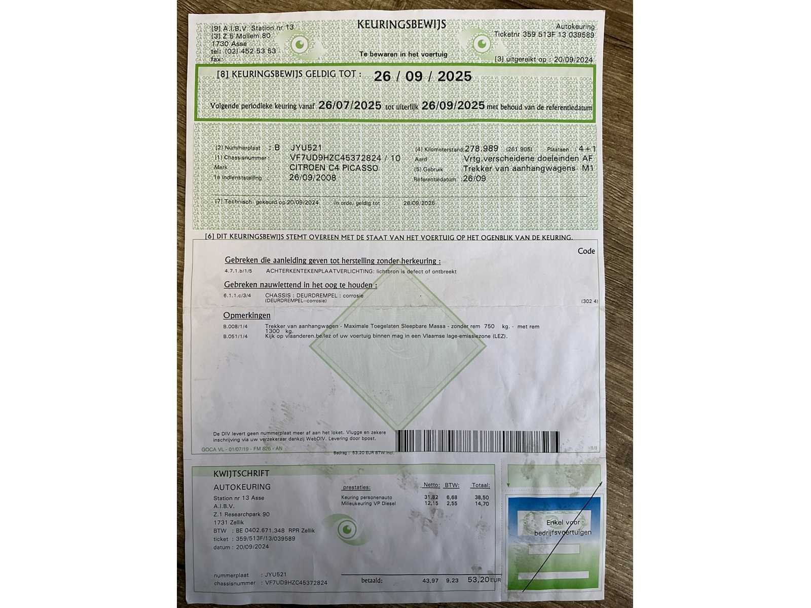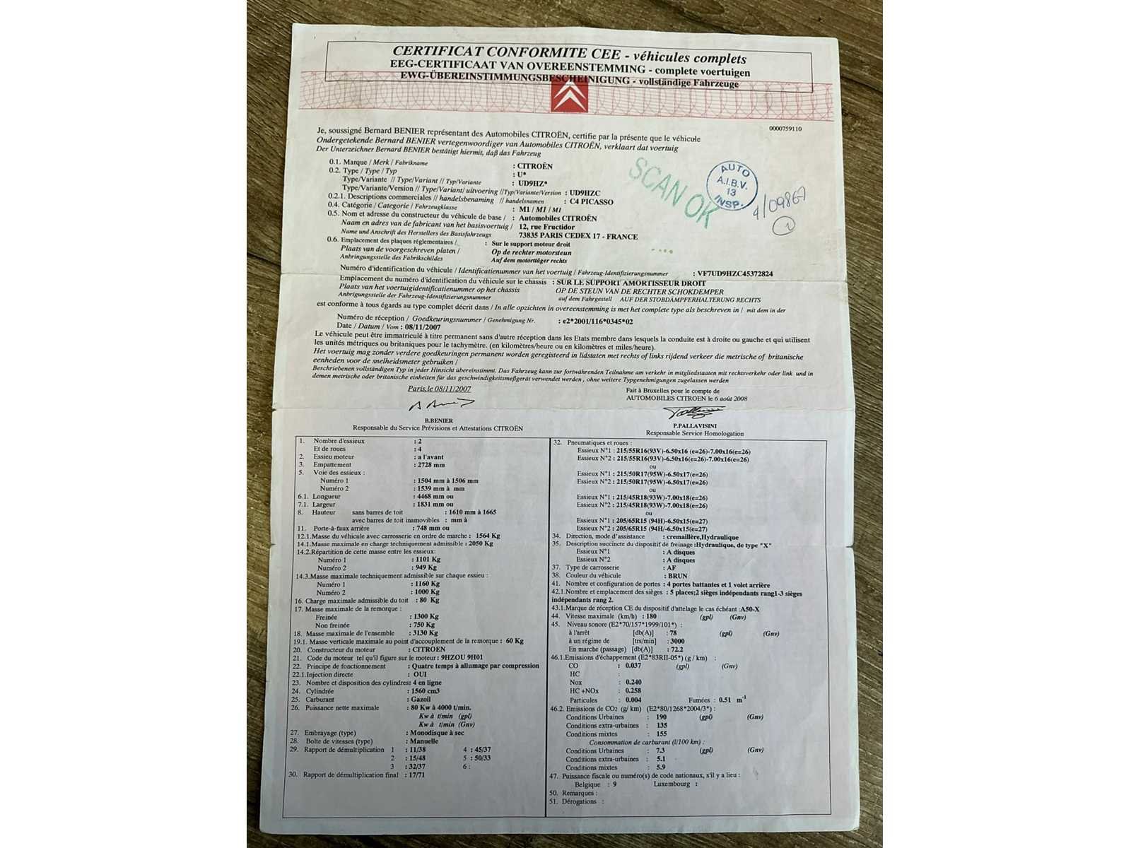 Nee Merk: Citroën Model: C4 Type: Picasso Bouwjaar: 2008 Afgelezen kilometerstand: 296158km Brandstof: diesel Chassisnummer: WF7U51009HZC45372824 Datum eerste toelating: 26/09/2008 Aantal zitplaatsen: 5 Kleur: Bruin Aantal sleutels: 2 Nationaliteit documenten: België Carpass: true Start en rijdt: Ja Keuringsrapport geldig tot: 26/09/2025 Vavato voert geen technische keuring uit.: true Inschrijvingsbewijs - deel 1 : Aanwezig