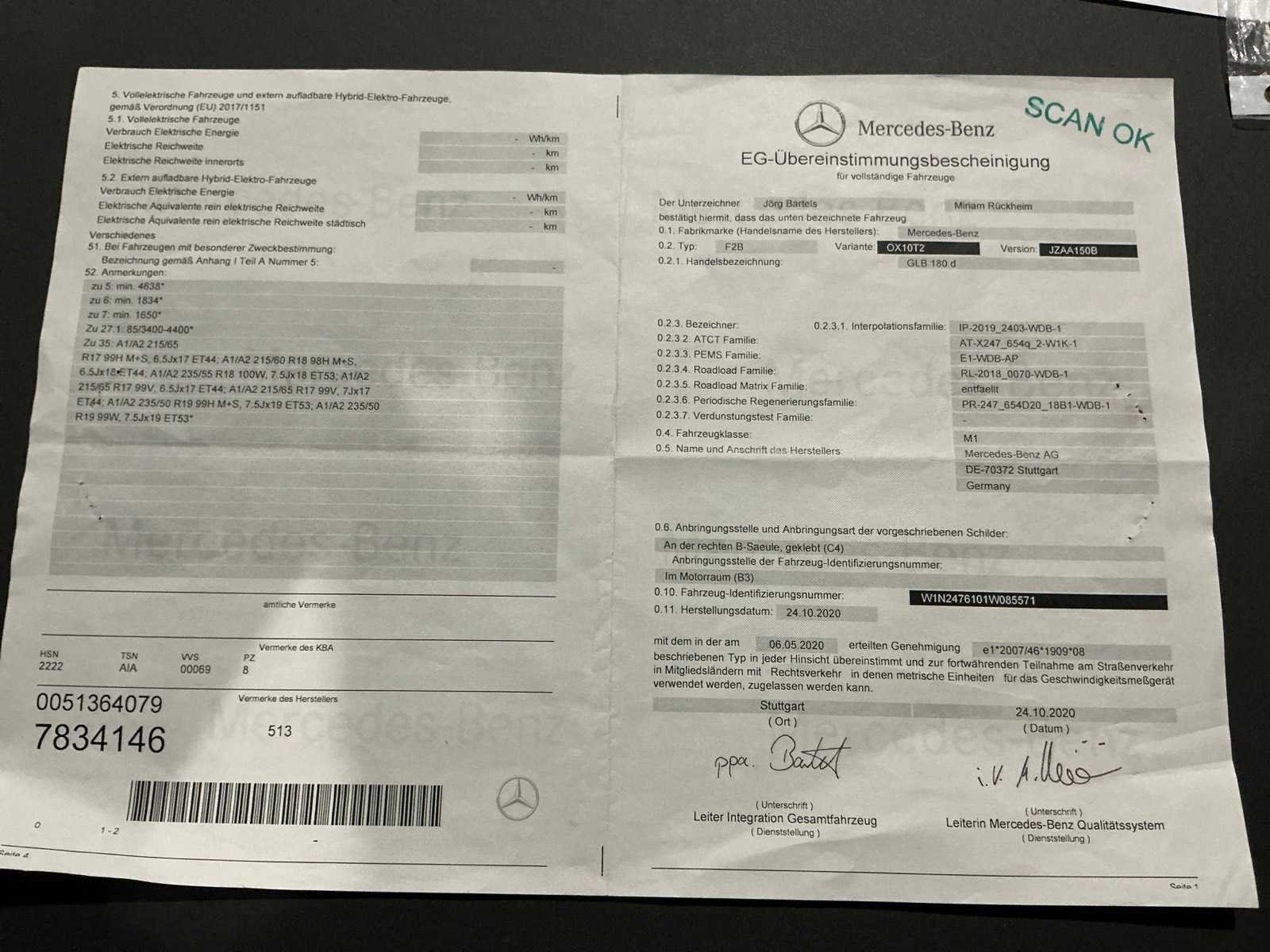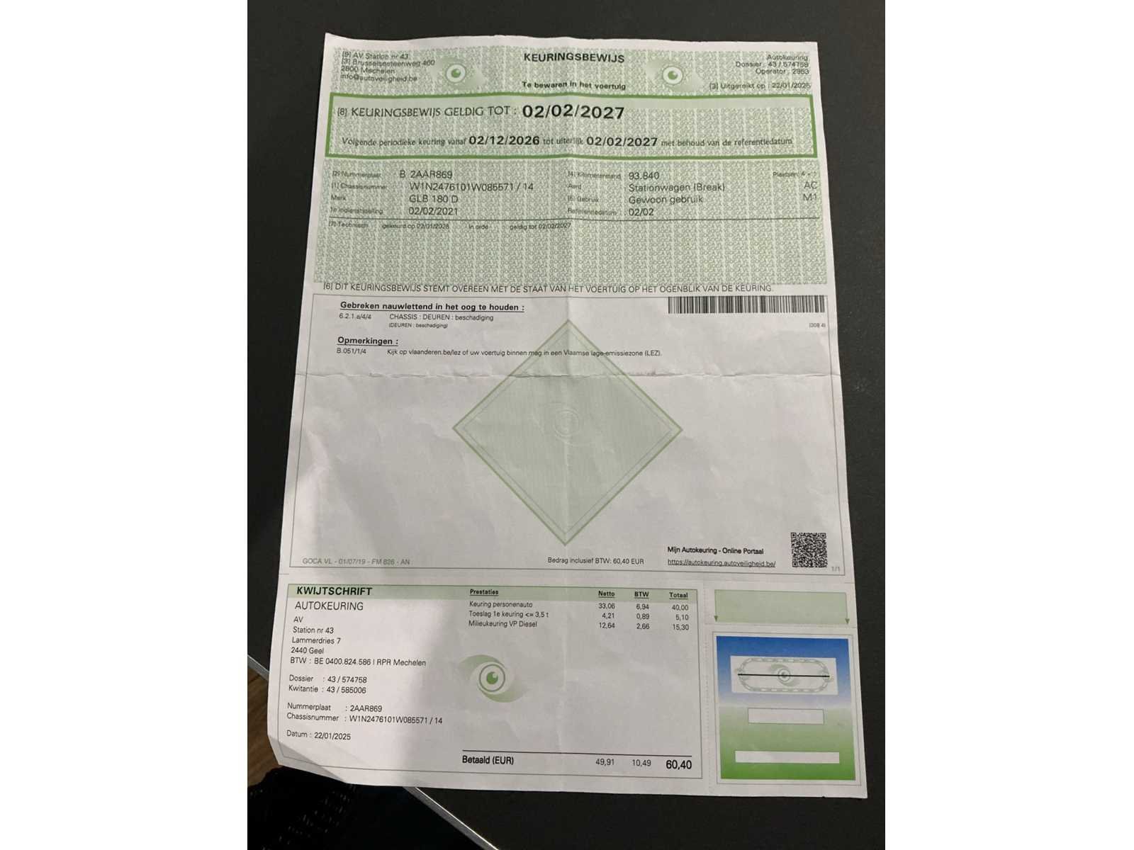 Nee Merk: Mercedes-Benz Model: GLB 180 Bouwjaar: 2021 Afgelezen kilometerstand: 115812km Cilinderinhoud: 1950cc Vermogen (kW): 85kW Brandstof: diesel Chassisnummer: W1N2476101W085571 Datum eerste toelating: 02/02/2021 Aantal zitplaatsen: 5 Kleur: Zwart met. Transmissie: Automaat Aantal deuren: 5 Aantal sleutels: 2 Nationaliteit documenten: België Gelijkvormigheidsattest aanwezig: true Start en rijdt: Ja Keuringsrapport geldig tot: 02/02/2007 Airconditioning: true Navigatie: true Inschrijvingsbewijs - deel 1 : Aanwezig Inschrijvingsbewijs - deel 2: Aanwezig
