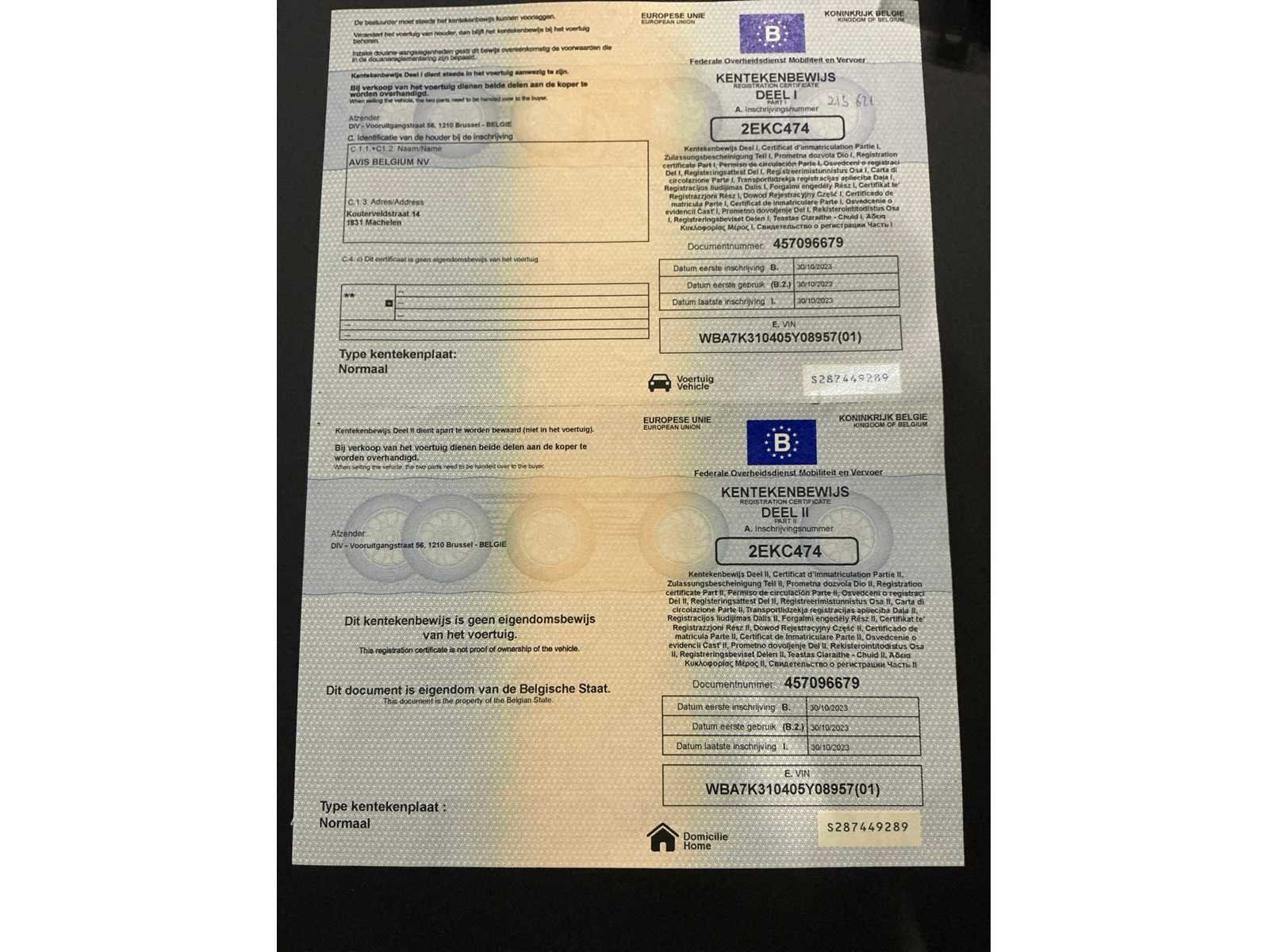 Nee Merk: BMW Model: 118i Bouwjaar: 2023 Afgelezen kilometerstand: 47217km Cilinderinhoud: 1499cc Vermogen (kW): 100kW Brandstof: benzine Chassisnummer: WBA7K310405Y08957 Datum eerste toelating: 30/10/2023 Aantal zitplaatsen: 5 Transmissie: Automaat Emissieklasse: 6d-ISC-FCM Aantal deuren: 5 Aantal sleutels: 2 Nationaliteit documenten: België Gelijkvormigheidsattest aanwezig: true Start en rijdt: Ja Airconditioning: true Navigatie: true Inschrijvingsbewijs - deel 1 : Aanwezig Inschrijvingsbewijs - deel 2: Aanwezig