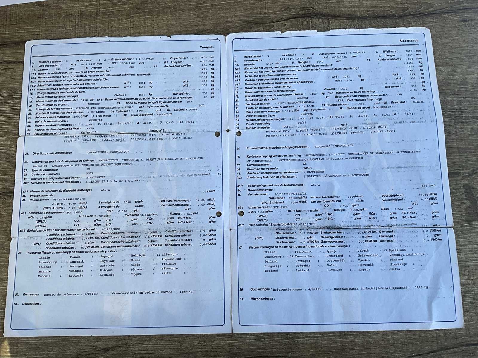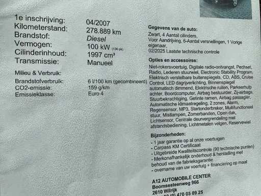 Nee Merk: Peugeot Model: 307 Bouwjaar: 2013 Afgelezen kilometerstand: 278889km Cilinderinhoud: 1997cc Vermogen (kW): 100kW Brandstof: diesel Chassisnummer: VF33BRHRH84829869 Datum eerste toelating: 20/04/2007 Transmissie: Handgeschakeld Emissieklasse: Euro 4 Aantal sleutels: 1 Nationaliteit documenten: Belgisch Gelijkvormigheidsattest aanwezig: true Start en rijdt: Ja Keuringsrapport geldig tot: 27/03/2025 Vavato voert geen technische keuring uit.: true Inschrijvingsbewijs - deel 1 : Aanwezig Inschrijvingsbewijs - deel 2: Aanwezig