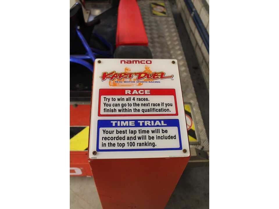 Go Kart race arcade met bewegende kart. Met stereo geluid en realistisch beeld. Met muntinworp of free play. Met beveiliging. Nee Merk: Namco Type: Kart Duel Lengte: 236.5cm Breedte: 178cm Hoogte: 169cm Gewicht: 423kg Bouwjaar: 2000
