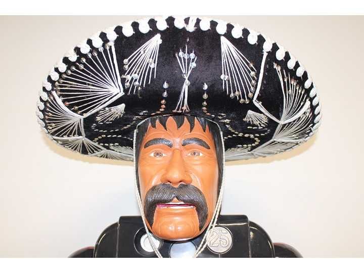 Unieke Mexicaan met Mills High Top slotmachine. Handgemaakt in Amerika. Werkt op Amerikaanse dimes en betaalt deze ook uit. Cowboy is gesigneerd met stempel. Nee Merk: Richard de Long Type: Mills High Top Materiaal: Hout / Metaal Bouwjaar: 1950