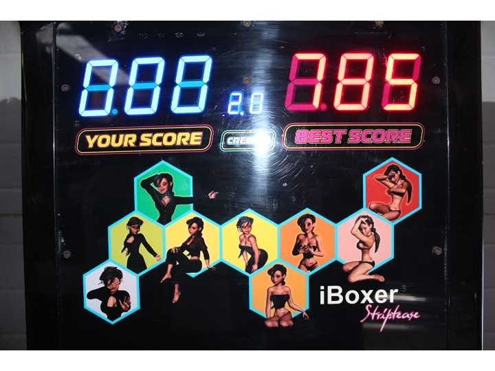 Boksmachine met 1 en 2 euro muntinworp, met diverse spellen waaronder striptease voor de hoogste score Nee Merk: Kriss Kross Type: I Boxer Hoogte: 205cm Gewicht: 130kg Model: Striptease