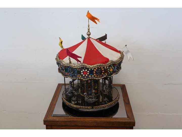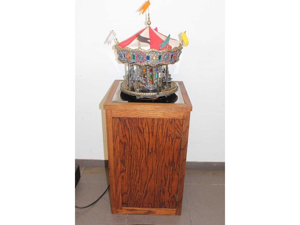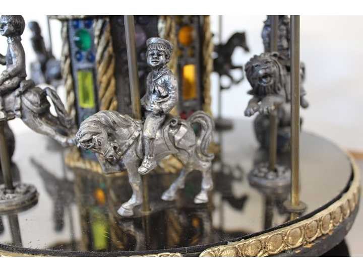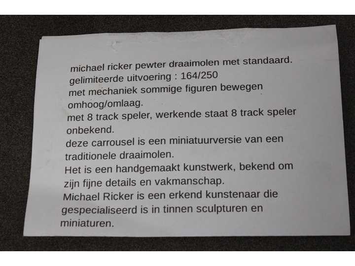 Draaimolen met echte tinnen figuren, Limited Edition 164/250, met licht en muziek, 8 track speler Nee Merk: Michael Ricker Model: Draaicarrousel Gewicht: 60 Lengte: 47 Breedte: 47 Hoogte: 132