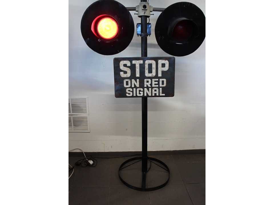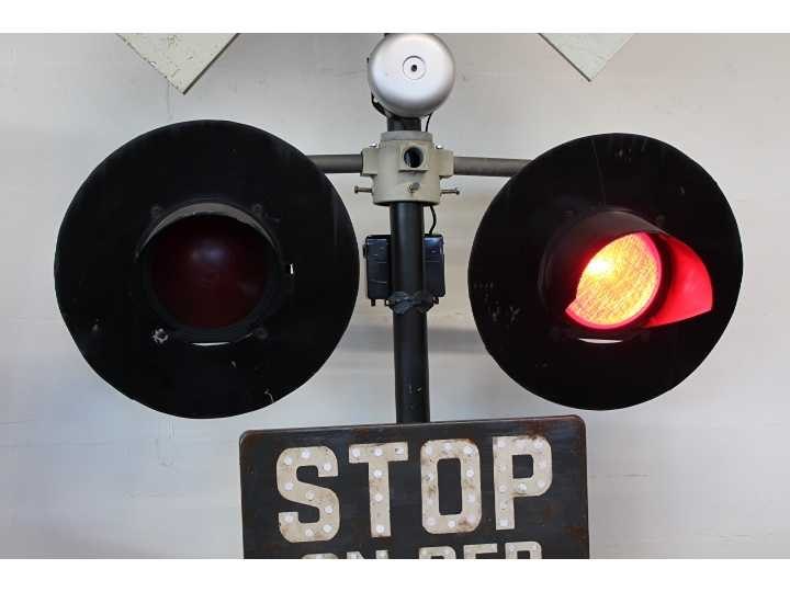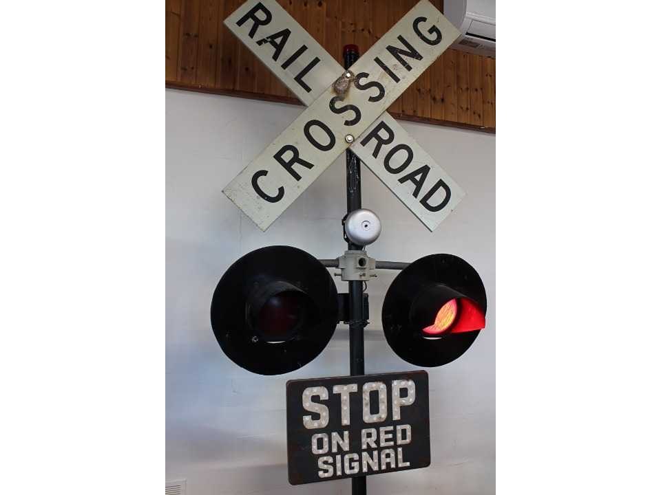 Authentieke spoorwegovergang met knipperende waarschuwingslichten en bel, ongeveer 250 cm hoog, 220 Volt Nee
