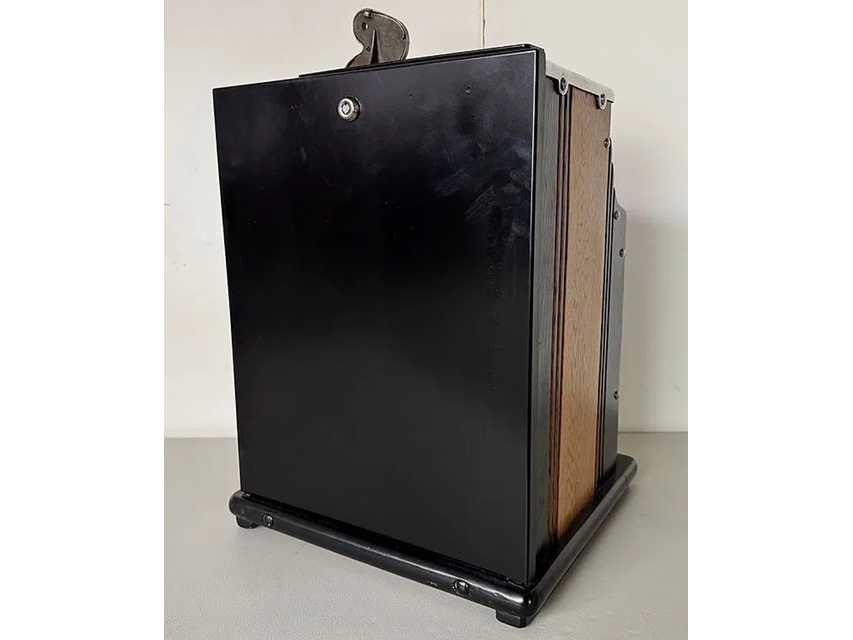 Mechanische slotmachine, geheel gerestaureerd, met werkende dubbele jackpot, Amerikaanse Quarters en betaalt deze ook uit No Merk: Watling Type: Treasury Lengte: 41cm Breedte: 44cm Hoogte: 63cm Gewicht: 30kg Bouwjaar: 1935
