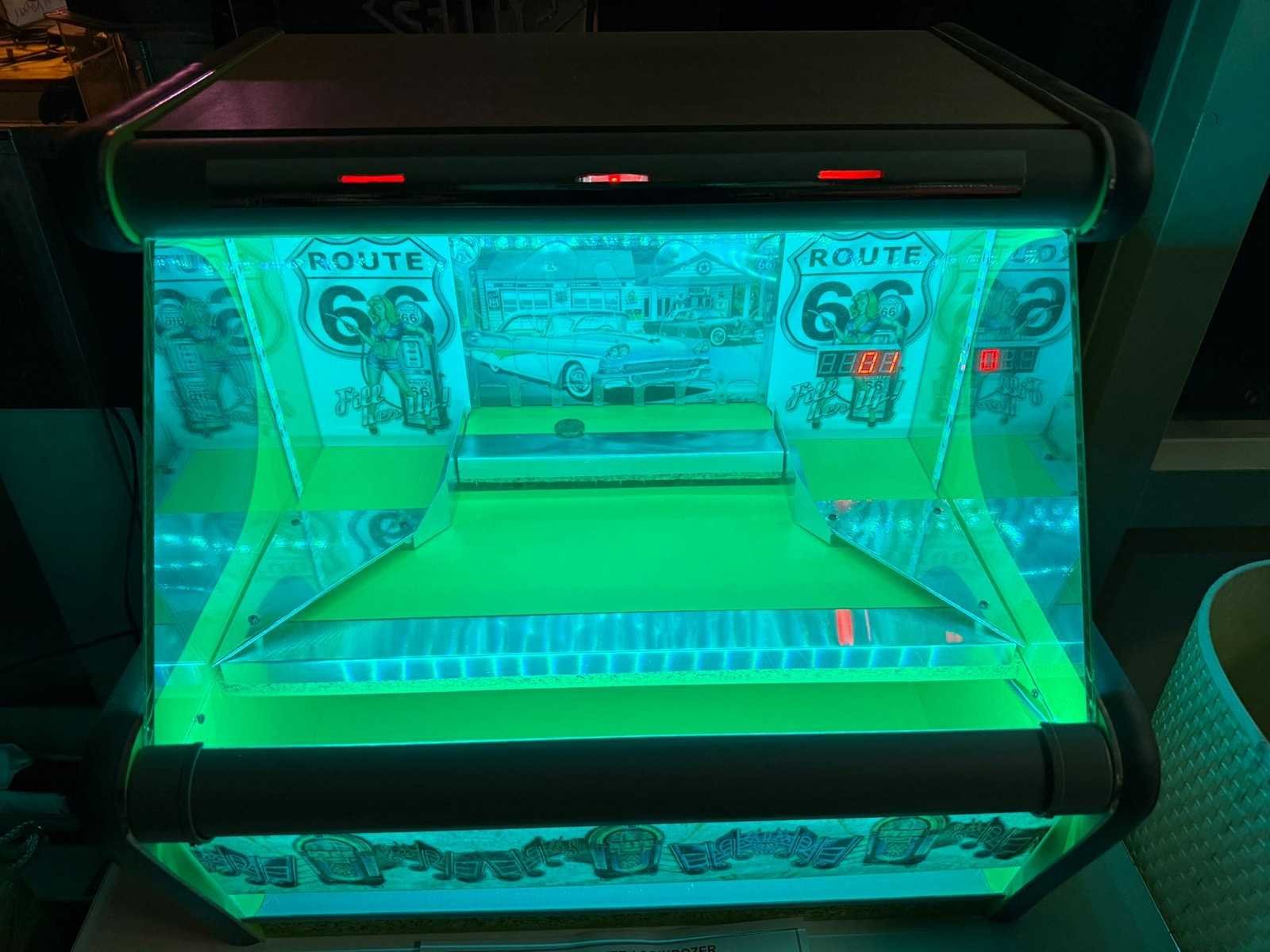Compacte muntenschuiver op euromunten, met diverse fifties muziek, 220 Volt Nee Merk: Route 66