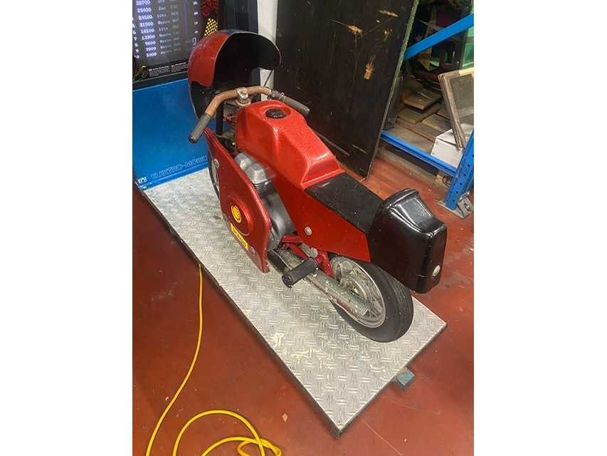 Kinder Race Arcade motorfiets, jaren 70-80 van de vorige eeuw, werkend No Merk: EMT Type: Speedway
