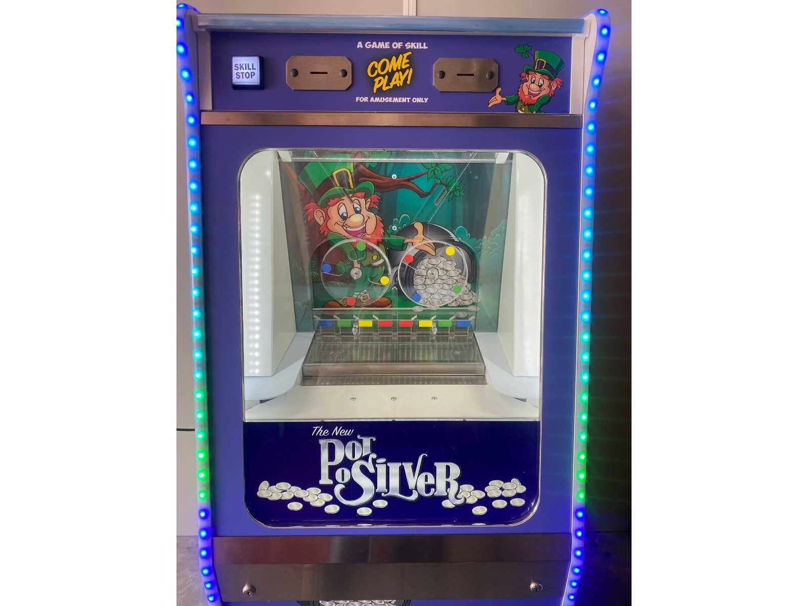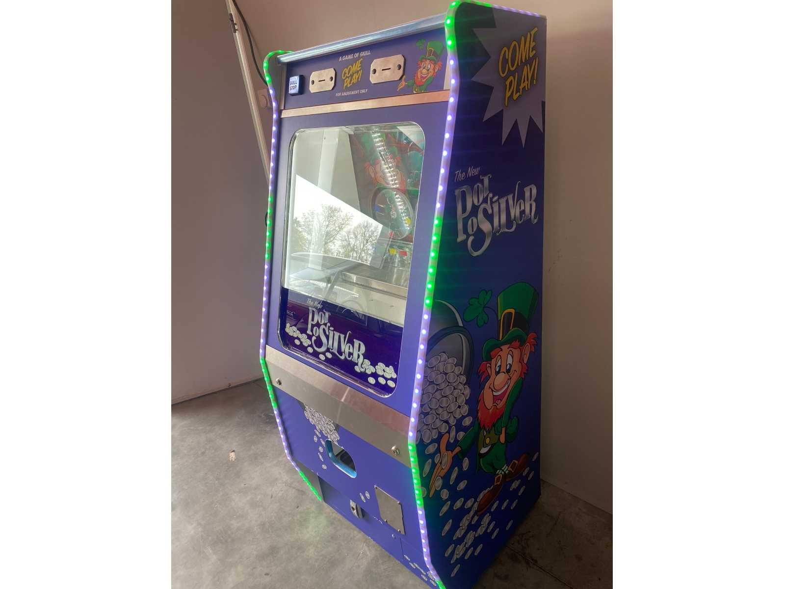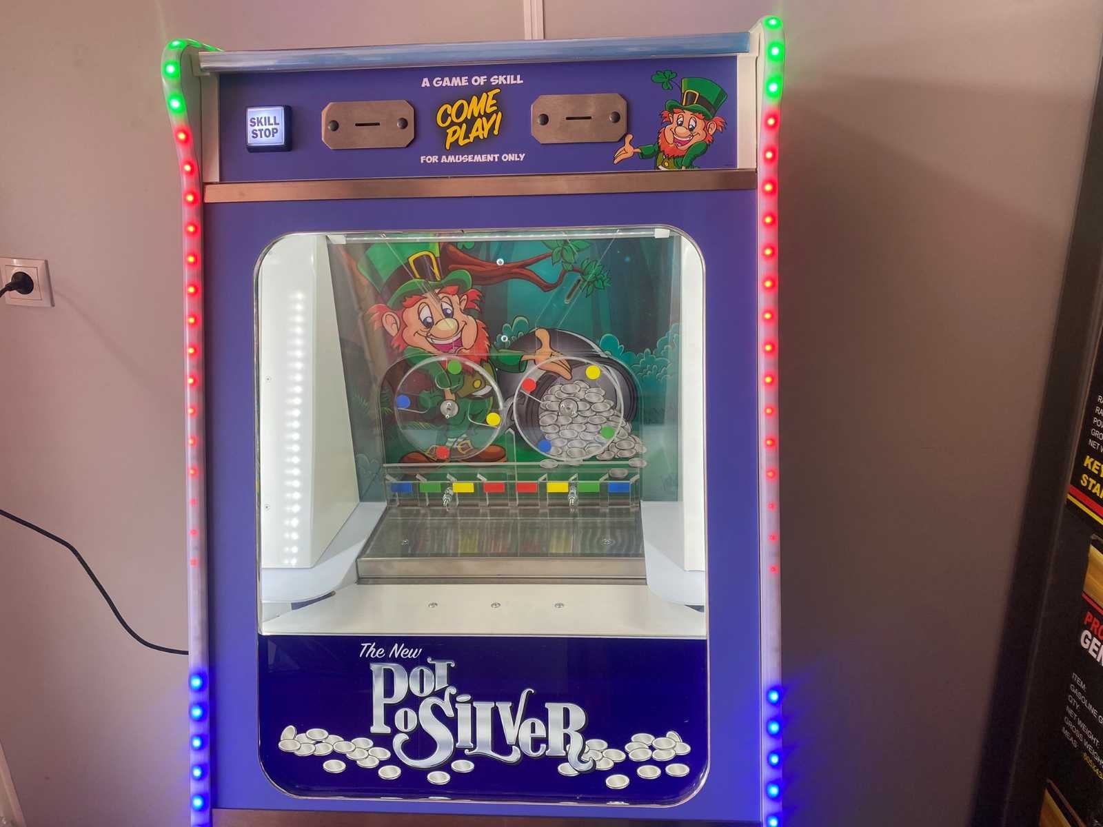 Coinpusher muntenschuiver, inworp met tokens (worden erbij geleverd) LED verlichting No Merk: Benchmark Games Type: Pot O Silver Bouwjaar: 2023