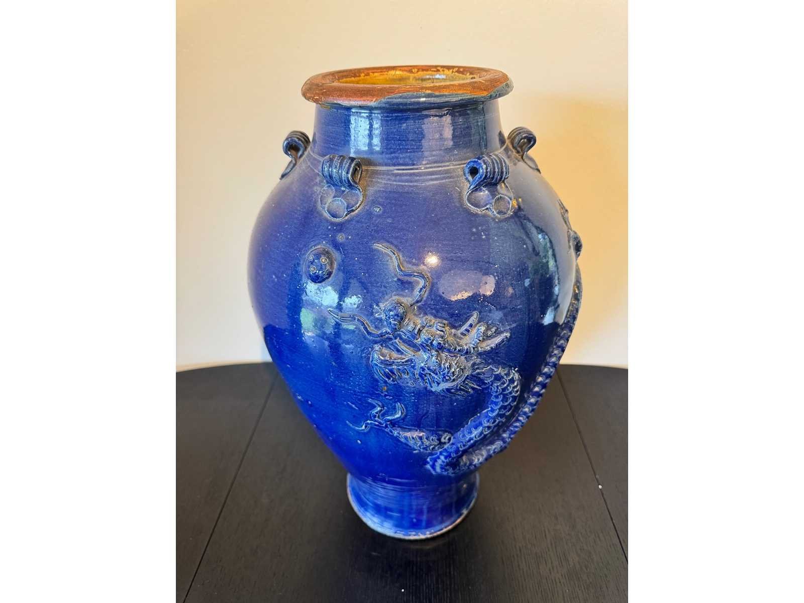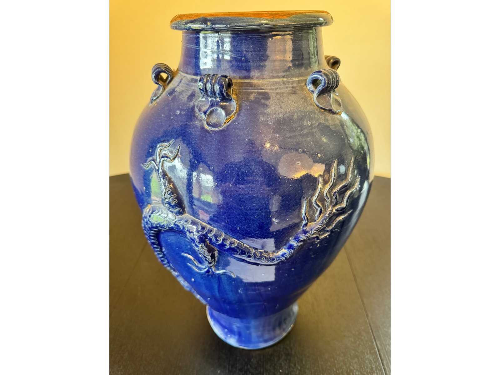 Met draak en parel. Voorzien van 6 draaghendels. Afmetingen 51cm hoog, 31cm diameter. No