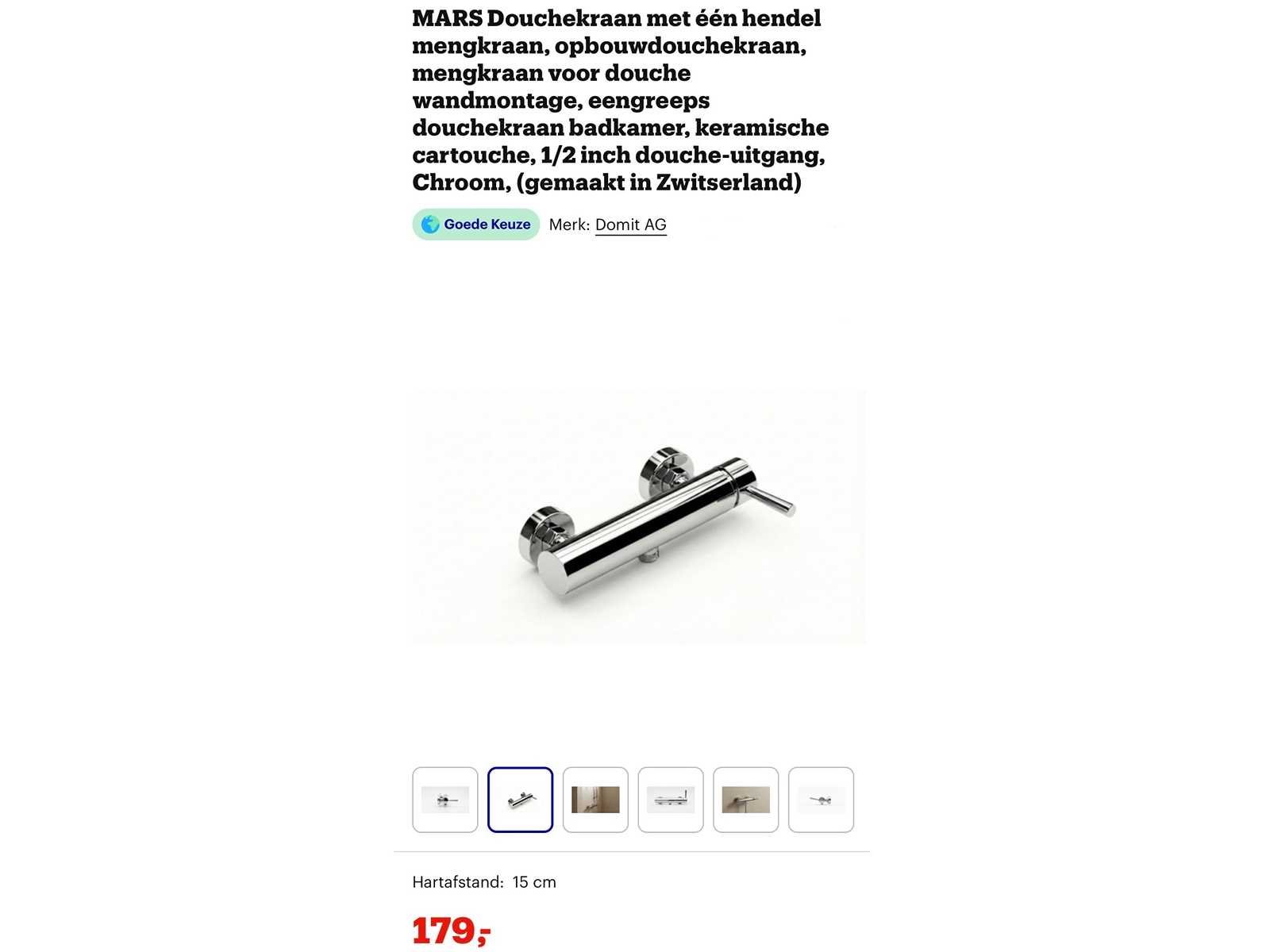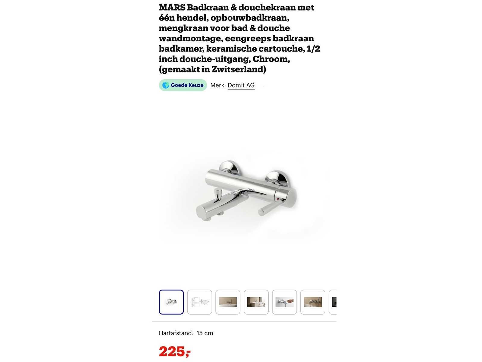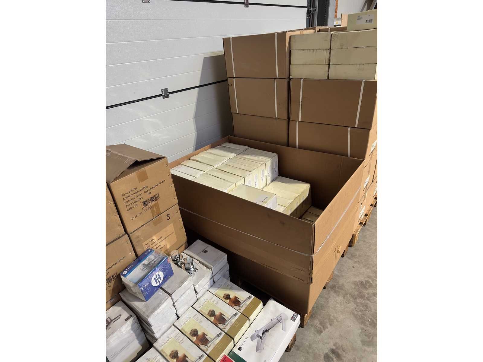 Partij luxe badkranen en douchekranen. Gemaakt in Zwitserland. 421 stuks in totaal. 3 pallets. No 1e: 242 stuks Domit Mars douchekraan met één hendel 2e: 75 stuks Domit Mars badkraan & douchekraan met één hendel 3e: 69 stuks Domit Verona douchekraan 4e: 18 stuks inbouw douchekraan 5e: 11 stuks Domit Thermis douchekraan 6e: 6 stuks diverse kranen (zie foto)