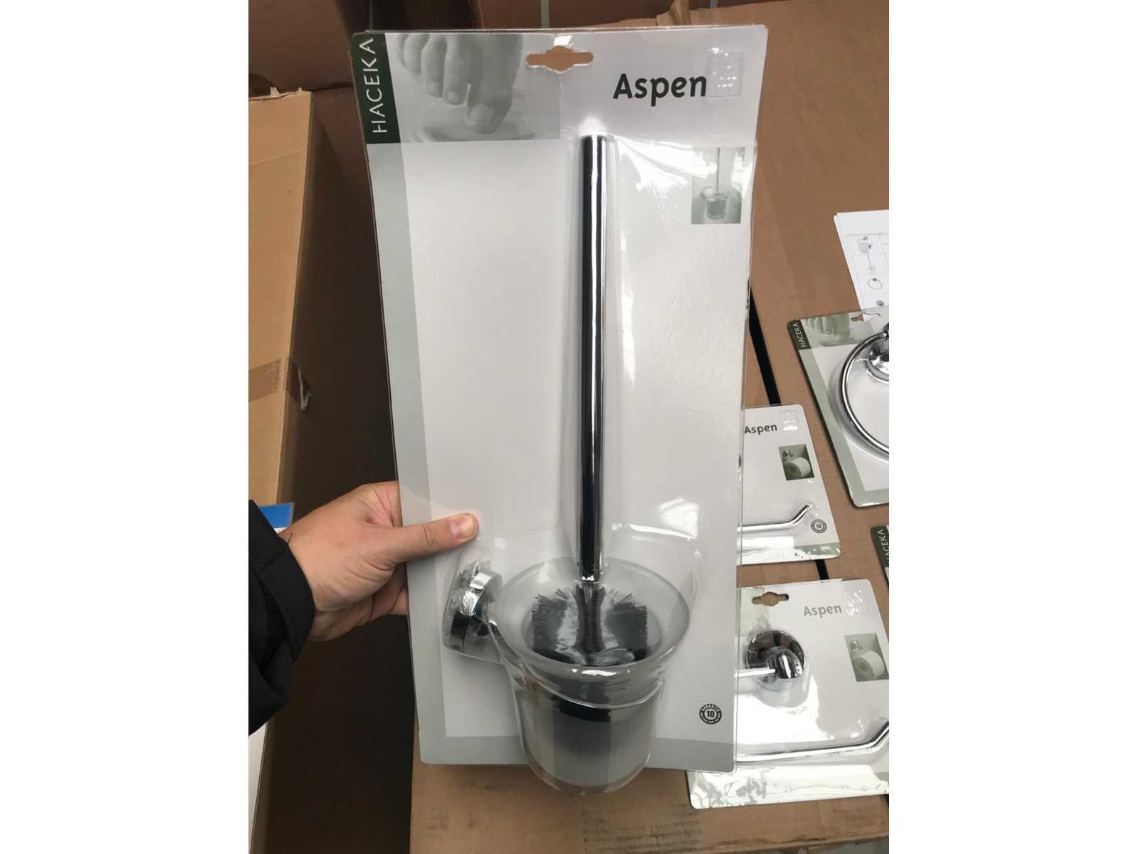 Toilet set accessoires. Nieuw in display. 4200 stuks Haceka Aspen toilet rol houder, EAN: 8711331411404. 780 stuks Haceka Aspen toiletborstel houder, EAN: 8711331411909. 760 stuks Haceka Aspen handdoek houder, EAN: 8711331419605 1390 stuks Haceka Aspen haakje, EAN: 8711331411206 20 pallets in totaal. 7130 stuks in totaal. Verkoopadviesprijs €166.000 No 1e: 4200 stuks Haceka Aspen toilet rol houder, EAN: 8711331411404 2e: 780 stuks Haceka Aspen toiletborstel houder, EAN: 8711331411909 3e: 760 stuks Haceka Aspen handdoek houder, EAN: 8711331419605 4e: 1390 stuks Haceka Aspen haakje, EAN: 8711331411206