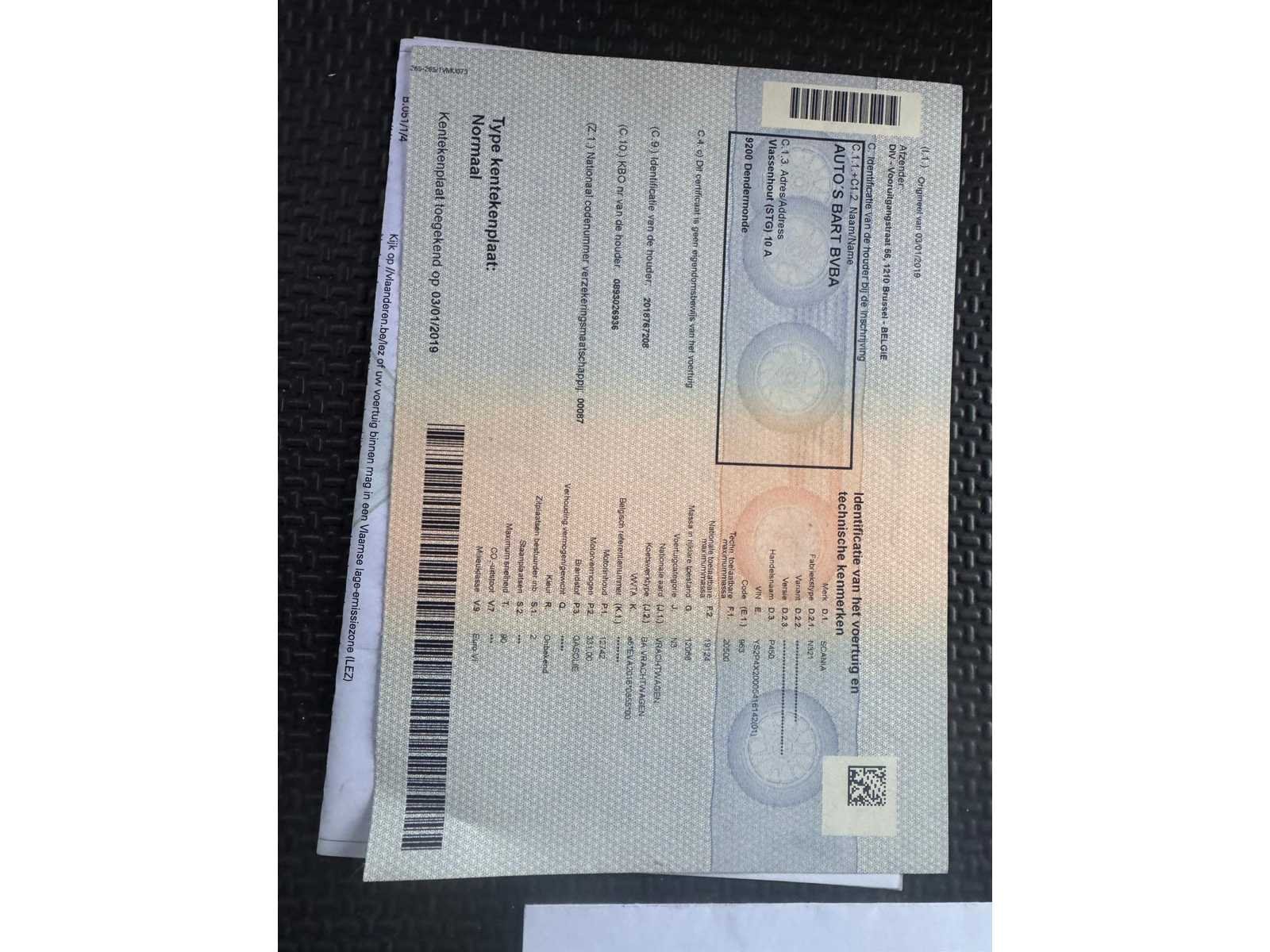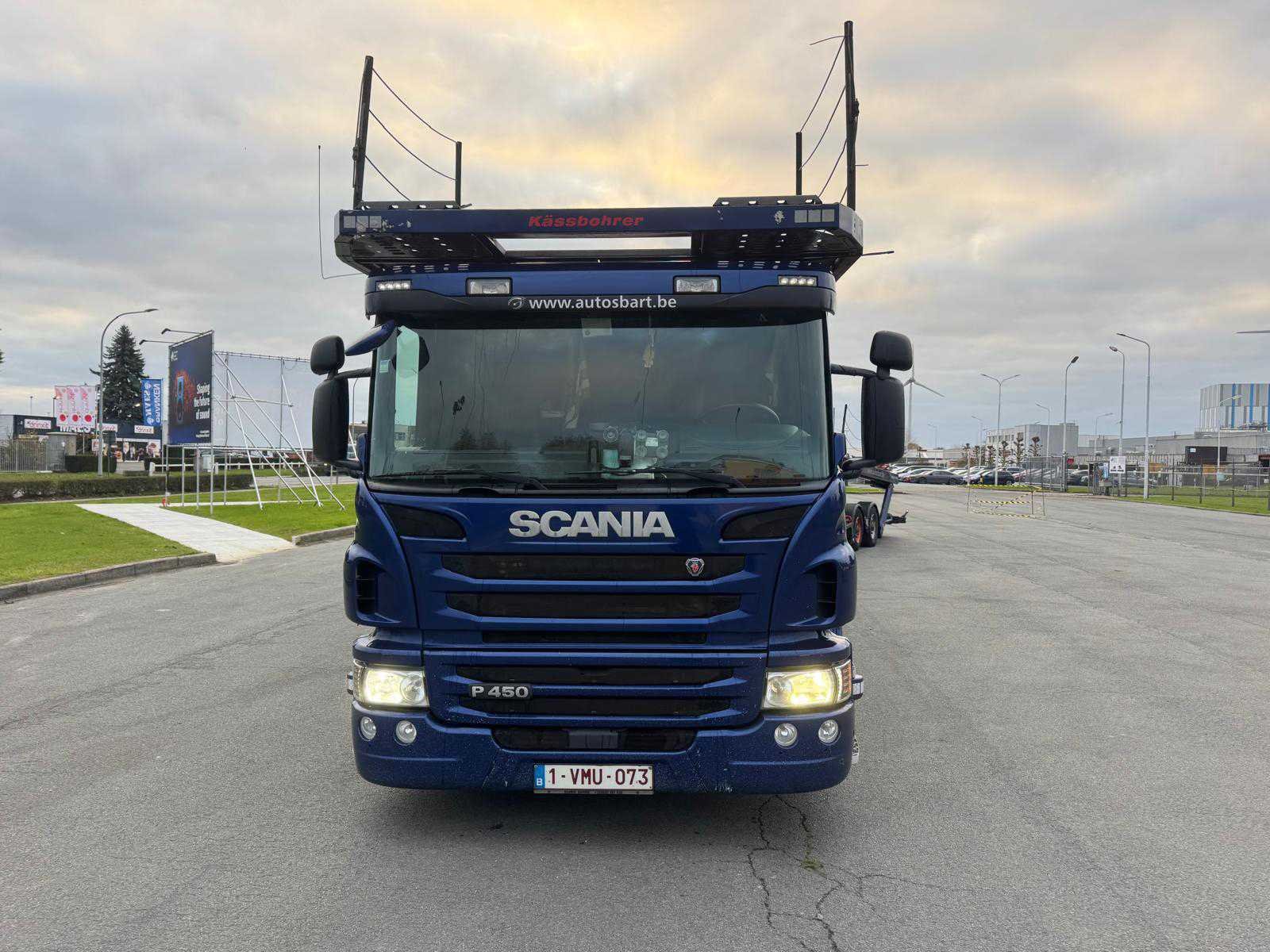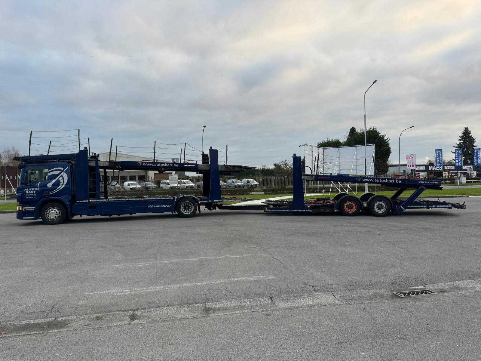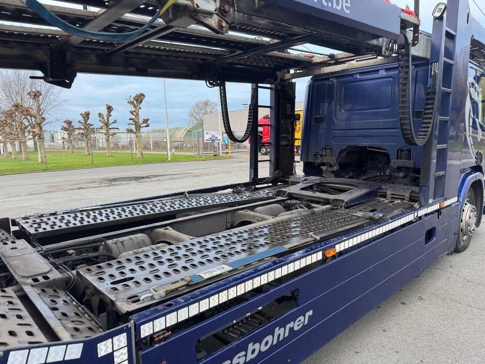 Voorzien van opbouw fabricatie Kassbohrer 2006, gereviseerd in 2016/ capaciteit 9/10 voertuigen/ stapelaars op de vrachtwagen/ inclusief aanhangwagen Kasbohrer/ chassisnummer: VAK654D0C01406252/ 1 ste maal in gebruik: 15/09/2006 Nee Merk: Scania Type: P450 Chassisnummer VIN: EYS2P4X20005416142 Cilinderinhoud: 12747cc Datum eerste toelating: 2/06/2016 Aantal assen: 2 Asconfiguratie: 4X2 Laadvermogen: 19000kg Aantal sleutels: 1 Emissieklasse: Euro6 Slaapcabine: true Navigatie: true Kentekenpapieren compleet?: true Aantal zitplaatsen: 2 Automaat: true Diesel: true