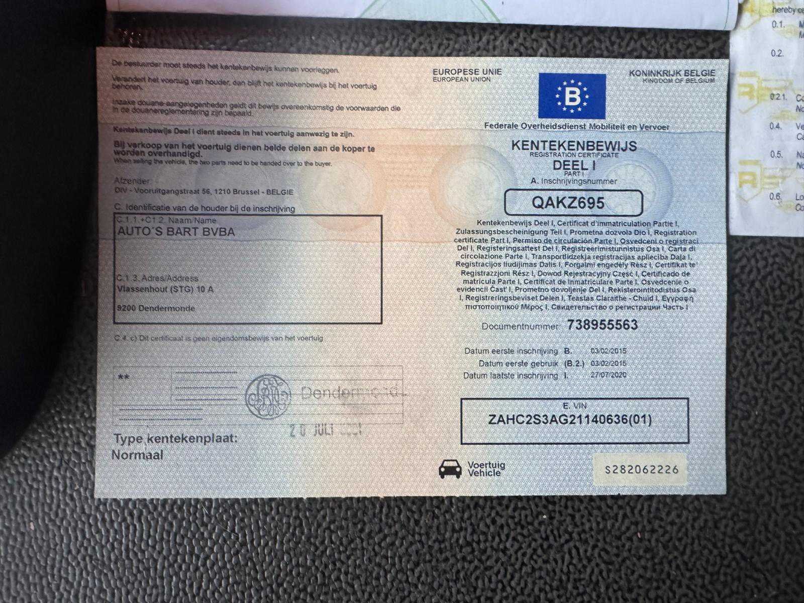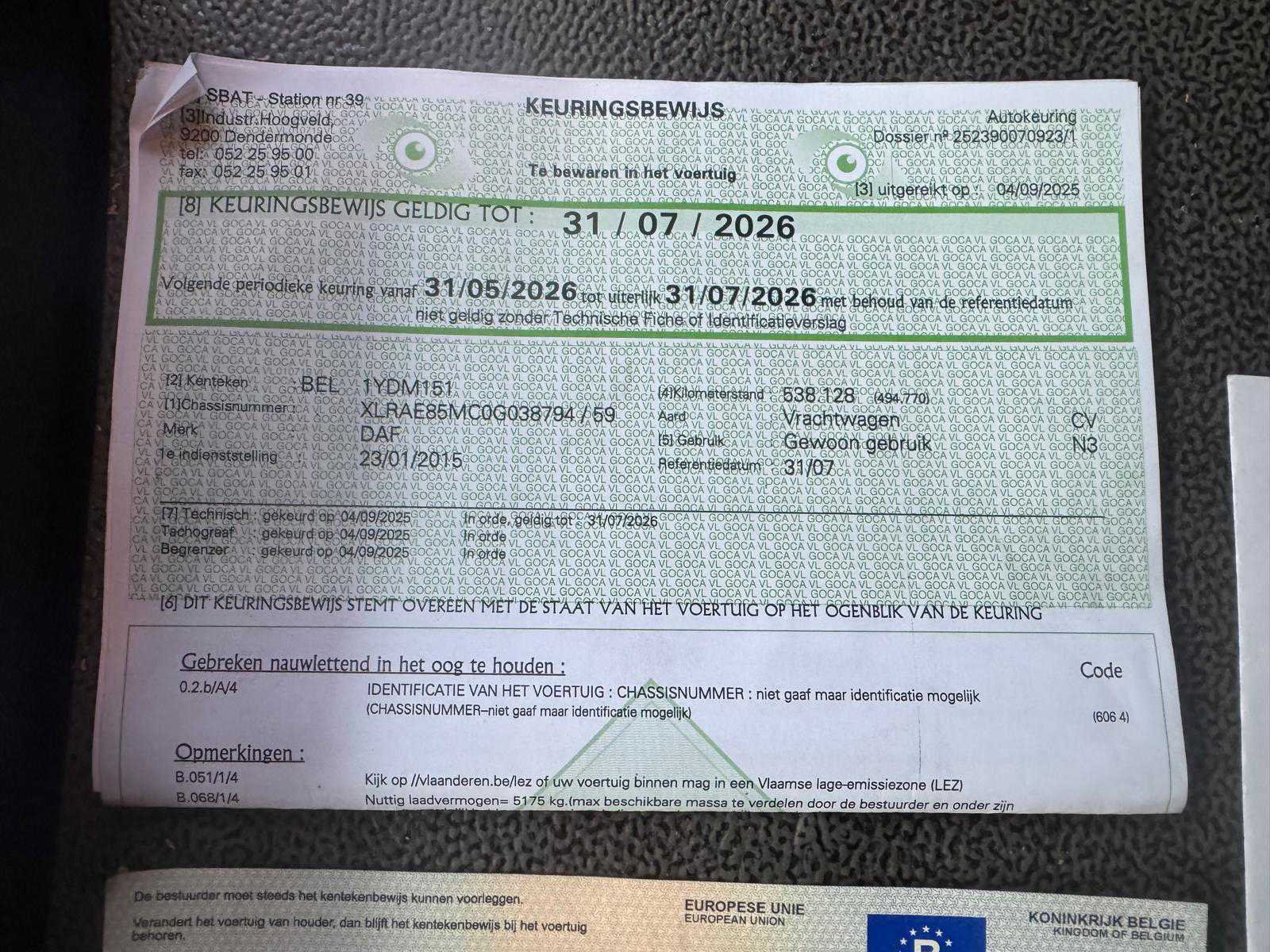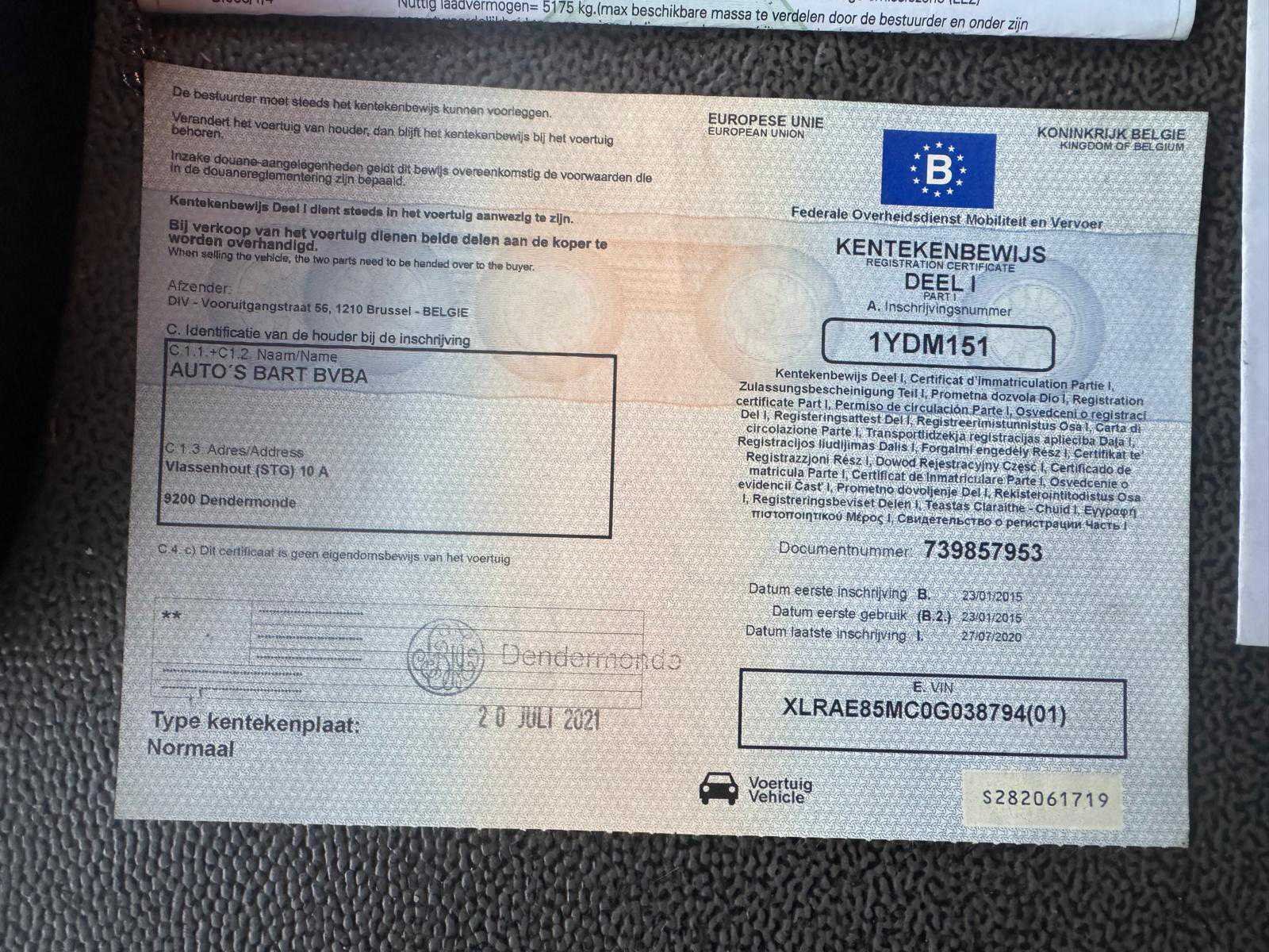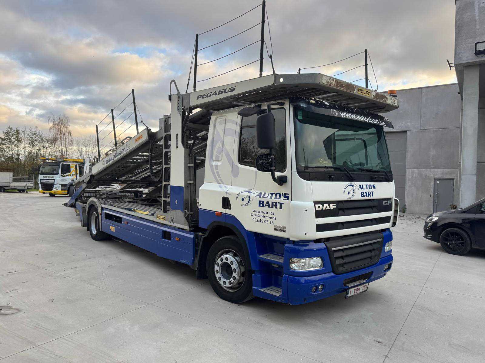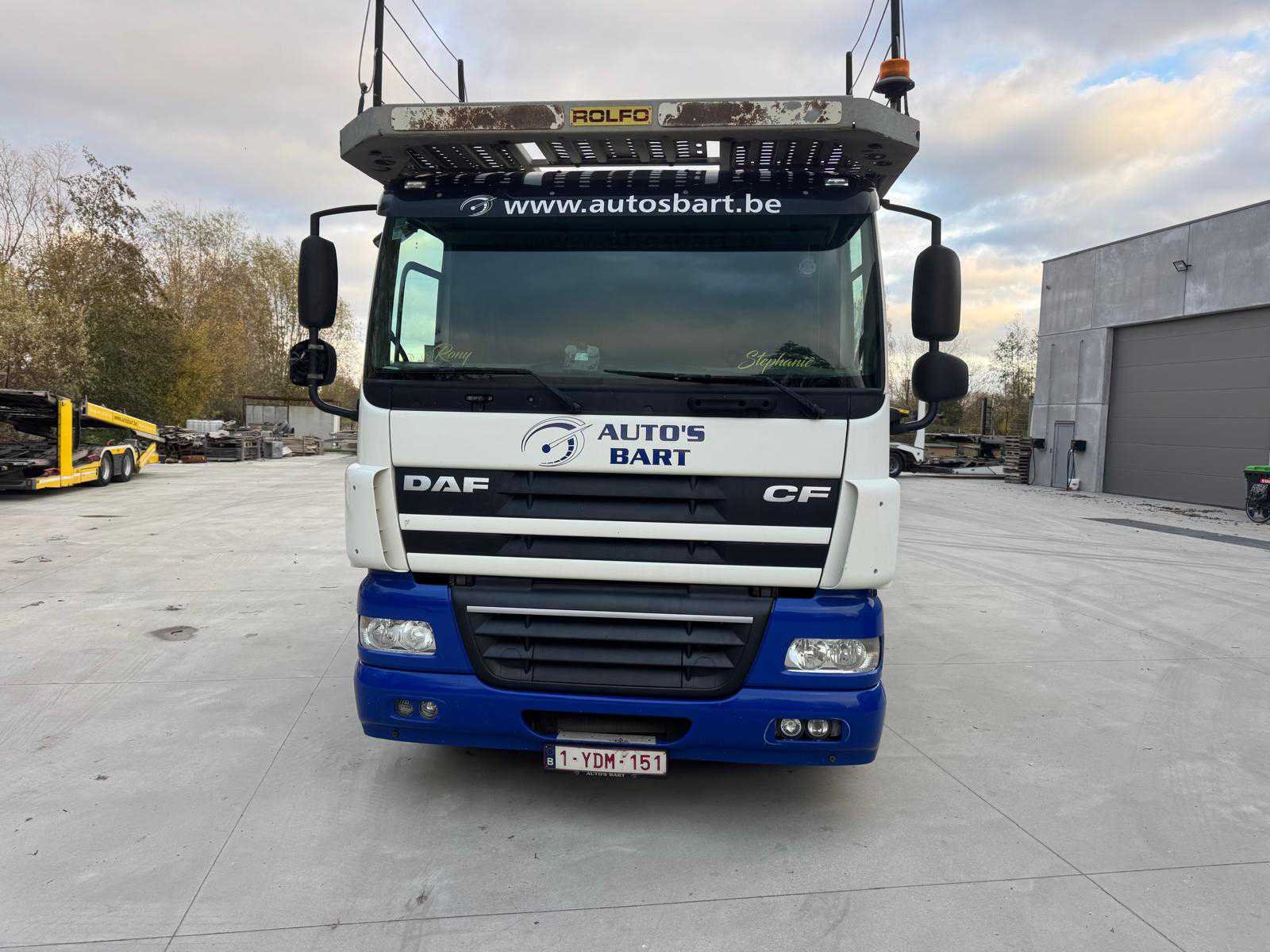 Inclusief: oplegger/autotransporter ROLFO type C2S3; chassisnummer: ZAHC2S3AG21140636; eerste maal in gebruik: 03/02/2015; capaciteit: 10 voertuigen; voorzien van: 3 stapelaar op de vrachtwagen en 2 stapelaars op de oplegger. Alle boorddocumenten aanwezig. Nee Merk: DAF Type: ROLFO TV19 Chassisnummer VIN: XLRAE85MCOG038794 Cilinderinhoud: 12902cc Kilometerstand bij opname: 577500km Datum eerste toelating: 23/01/2015 Type transmissie: Handgeschakeld Fuel Type: Diesel Laadvermogen: 19000kg Aantal sleutels: 1 Emissieklasse: EuroV Eigen gewicht: 13200kg Nationaliteit documenten: Belgisch Kentekenpapieren compleet?: true Aantal zitplaatsen: 2 Handgeschakelde versnellingsbak: true Diesel: true