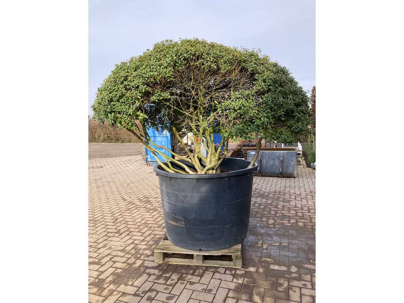 Meerstammige paprapluboom In containerpot Totale hoogte met pot 280cm Nee Latijnse benaming: Osmanthus burkwoodii Hoogte ca.: 180cm In pot: true Diameter ca.: 200cm