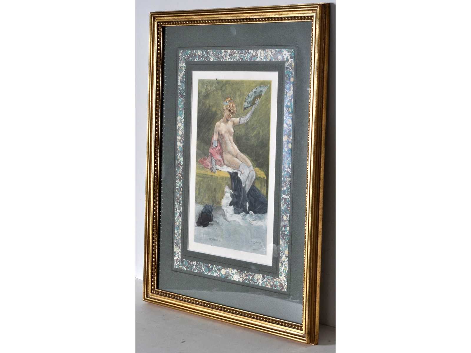Reproductie naar Félicien Rops, Canicule (1882). Voorstelling van een zittende figuur met waaier in zomerse setting, met titel in het beeldvlak - Gesigneerd in de druk - professioneel ingelijst Nee Kunstenaar: Félicien ROPS (naar) Titel van werk: Canicule Techniek: Offset Handtekening/oplage: false Hoogte: 27cm Breedte: 18cm Hoogte incl. lijst: 43cm Breedte incl. lijst: 34cm Frame: true