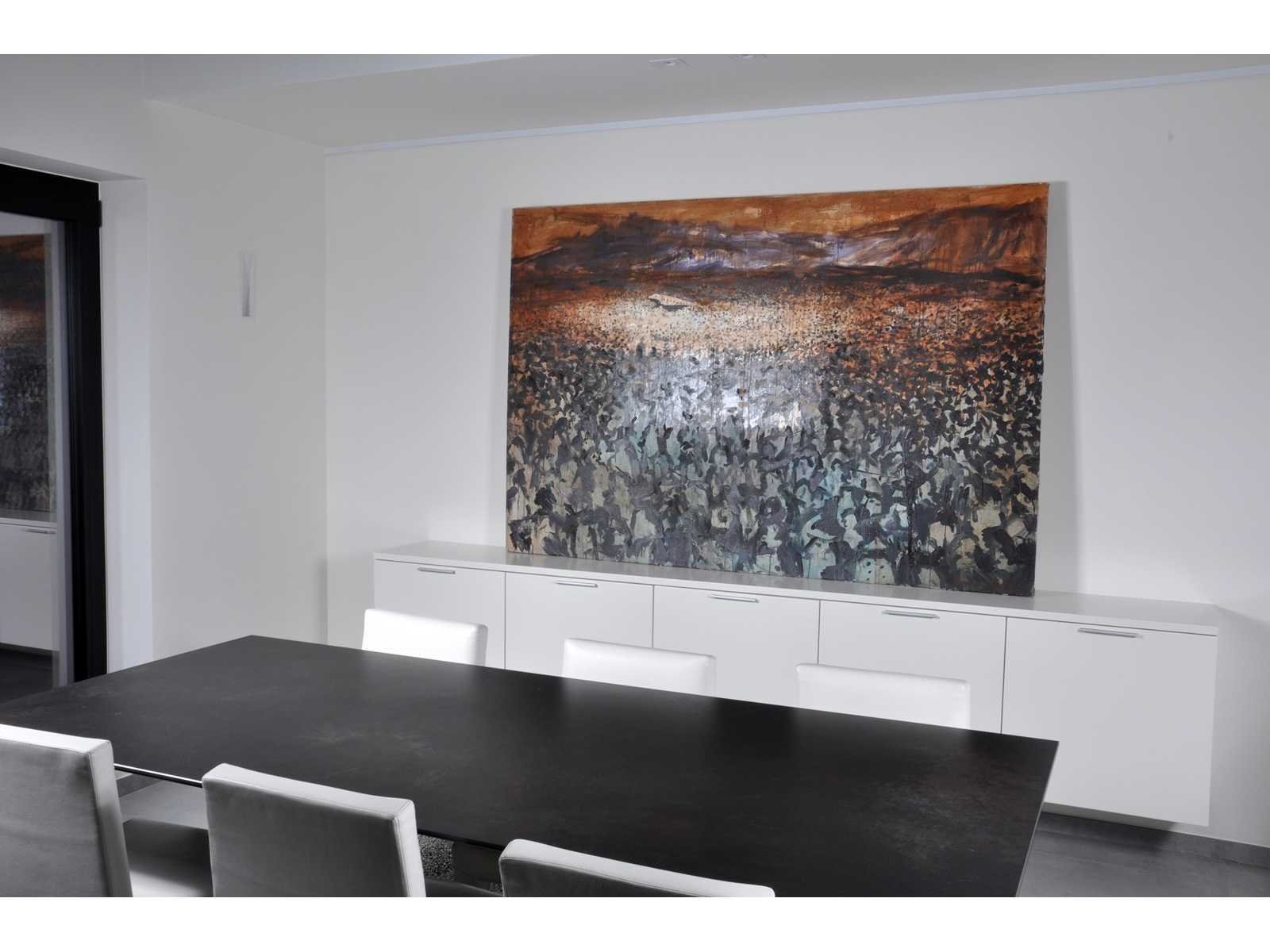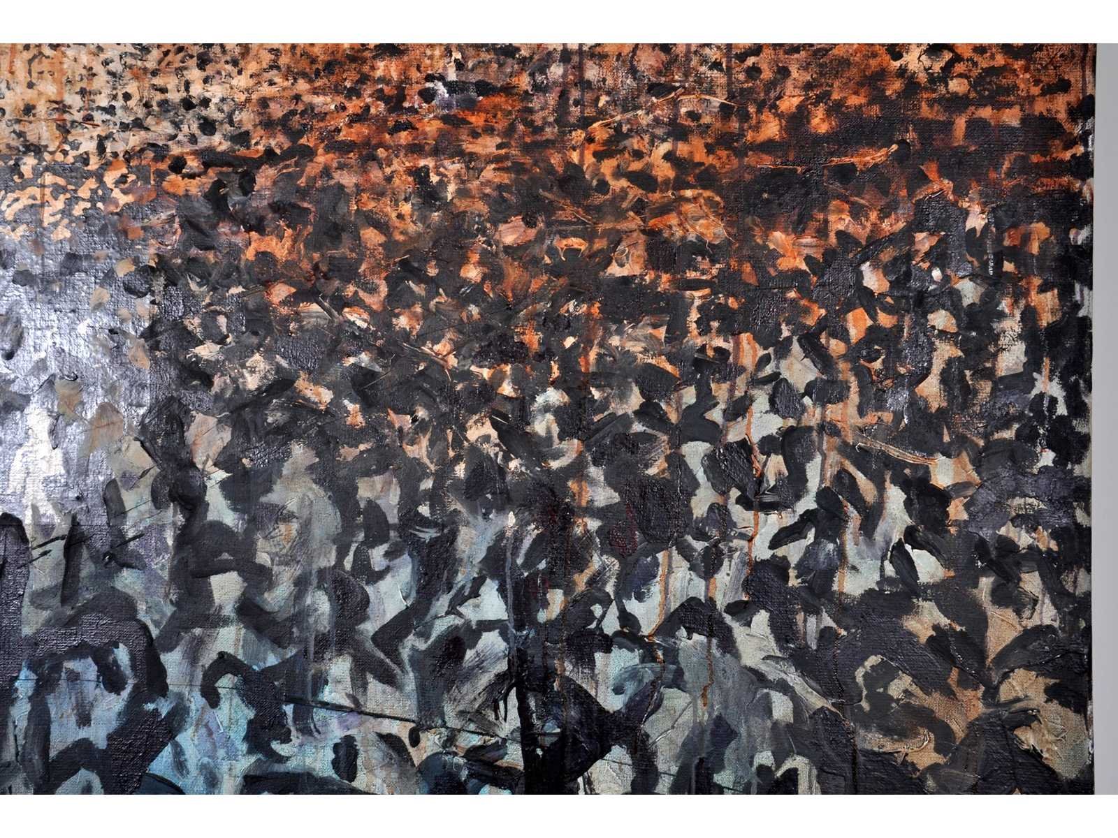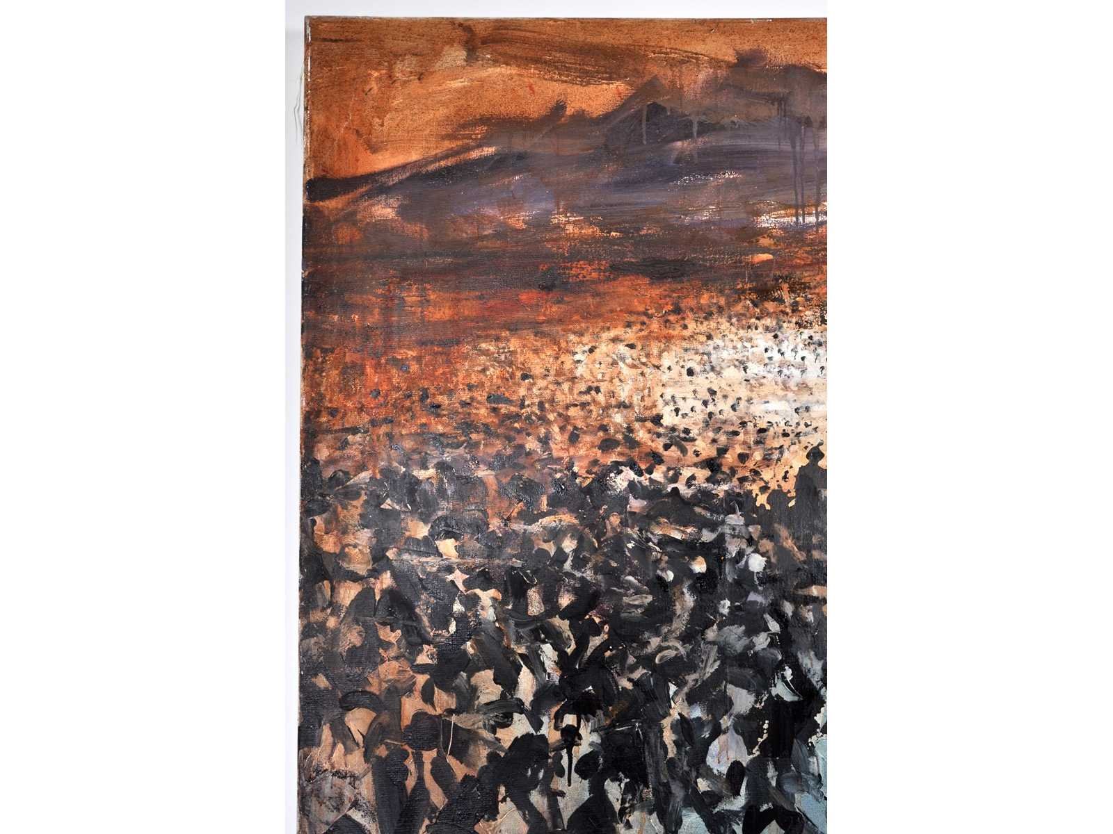 Expressieve voorstelling van een samendrommende menigte in bergachtig decor, met dramatische lichtwerking en collectieve spanning. Hein Vandervoort is een Nederlandse schilder die werkt met fotografische uitgangspunten en monochrome uitsneden, en exposeerde o.a. in het Stedelijk Museum Amsterdam, Museum De Lakenhal (Leiden) en het Koninklijk Paleis. Nee Kunstenaar: Hein Vandervoort (Leiden, 1962) Titel van werk: Bye bye sweetheart Datering: 1987 Techniek: olie op doek Handtekening/oplage: true Gesigneerd: Gesigneerd Hoogte: 136cm Breedte: 202cm