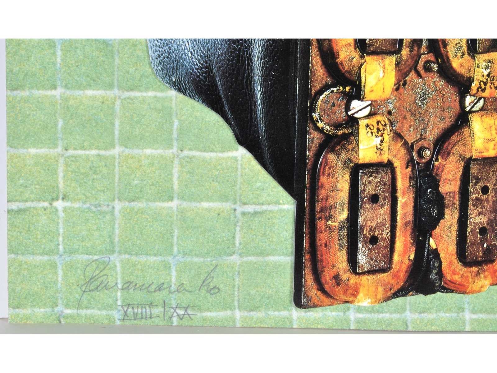 Kleurendruk met diepdruk uit 1998 - getekend en Romeins genummerd op slechts 20 exemplaren - galerieprijs: 1200 euro No Kunstenaar: Panamarenko (Antwerpen 1940-2019) Titel van werk: Magnetische schoenen Periode: 1998 Techniek: Kleurendruk met diepdruk Handtekening/oplage: true Oplage: XX Gesigneerd: getekend Hoogte: 58cm Breedte: 46cm