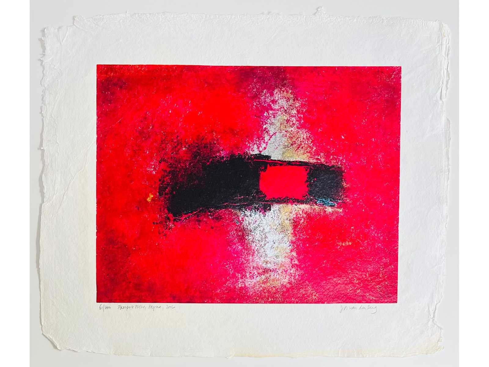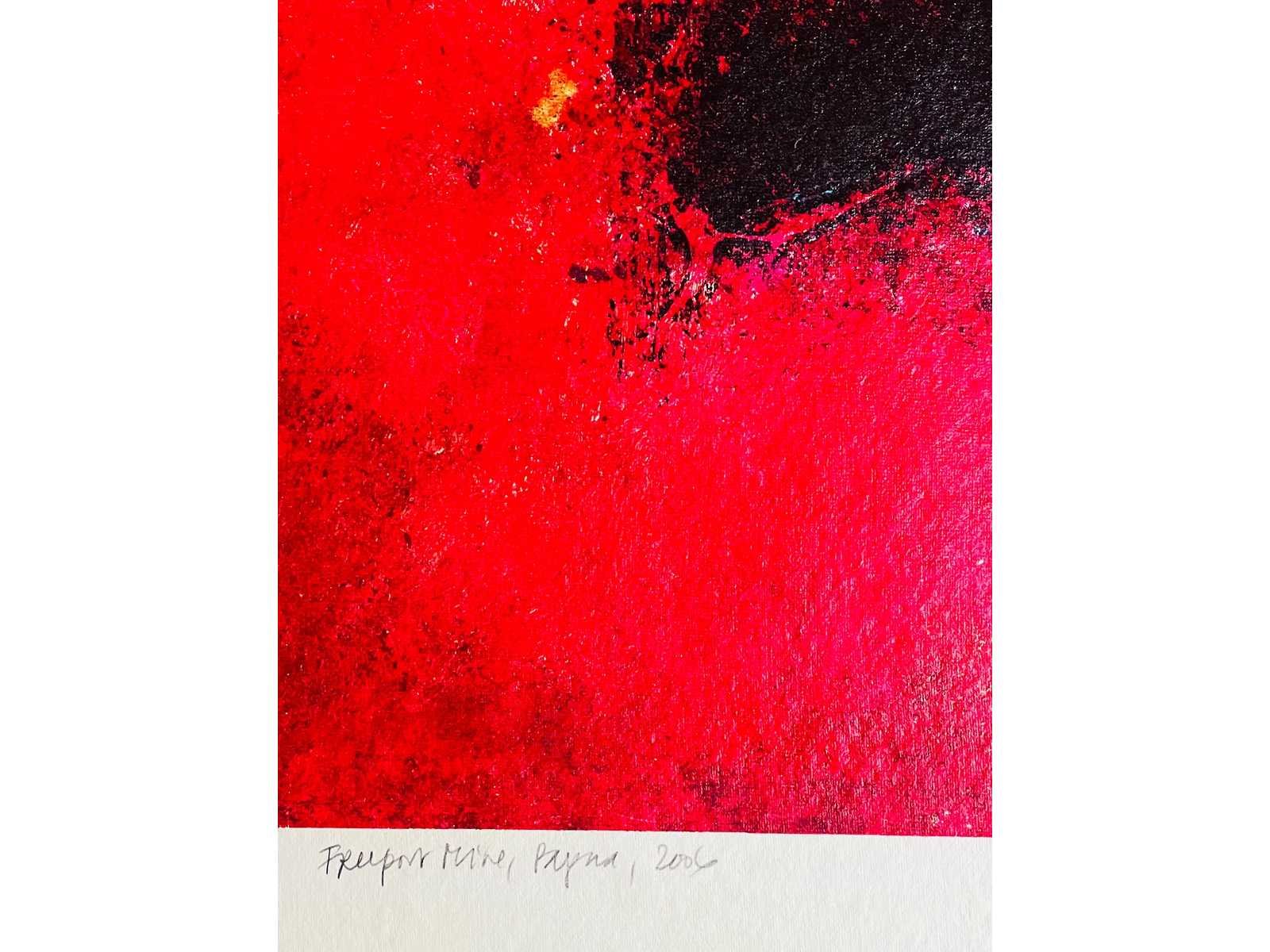 Mooie kleurenzeefdruk in dieprode kleur op handgeschept papier - het oplagenummer kan afwijken van het nummer op de foto Nee Kunstenaar: Jos van den Berg Titel van werk: Freeport Mine Papua Periode: 2006 Techniek: kleurenzeefdruk Handtekening/oplage: true Oplage: 100 Gesigneerd: getekend Hoogte: 50cm Breedte: 60cm