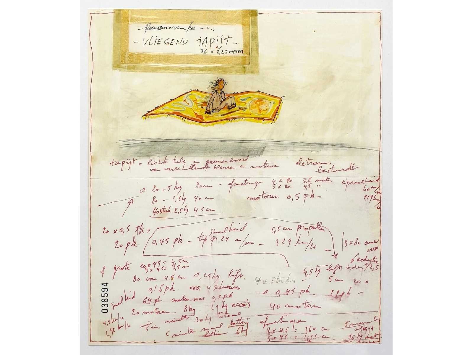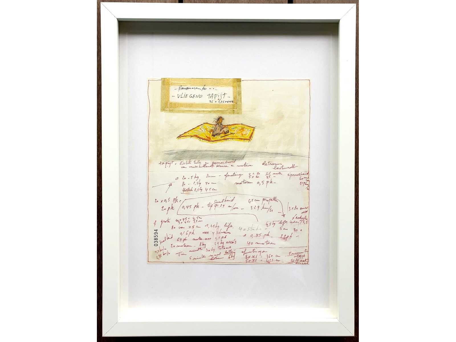 Offset print op hoogwaardig papier (GardaPat 13 Kiara papier van 150 g), gesigneerd in de druk, machinaal genummerd (055325). Uitgever: GVA in samenwerking met Panamarenko Collectief - ingelijst Nee Kunstenaar: Panamarenko (Antwerpen 1940-2019) Titel van werk: Vliegend tapijt Techniek: Offset Handtekening/oplage: false Hoogte: 24cm Breedte: 21cm Frame: true