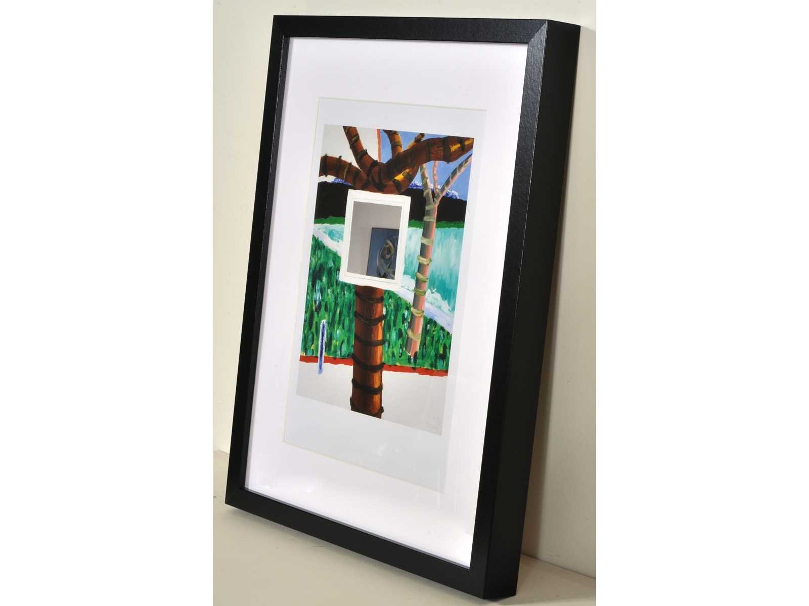 Uitgebracht op 500 exemplaren ter gelegenheid van de tentoonstelling "De Wereld van Roger Raveel" in de lokettenzaal van het Vlaams Parlement te Brussel – ingelijst met passe-partout (30x40 cm) Nee Kunstenaar: Roger Raveel Titel van werk: Boom met spiegel in mijn tuin Techniek: offset Oplage: 500 Hoogte: 40cm Breedte: 30cm Frame: true