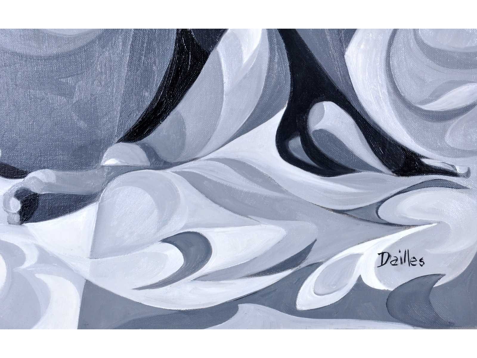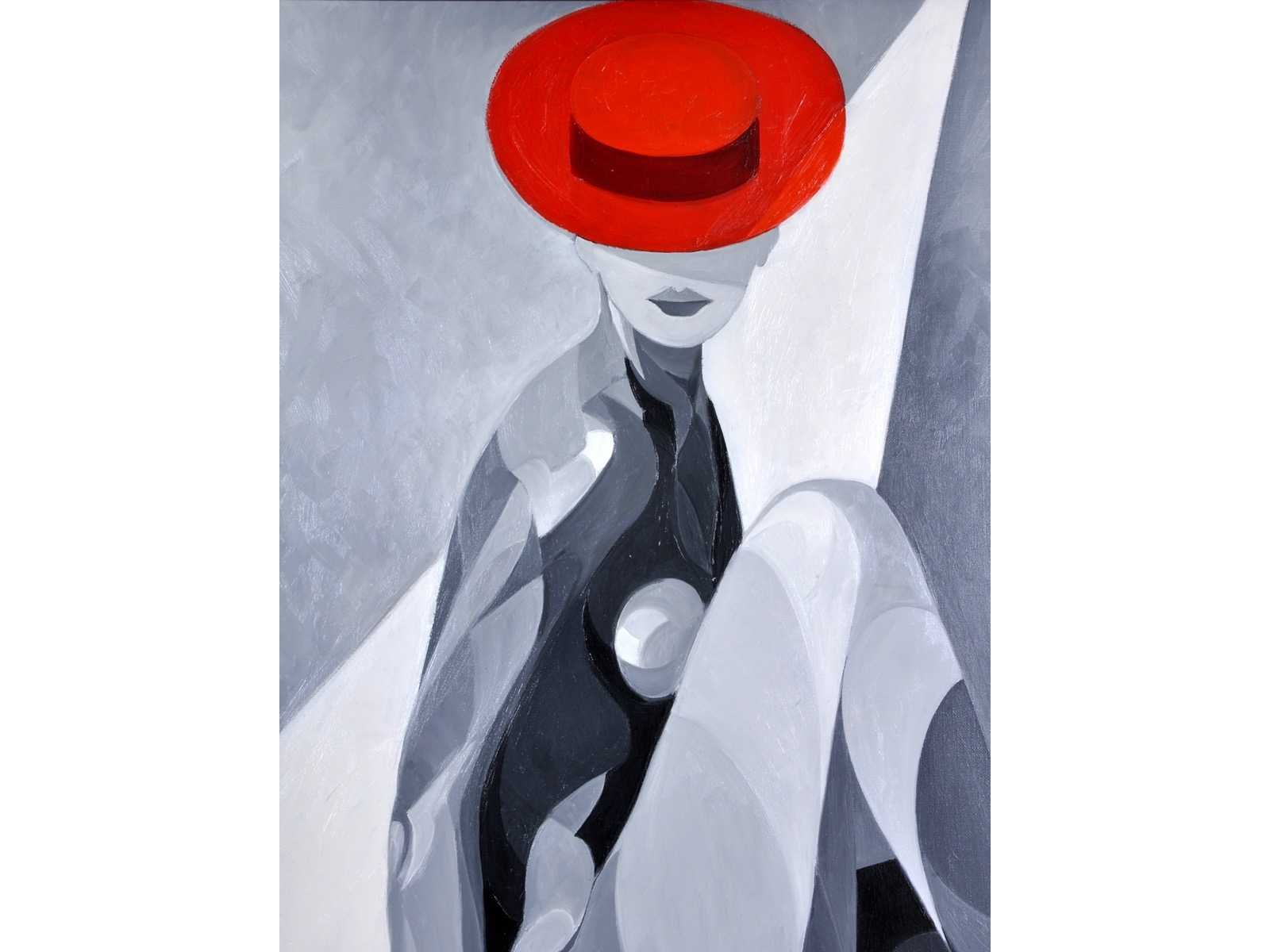 Gestileerde compositie in kubistische stijl, met een zittende figuur opgebouwd uit geometrische vormen in blauw, wit en zwart. De figuur wordt dramatisch belicht door twee lichtbundels en is uitgevoerd met sterke contrasten en vloeiende lijnen - Professioneel ingelijst - Galerieprijs: 2.500 € Nee Kunstenaar: Pierre Dailles Titel van werk: Vrouw met Rode Hoed Techniek: Gemengde techniek op doek Handtekening/oplage: true Gesigneerd: Gesigneerd Hoogte: 92cm Breedte: 73cm Hoogte incl. lijst: 111cm Breedte incl. lijst: 91,5cm Frame: true