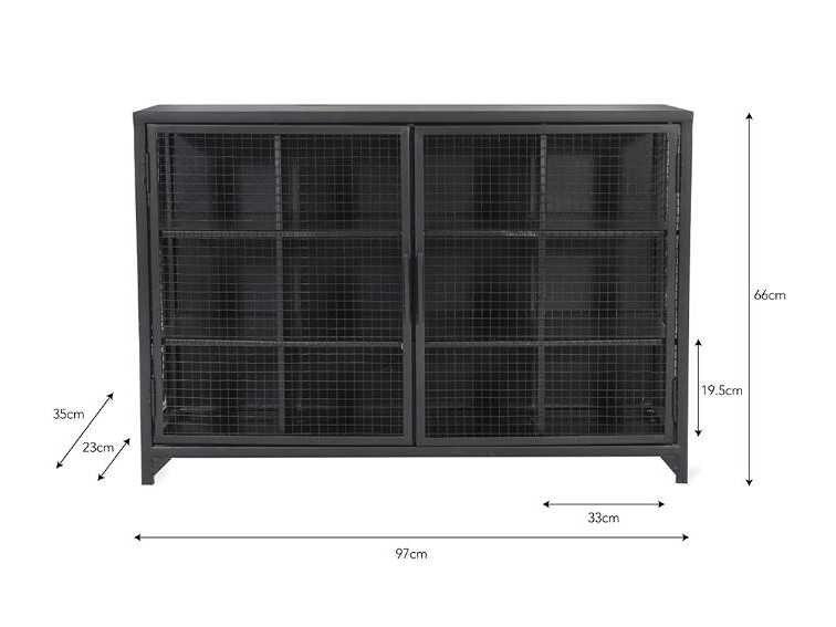 12 vakken. Afmetingen van elk vak: H19.5 x B33 x D23cm Volledig gemonteerd. Nee Merk: Garden trading Kleur: Zwart Lengte: 35cm Breedte: 97cm Hoogte: 66cm Materiaal: Metaal