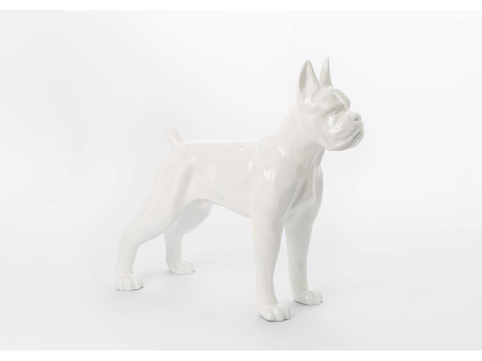 Nee Model: Hond Boxer Kleur: Wit Lengte: 110cm Breedte: 35cm Hoogte: 90cm Materiaal: Polyresine