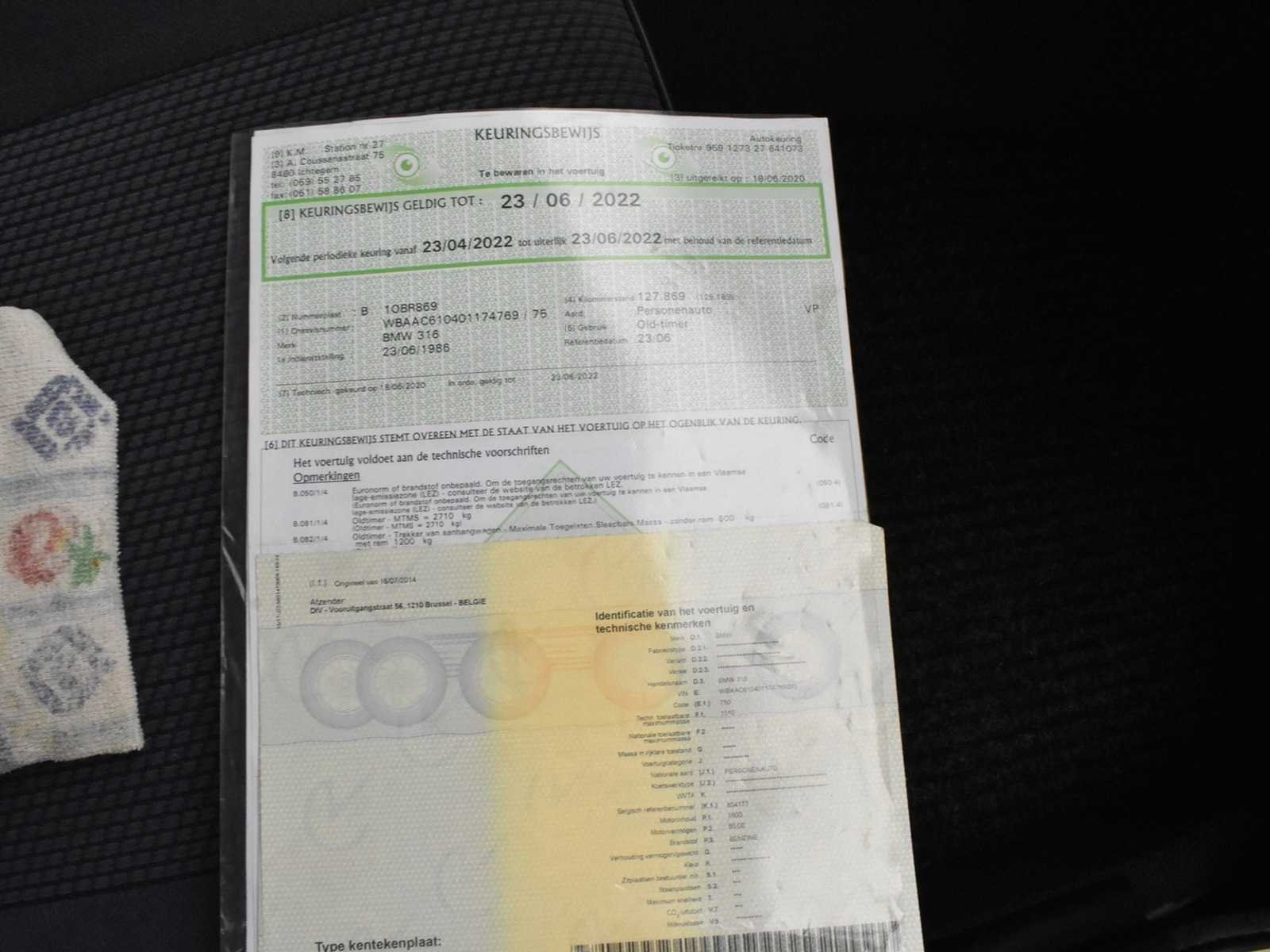 BELGISCHE DOCUMENTEN TECHNISCHE NAZIEN VOOR INGEBRUIKNAME Nee Merk: BMW Type: E30 Bouwjaar: 1986 Chassisnummer: WBAAC610401174769 Brandstof: BENZINE Datum eerste inschrijving: 23/06/1986 Boorddocumenten aanwezig?: true Nationaliteit documenten: BELGISCHE Vermogen (kW): 65kW Startinformatie: JA Kleur: WIT Cilinderinhoud: 1800