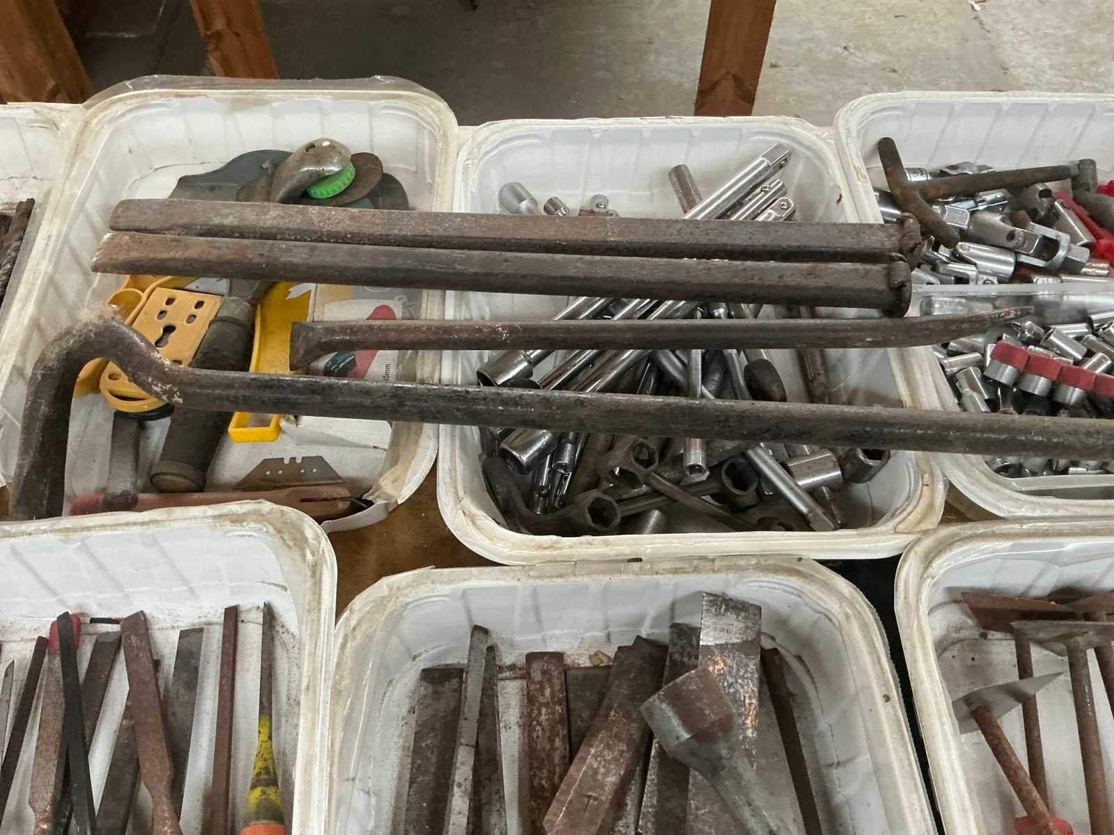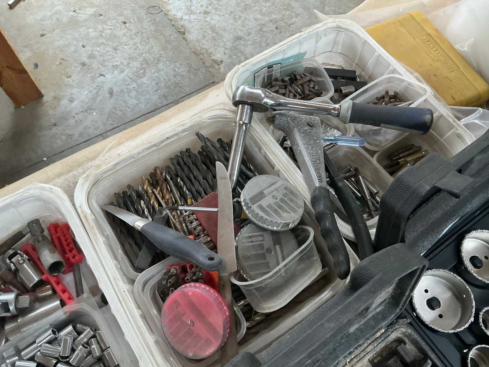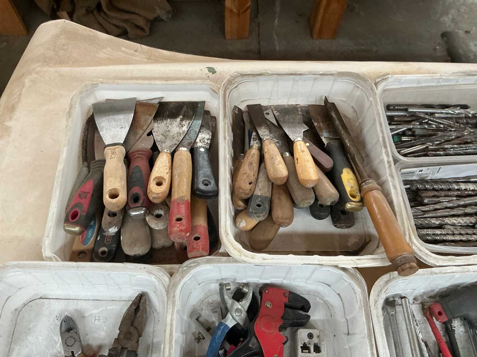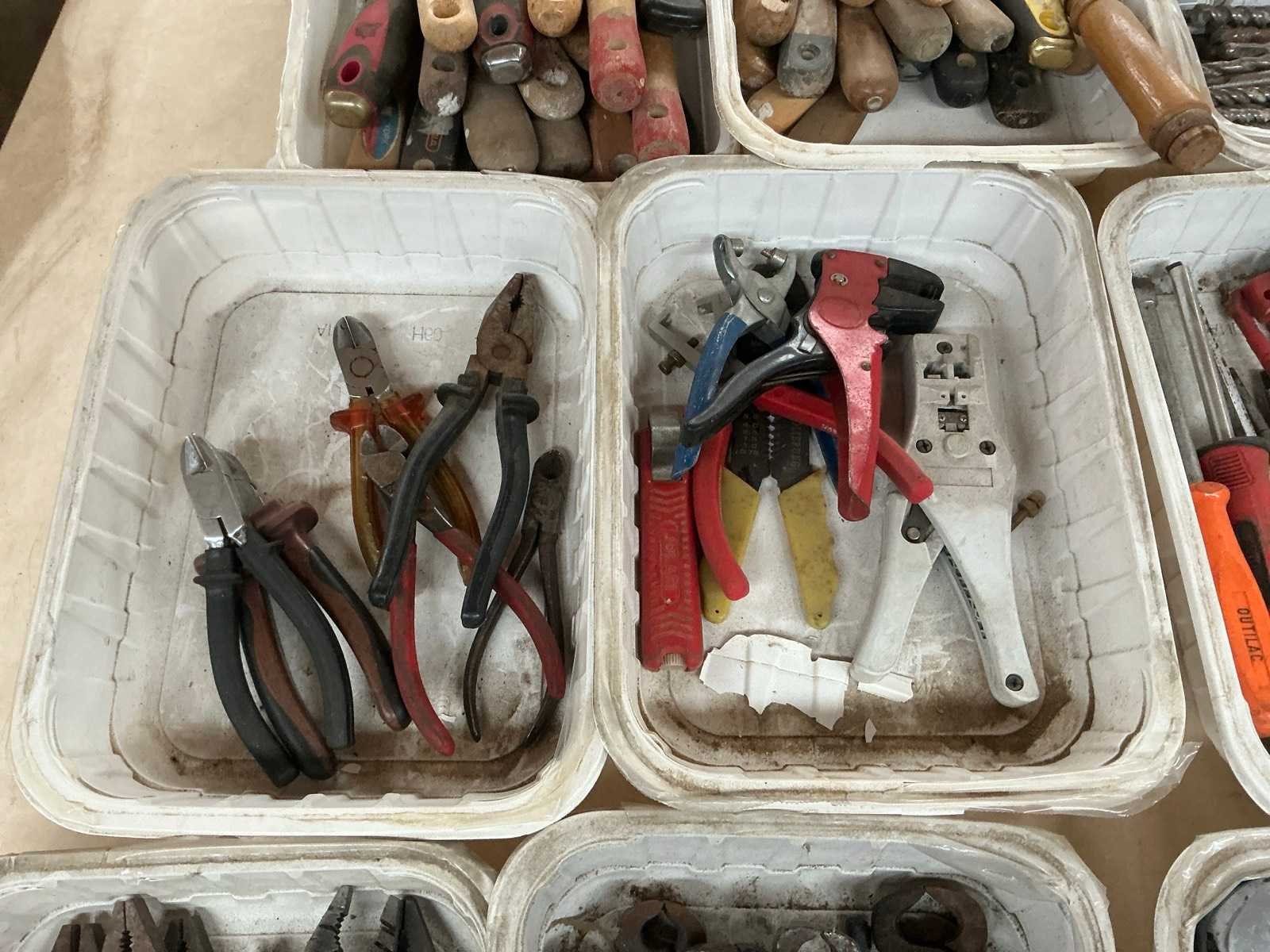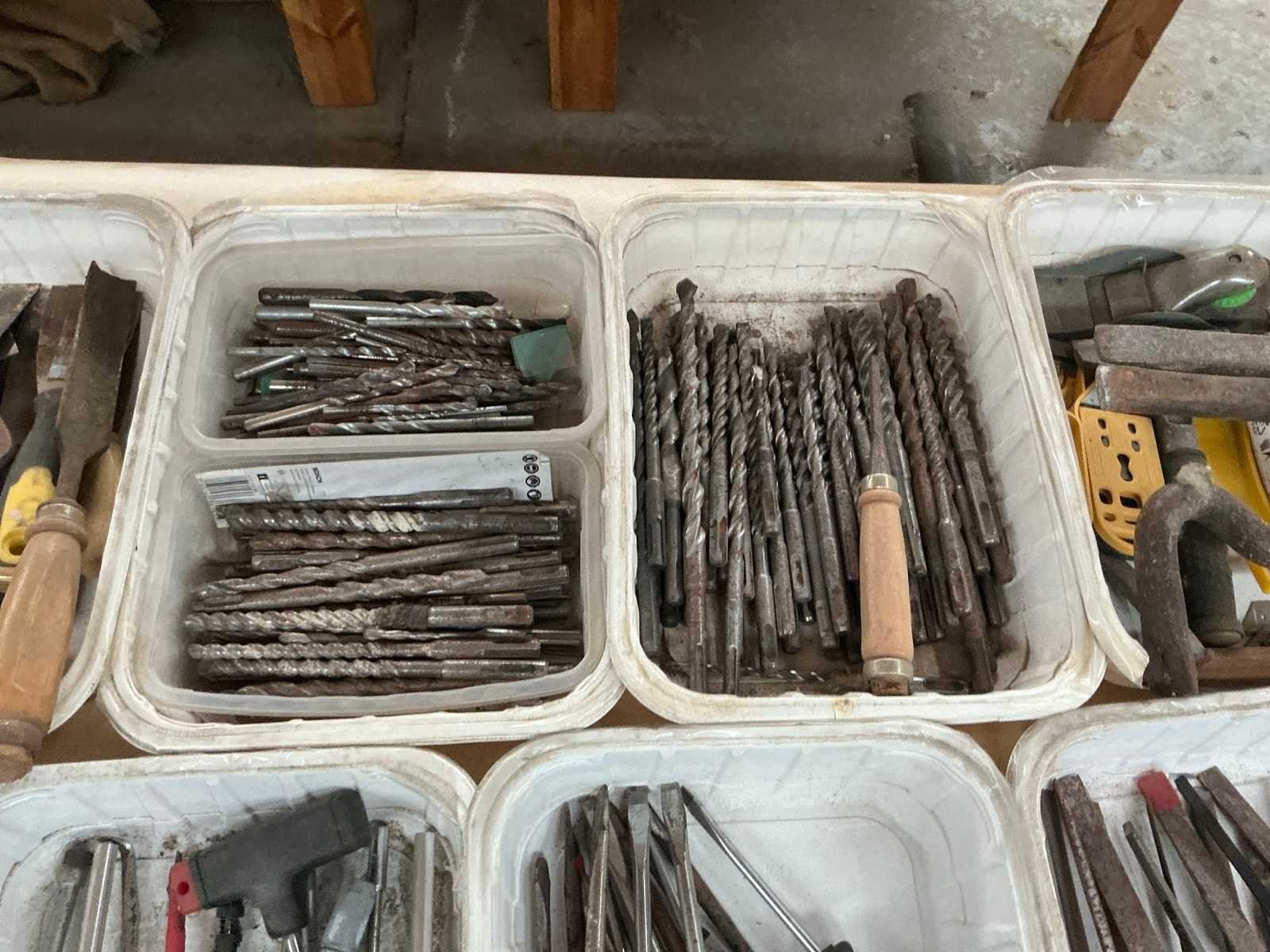 Waaronder tangen, steekmessen, betonboren, houtbeitels, metaalzaagbladen, 12x krukgarnituur Hormann, werkset in pvc koffer, diverse metaalboren, dopsleutels, krimptangen, diverse schroevendraaiers, breekmessen, gatenzaagset, diamantzaagset, hamers,… Nee