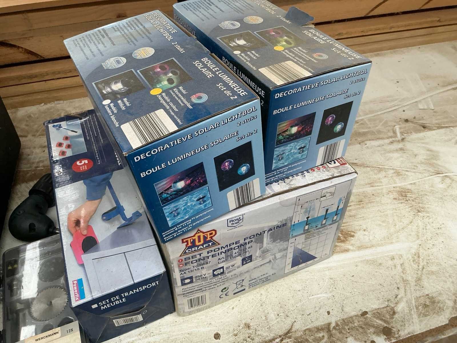Compleet met enige diversen waaronder fonteinpomp, werkset Werckmann, meubeltransportset powerfix en 2x lichtbolset Nee Kunststof: true