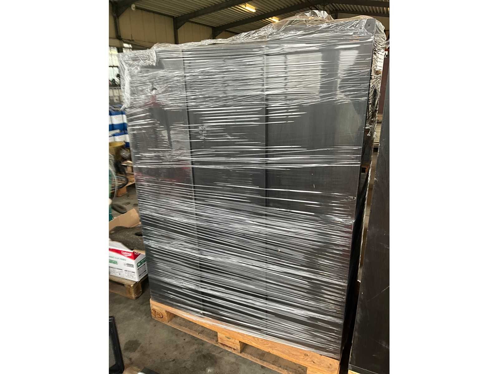 Waarvan 5 voorzien van 8 vakken, totaalafmeting 76 x 39 x 147 cm hoog, compleet met 2 kleinere dito exemplaren, elk van 77 cm hoog en voorzien van 4 opbergvakken. Nee