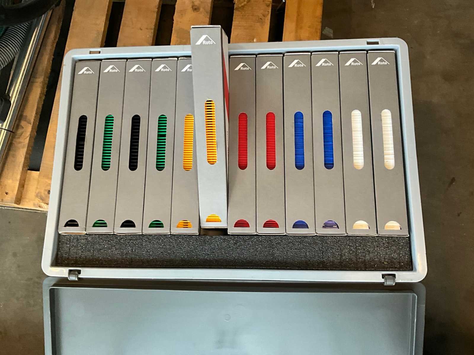 Bestaande uit 12 doosjes elk inhoudende 70 ex. diverse blocks voor ramen Nee Merk: Roto Type: Glas Tec
