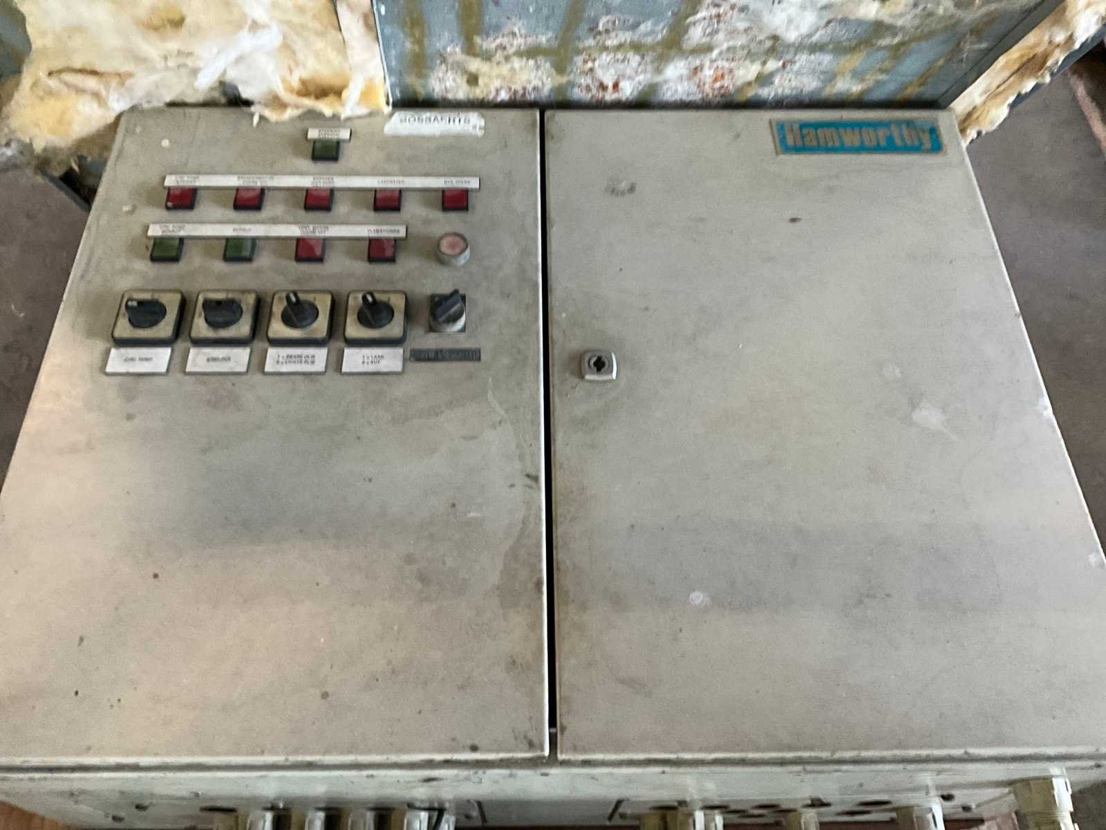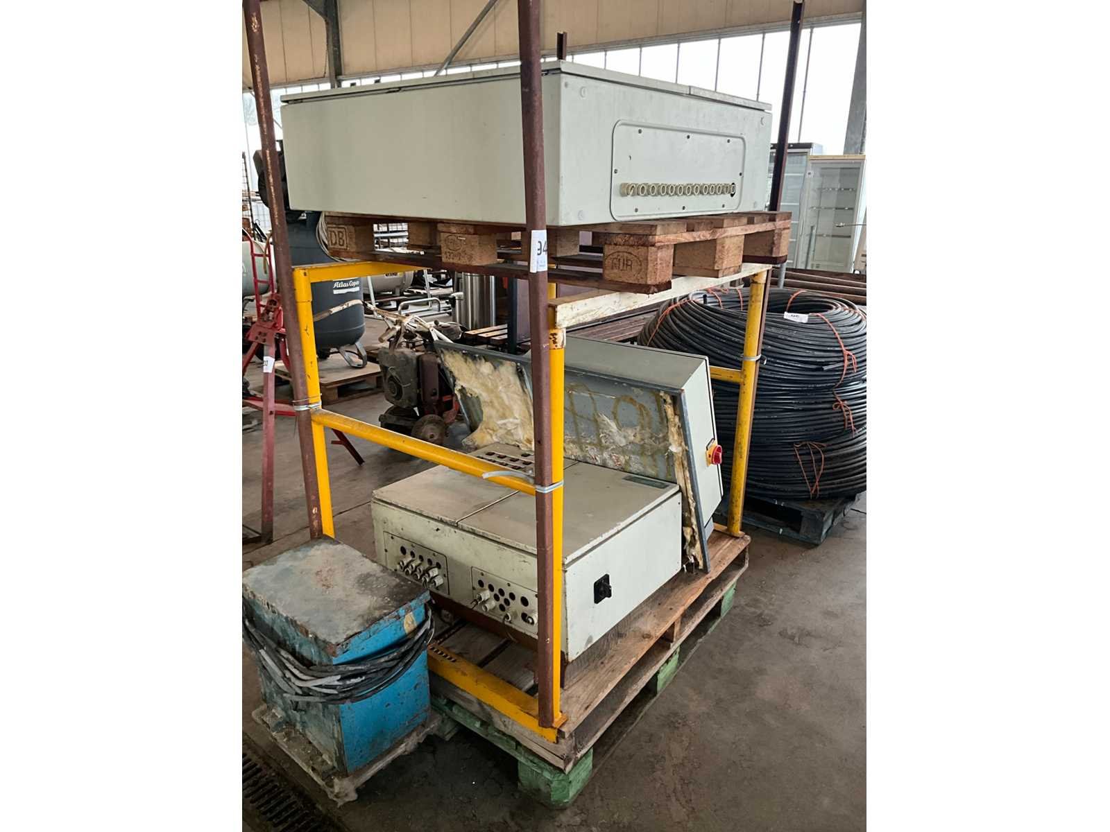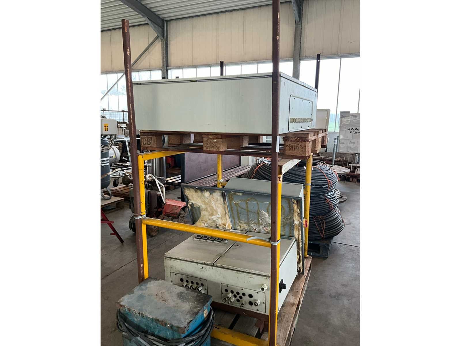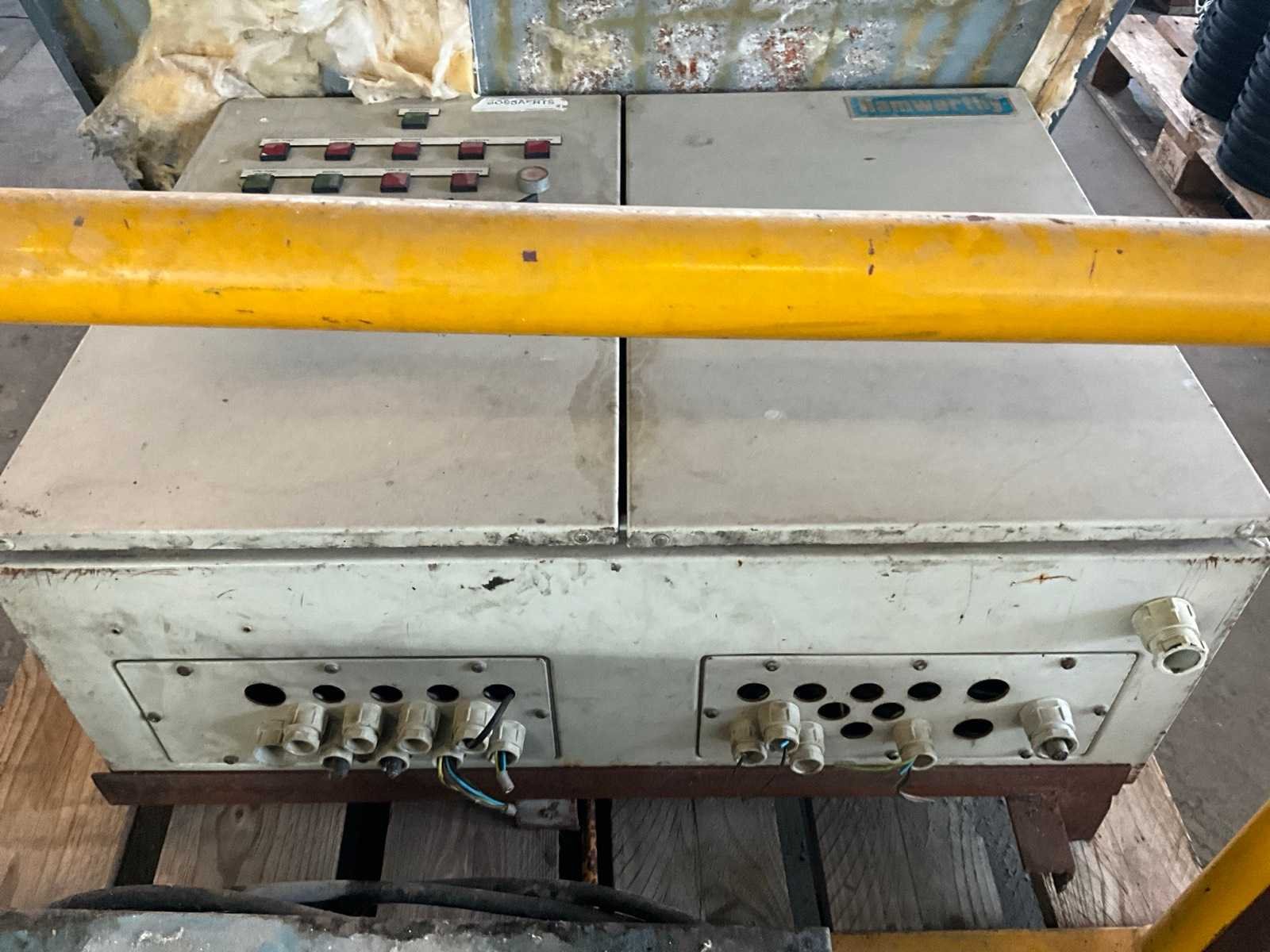 Bedieningskasten waaronder CDH, Halworthy (gedemonteerd), compleet met oude verrijdbare transformator van 380 naar 220 V, zich bevindend in metalen opberghok, deze is inbegrepen ! Nee