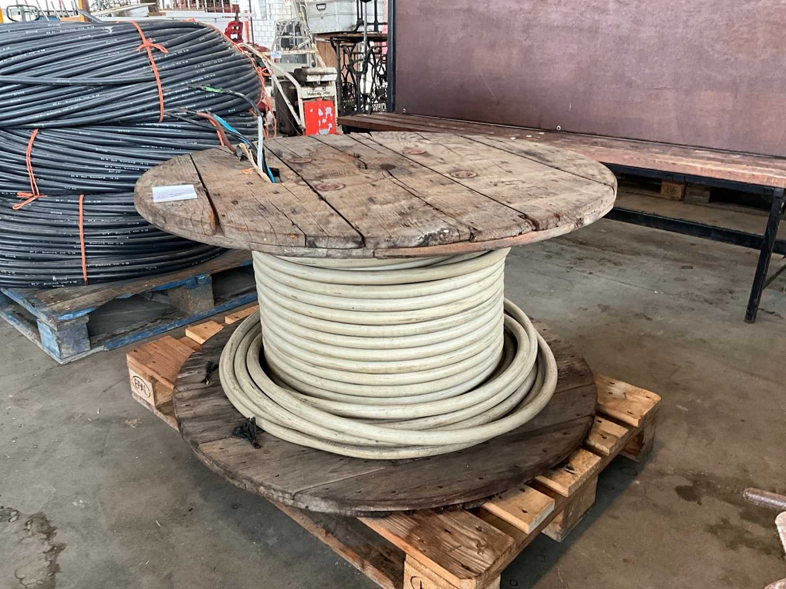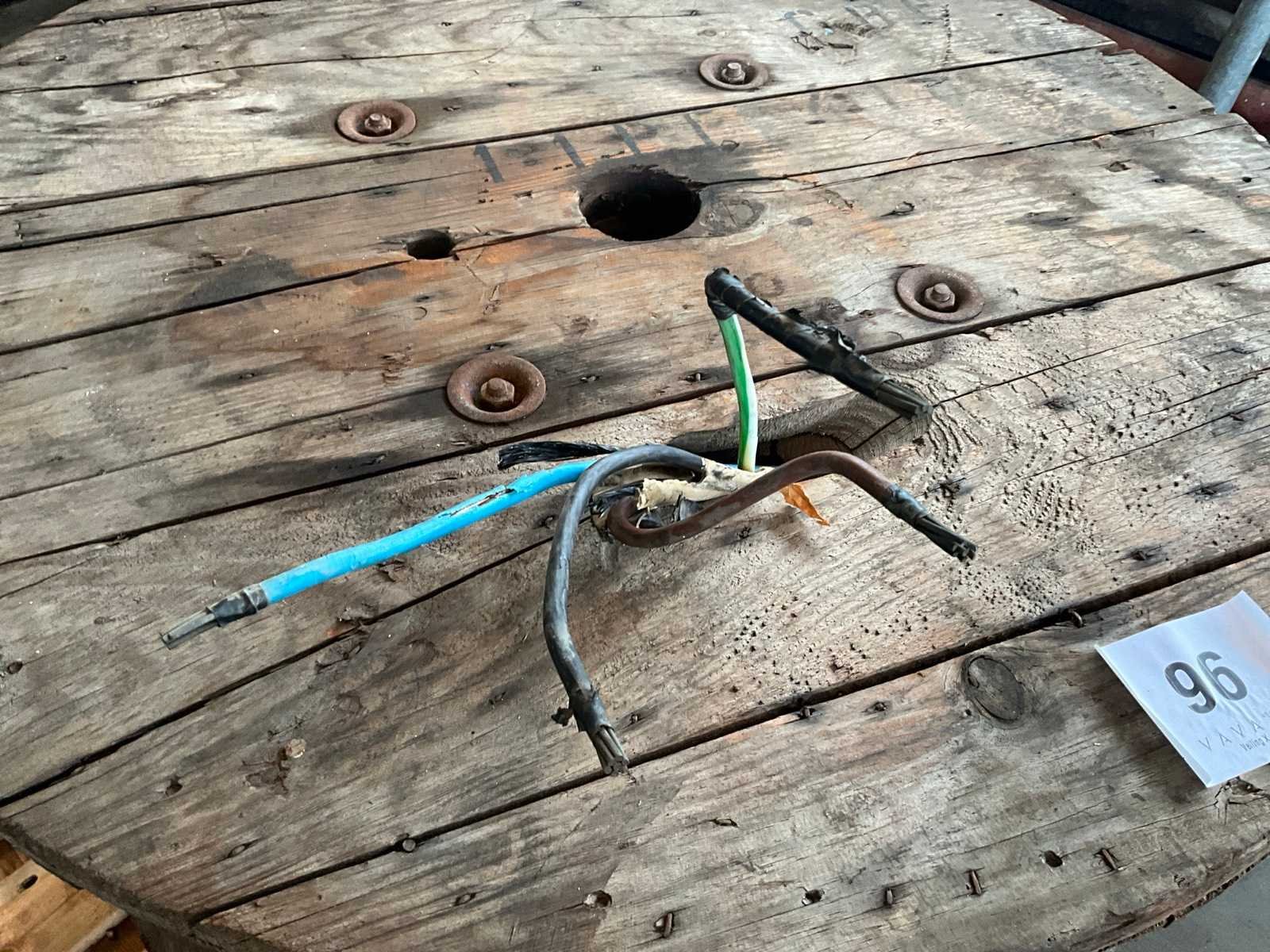 Houten bobijn inhoudende rol aangesproken elektriciteitskabel CEBEC 460 XVB Nee