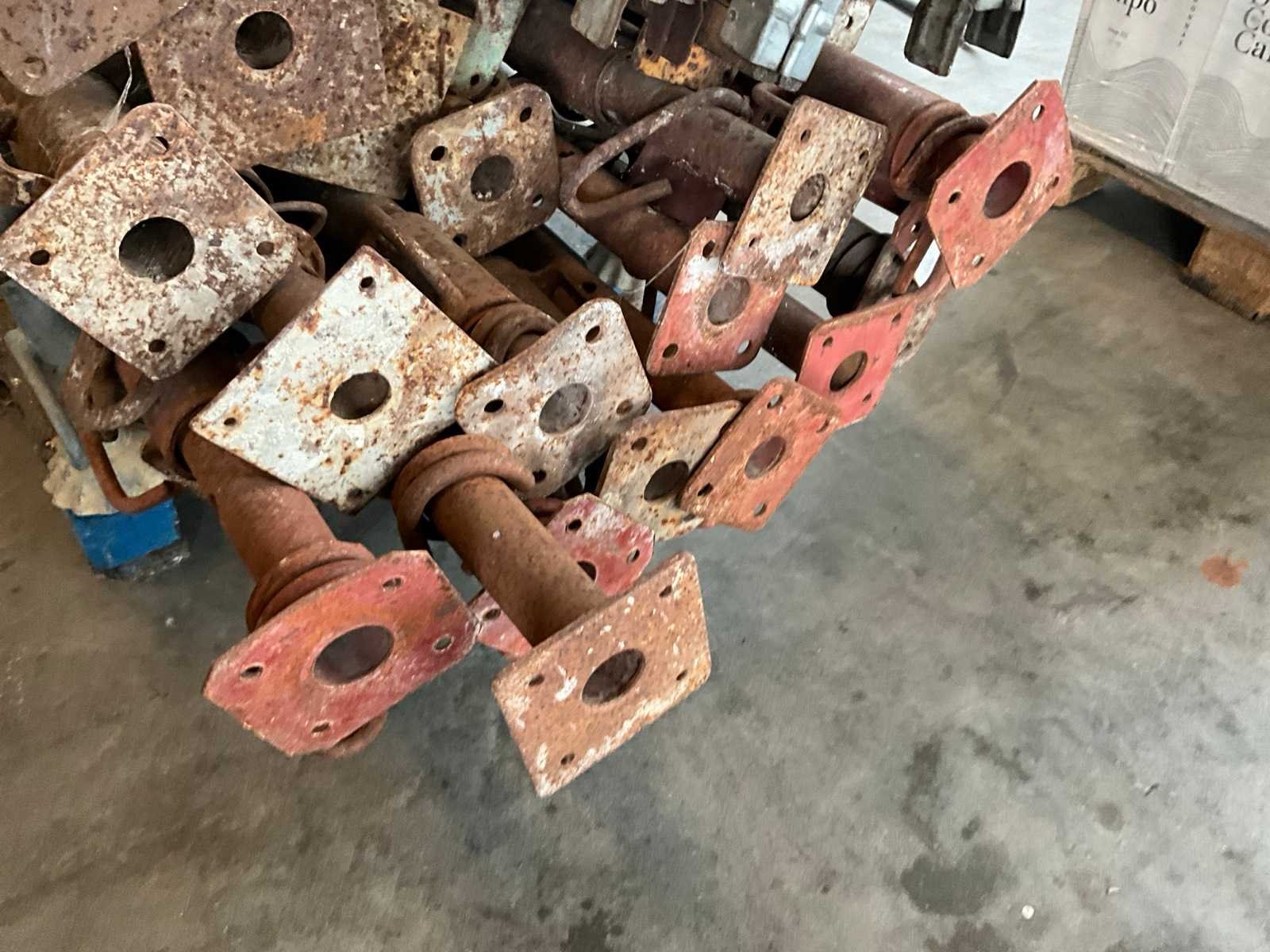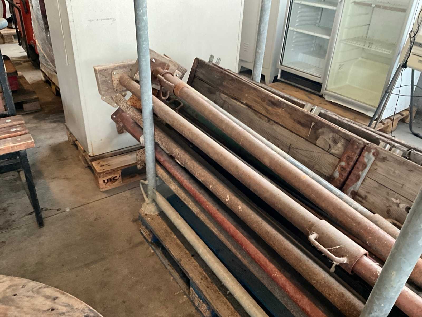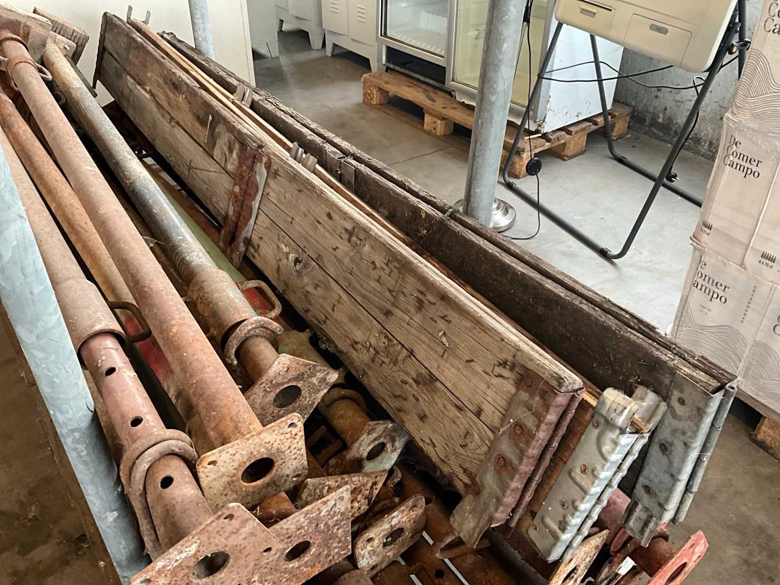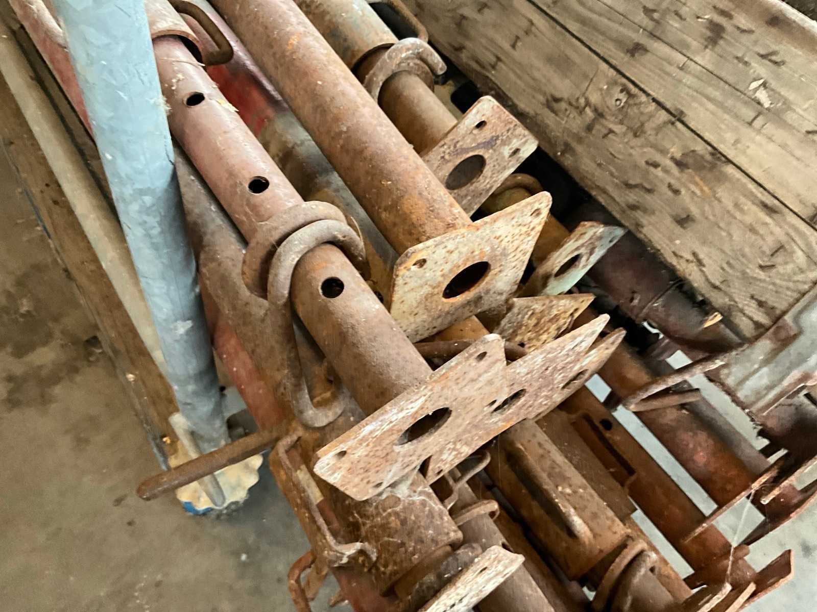 Elk van minimaal 150 cm hoog en verstelbaar in de hoogte, waaronder enige voorzien van houten voet en compleet met enkele houten palletringen in metalen stapelbok. Nee