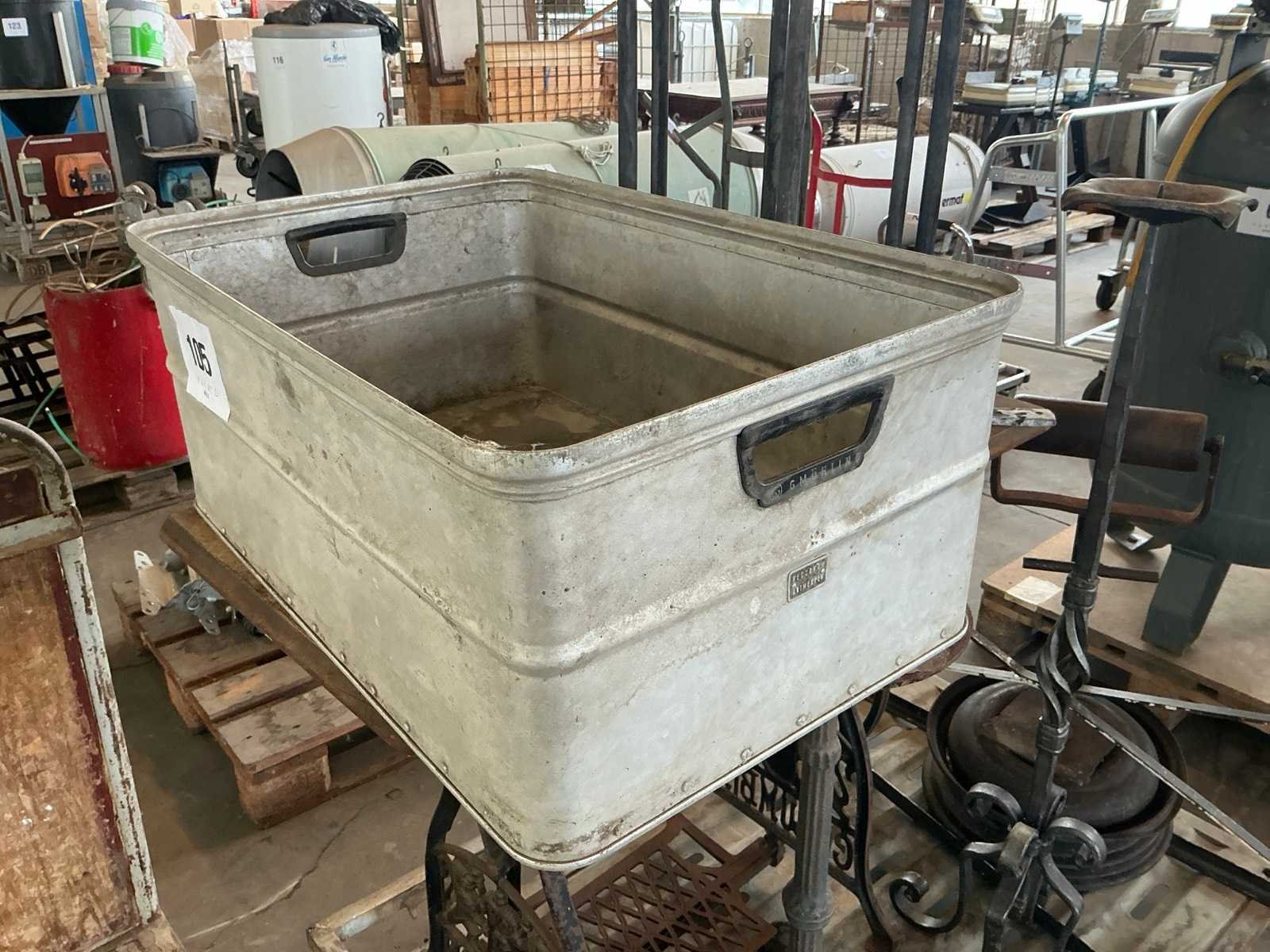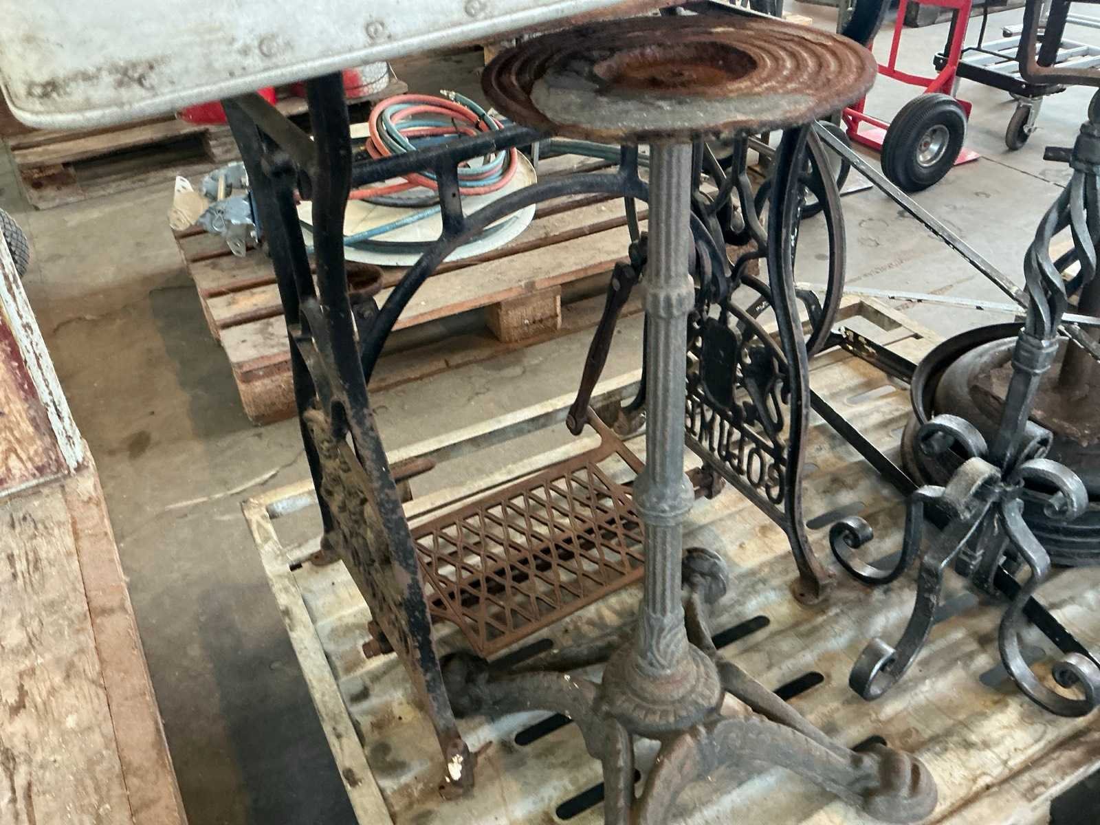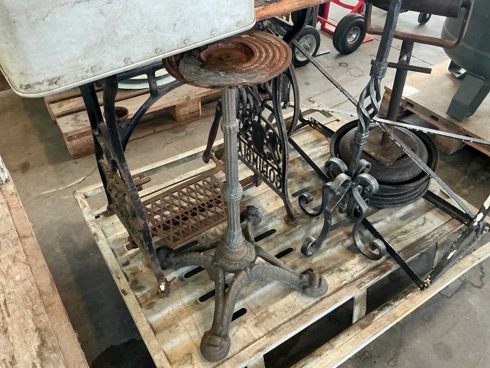 Waaronder 1x naaitafel voorzien van voetbediening, afmeting: 90x40x70cm, gietijzeren kaarshouder 105cm, 2 diverse onderstellen en afrolelement op voet, compleet met metalen bak Gmöhlin 65x40x25cm Nee