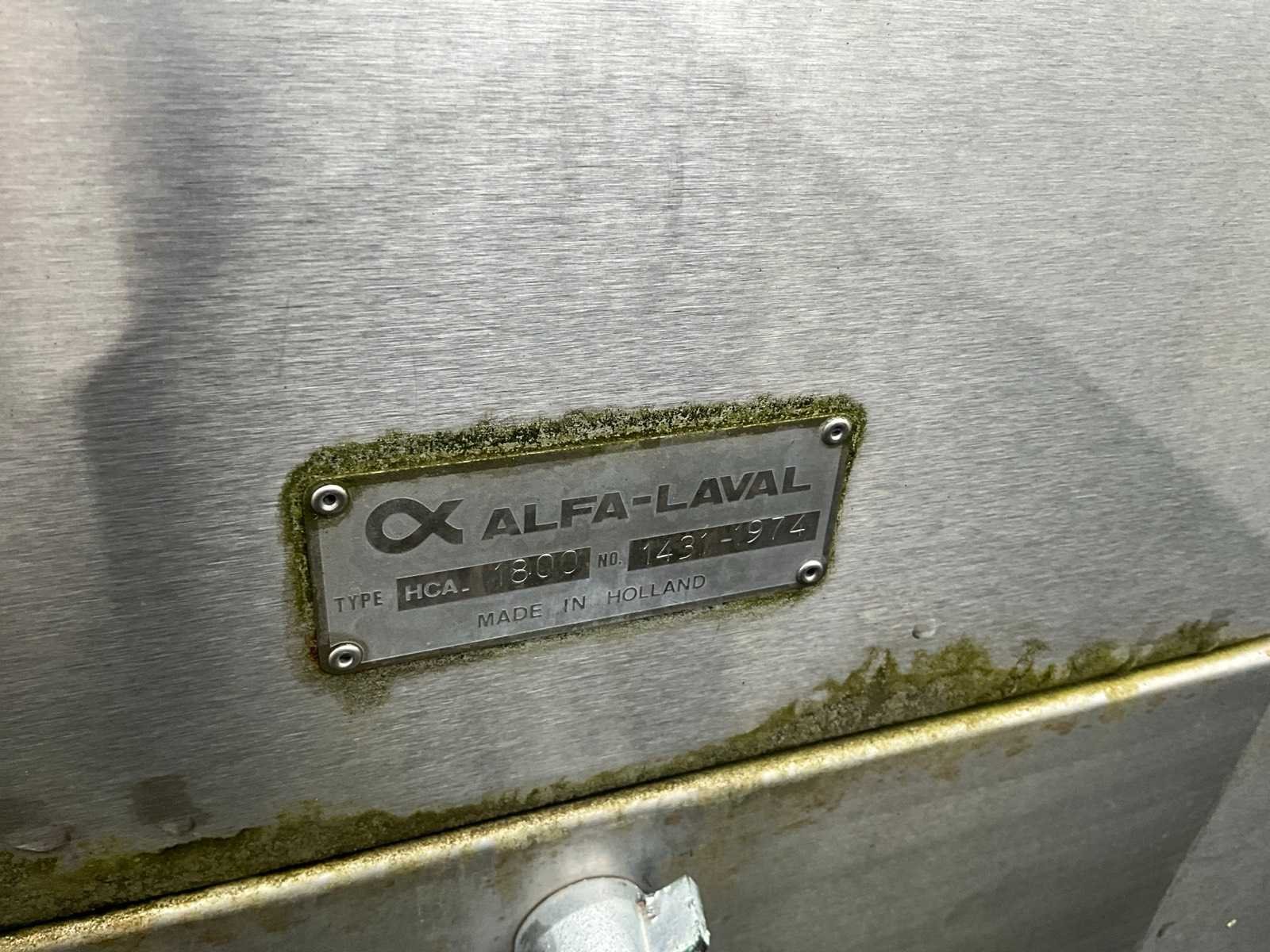 Nee Merk: Alfa-Laval Type: HCA-1800 Totale afmeting L: 2700mm Totale afmeting Breedte: 1300mm Totale afmeting Hoogte: 1500mm