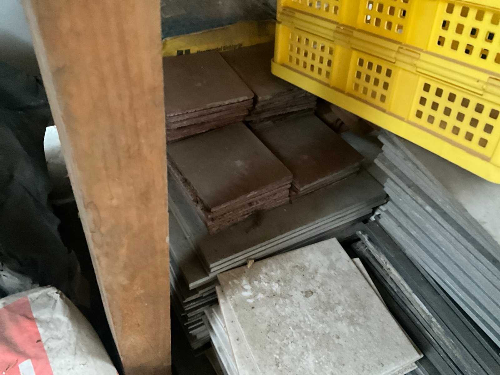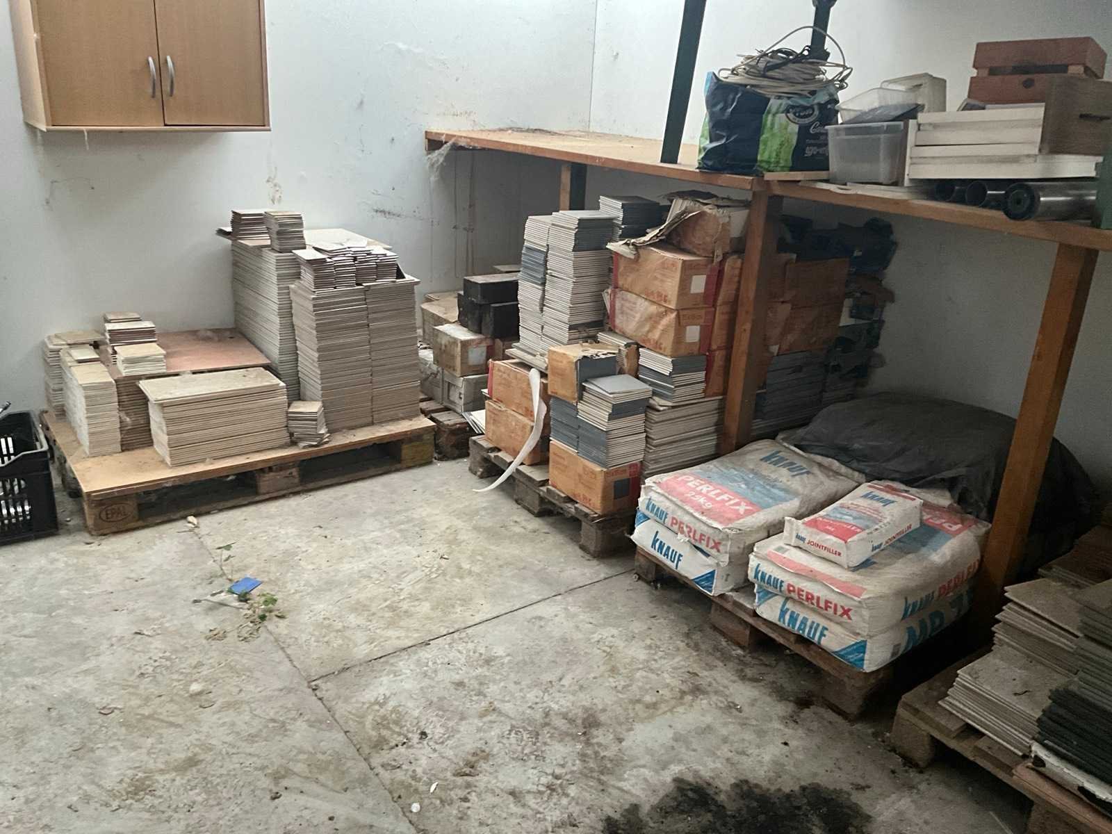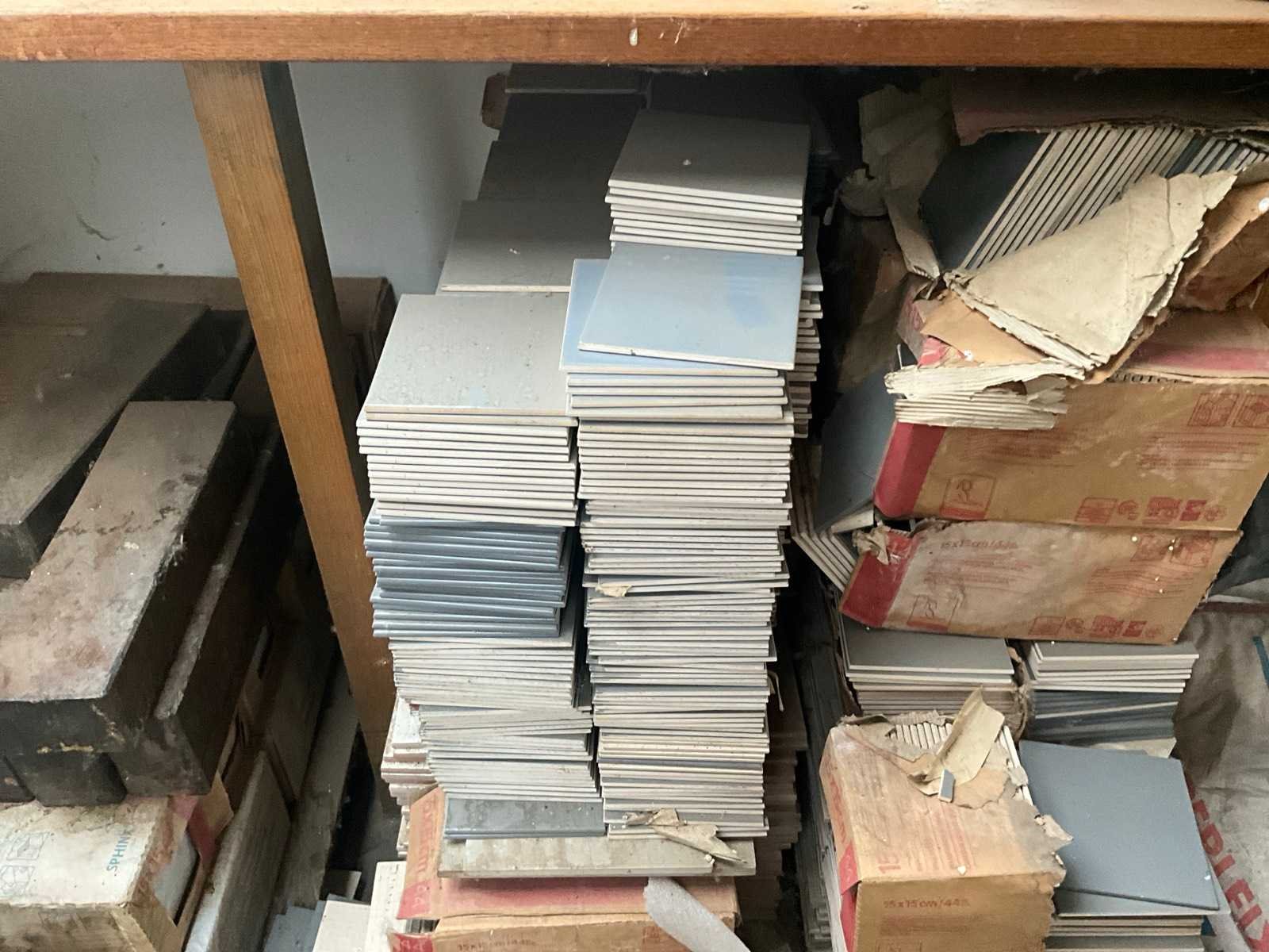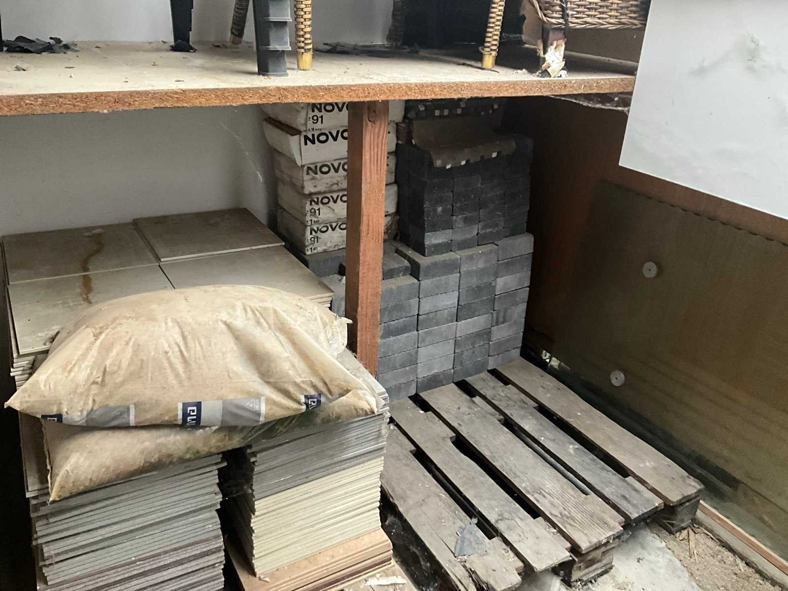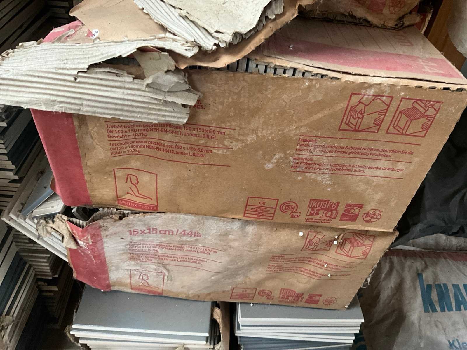 Grote partij diverse tegels in diverse formaten en uitvoeringen, alsook enig toebehoren. Zich bevindend op 10 diverse pall. Nee