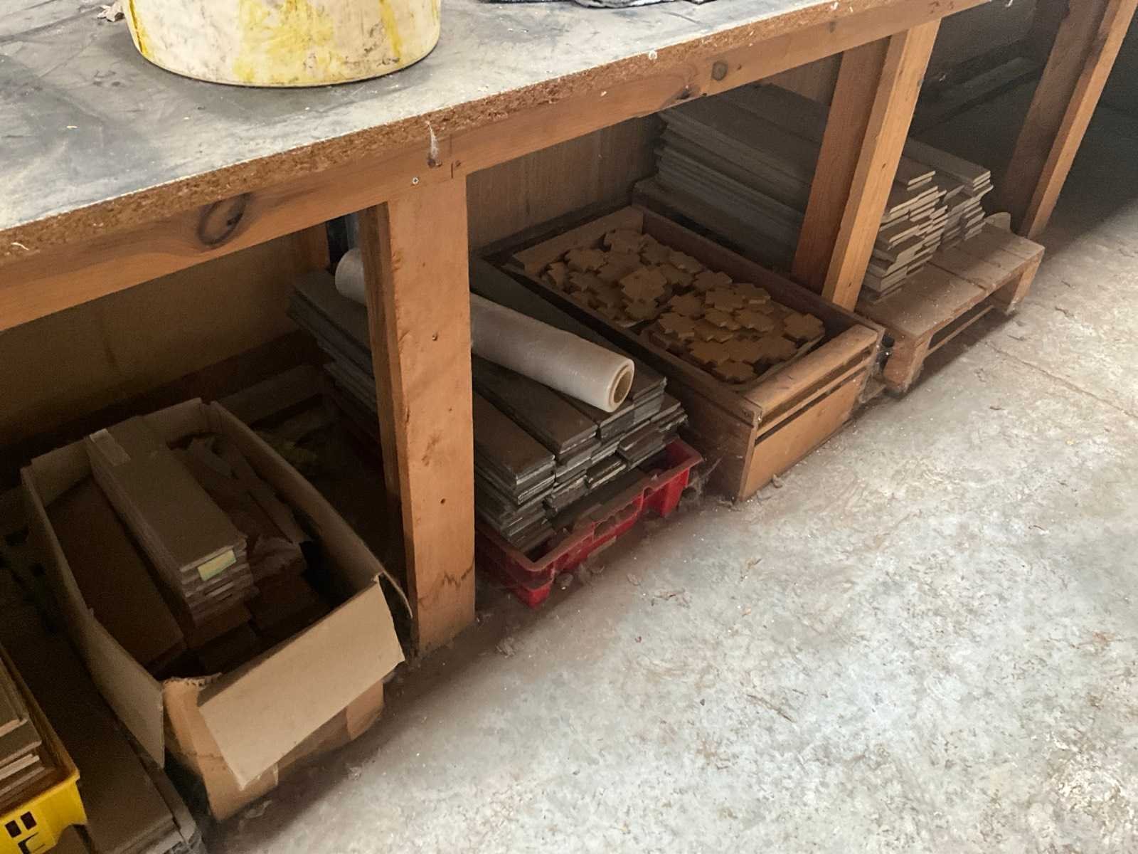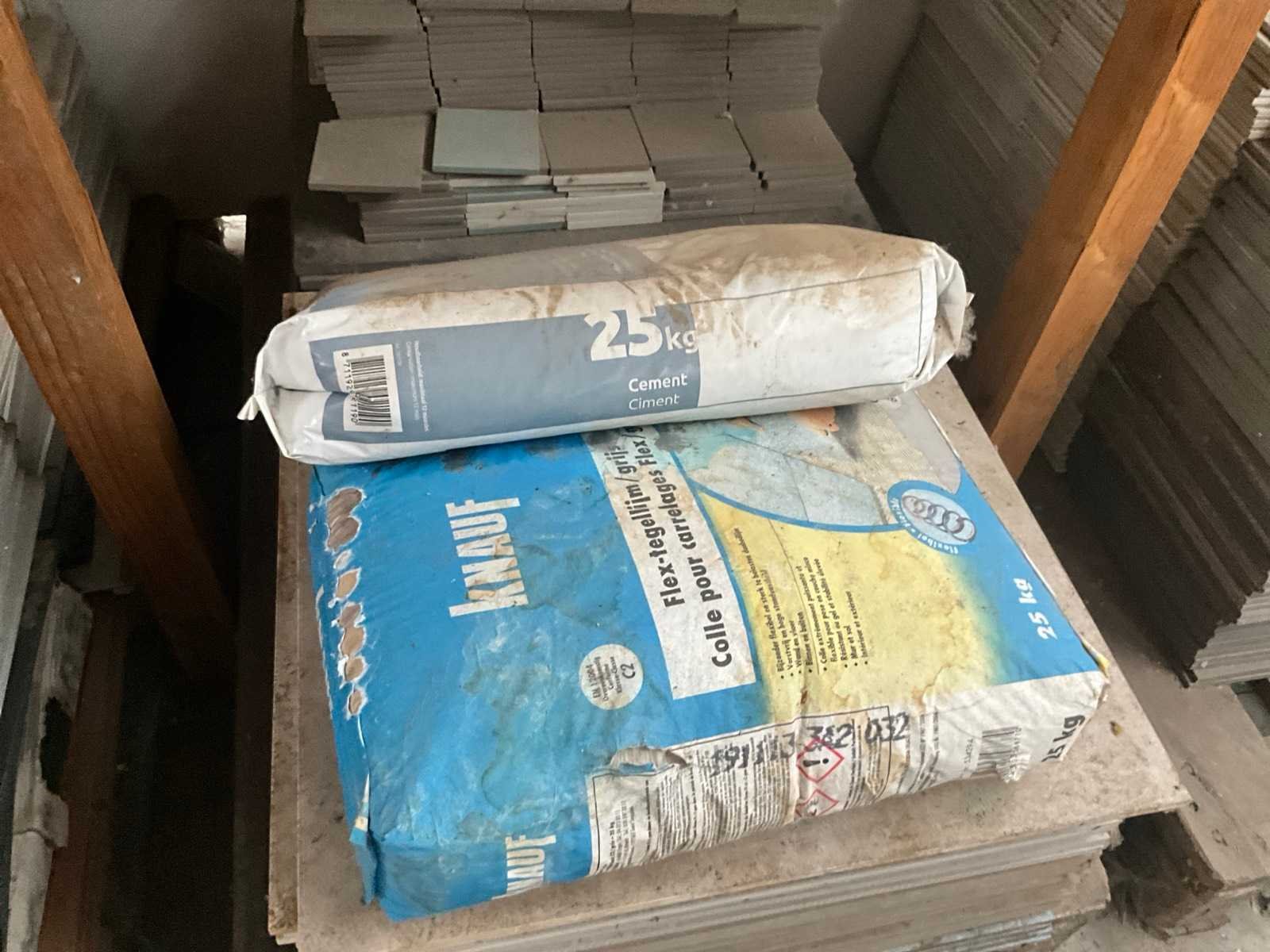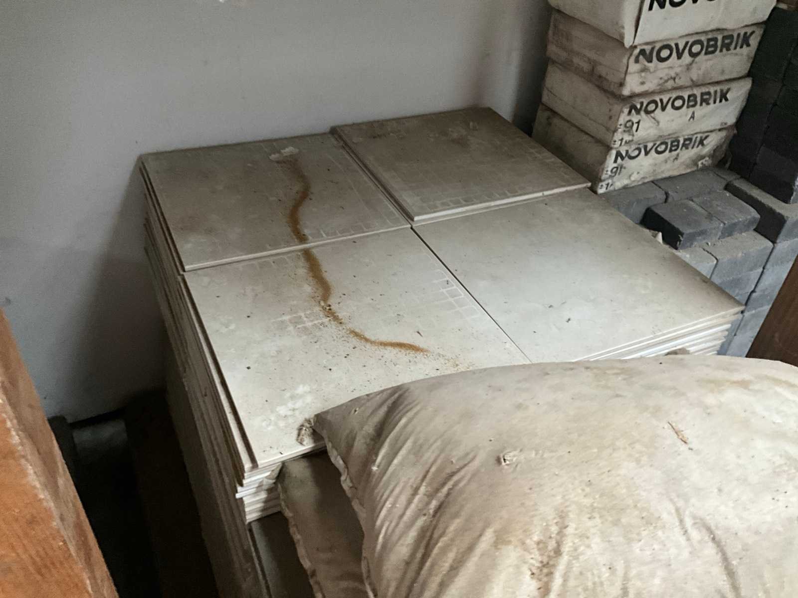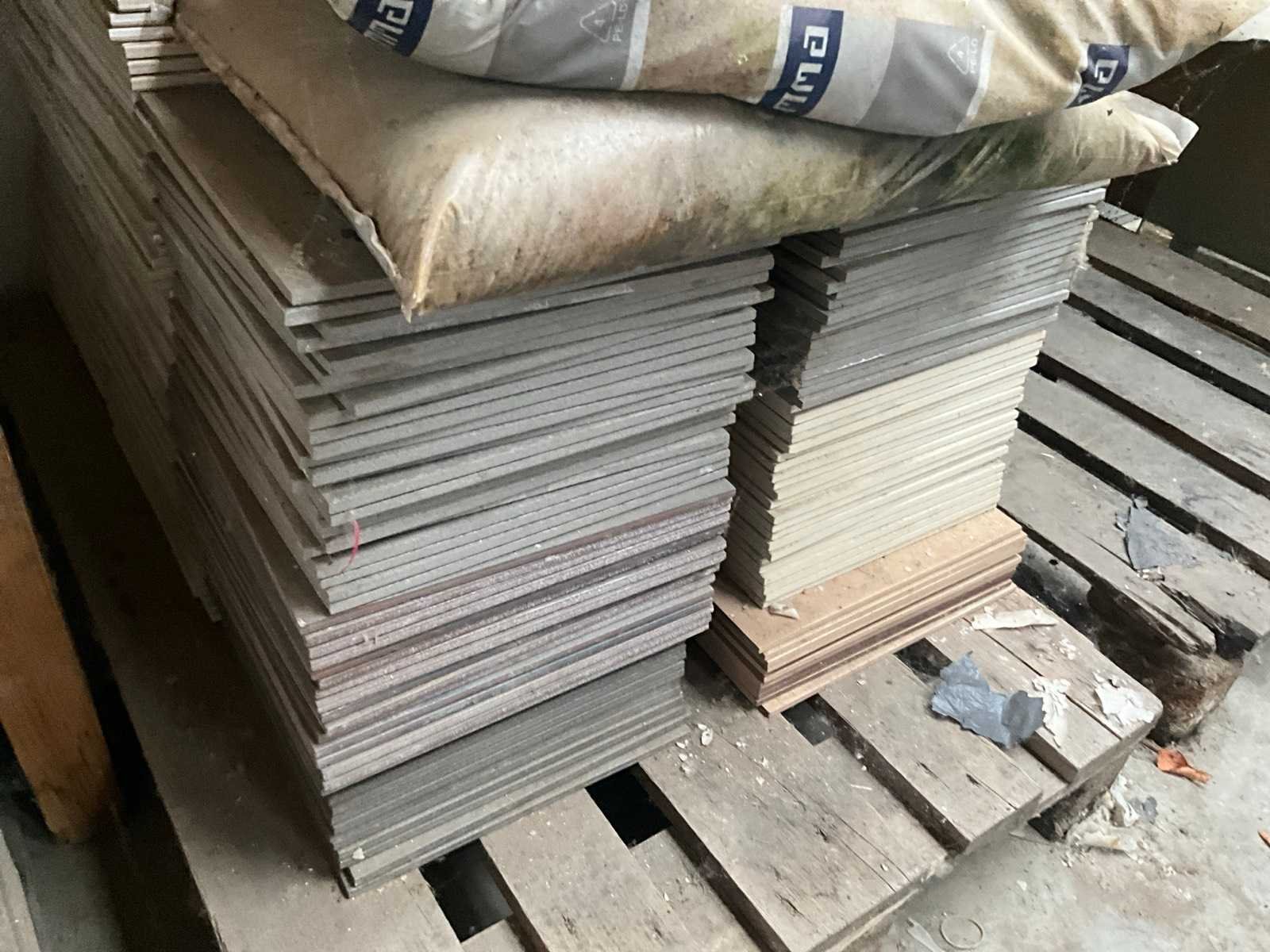 Grote partij diverse tegels in diverse formaten en uitvoeringen, alsook enig toebehoren. Zich bevindend op 10 diverse pall. Nee