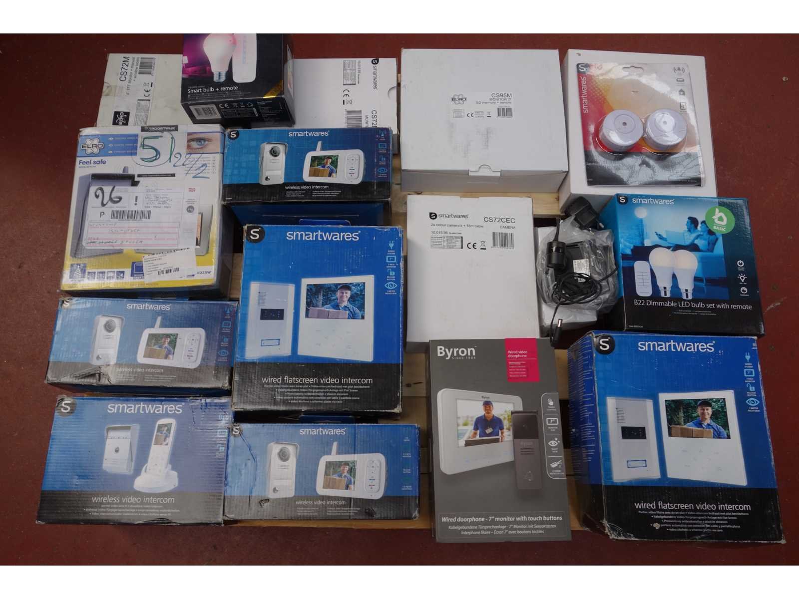 Lot met 17 Smartwares producten,video-deurintercom,alarms,camera enz. (nieuw en retourgoederen) Nee Merk: Smartwares