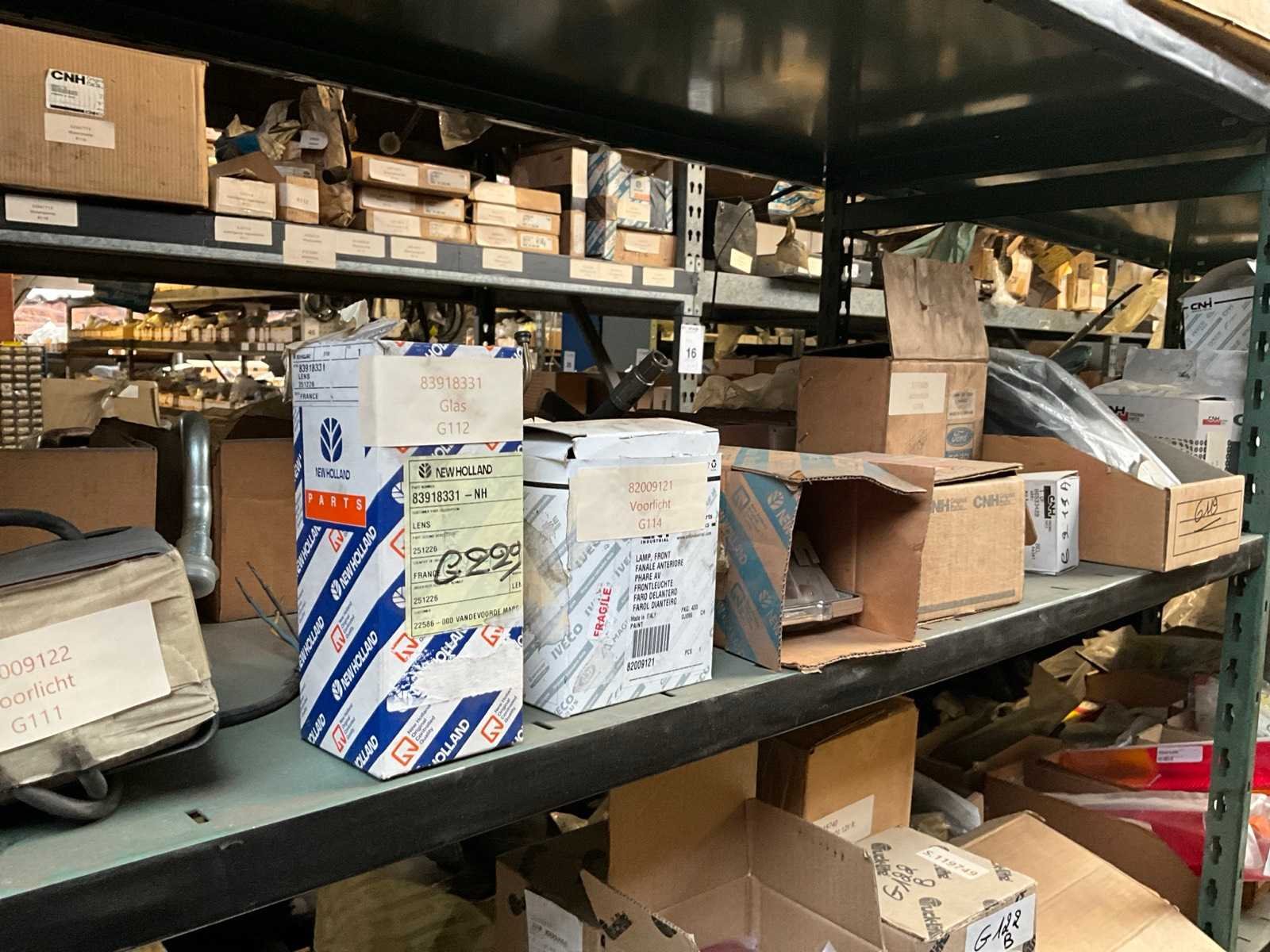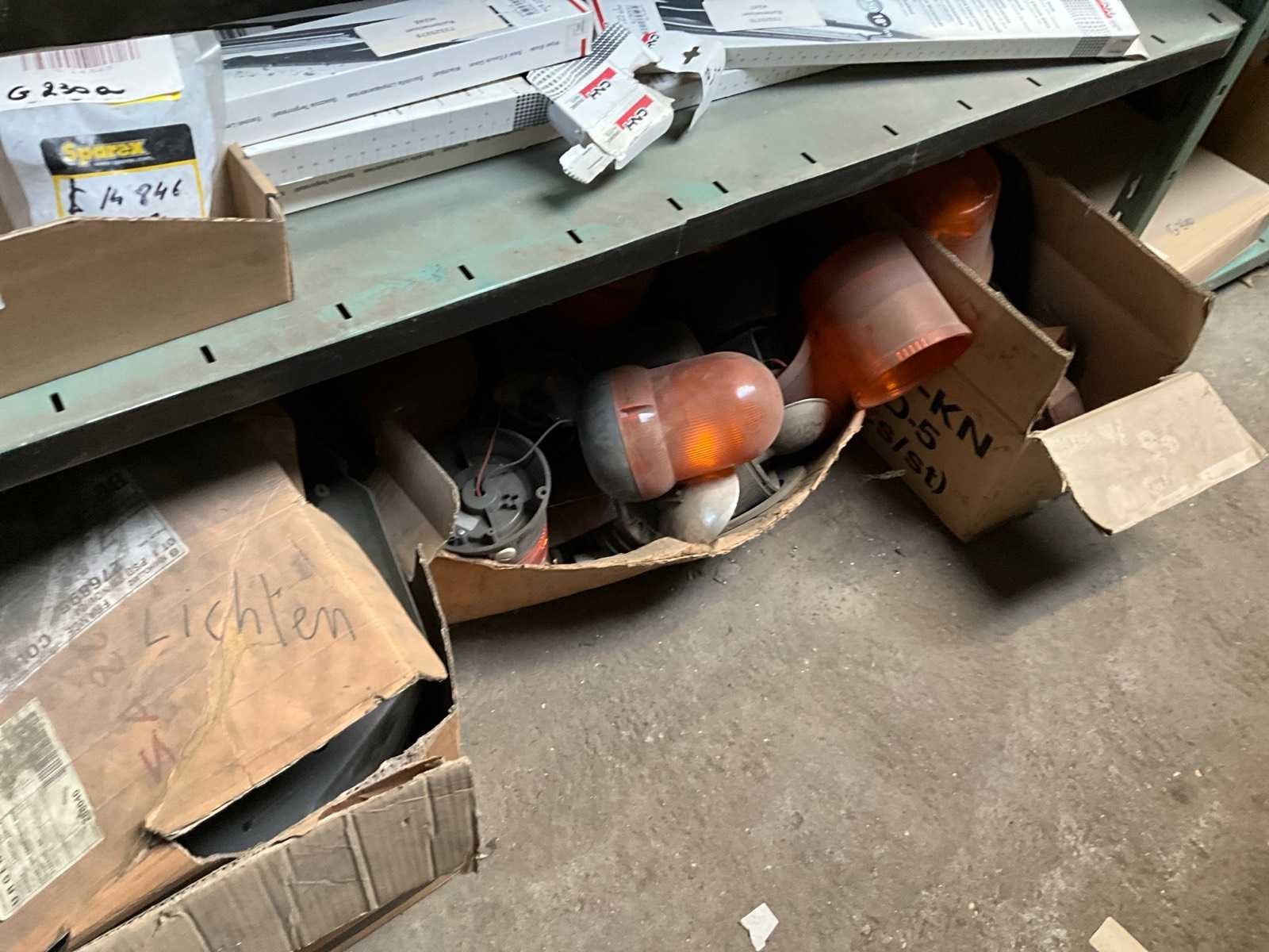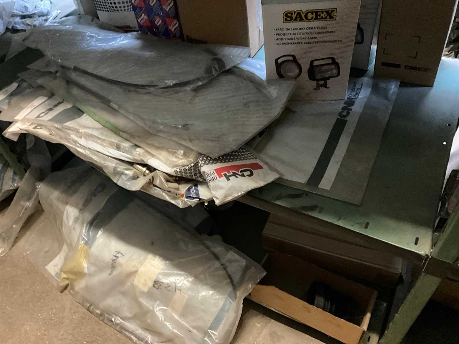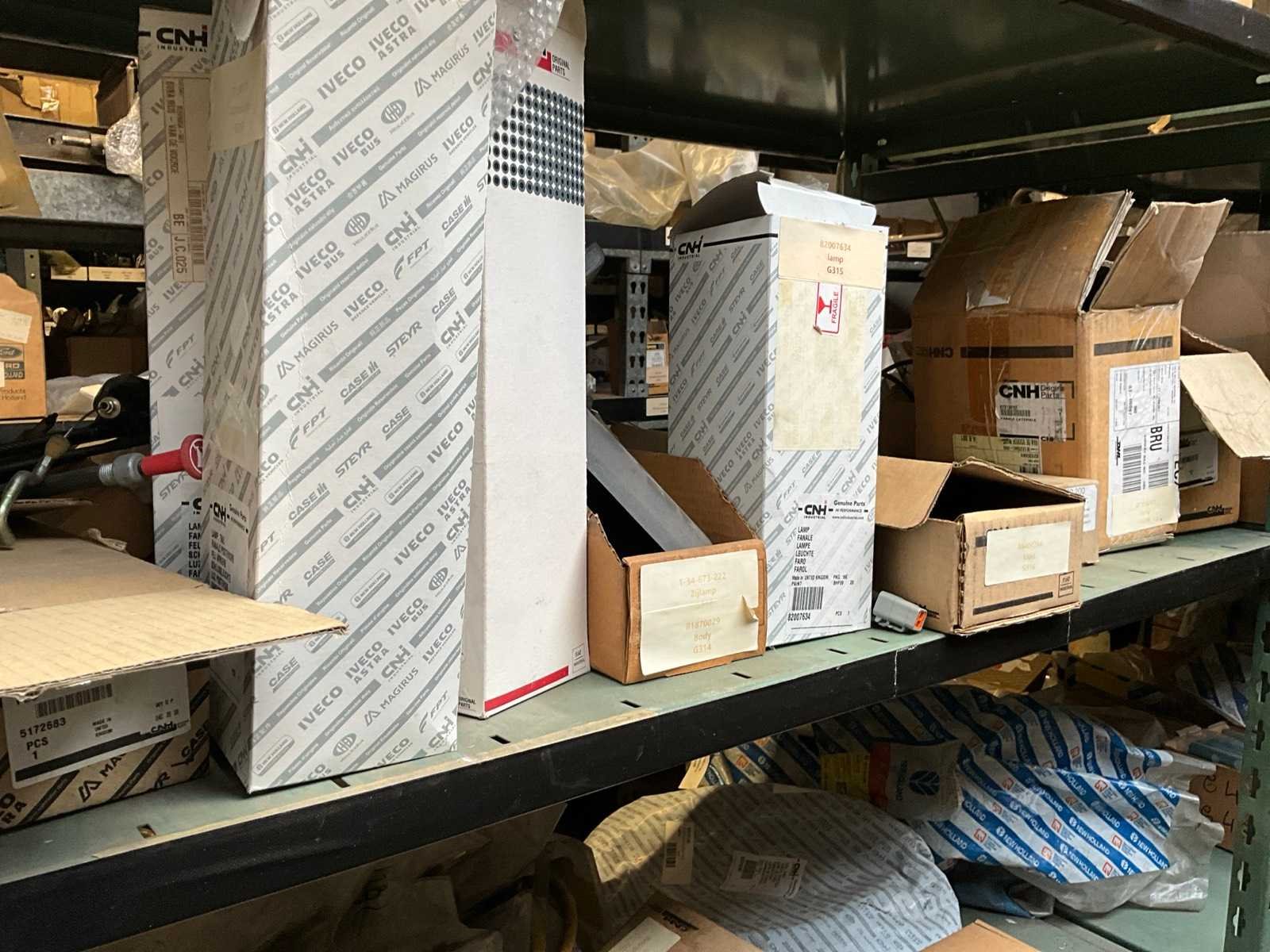 Bestaand uit inhoud 3x rek (12x sectie) waaronder originele verlichting-zwaailichten en spiegels (glas), werklichten, ruitenwisser bladen, gasveren, doorsteekkabels, vaste leidingen, enz.., ALLES BOVENOP REK NIET INCLUSIEF!!! Nee Merk: New Holland