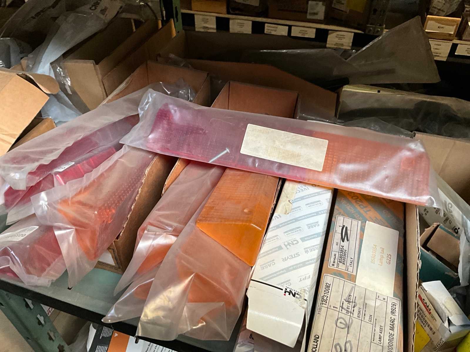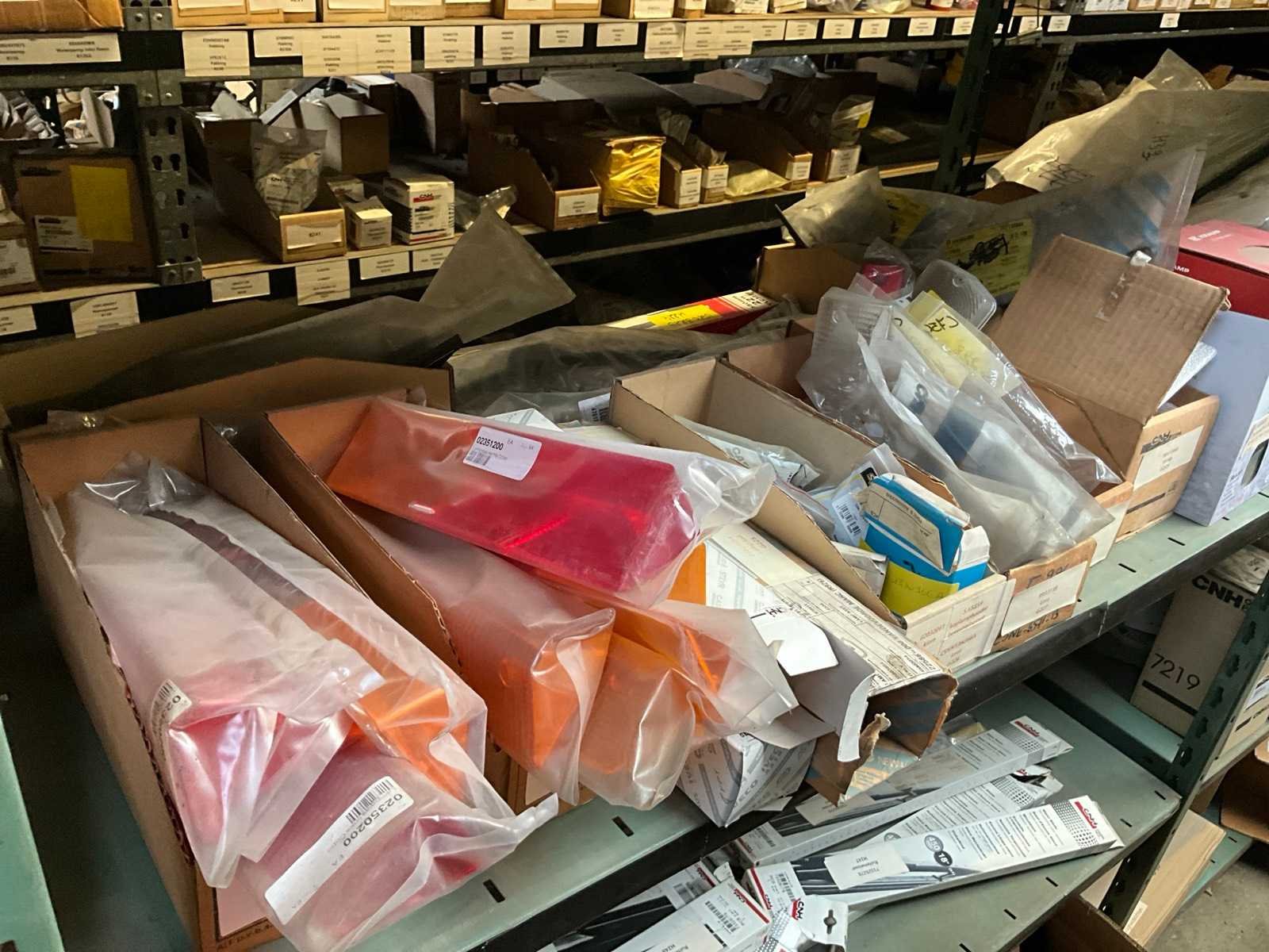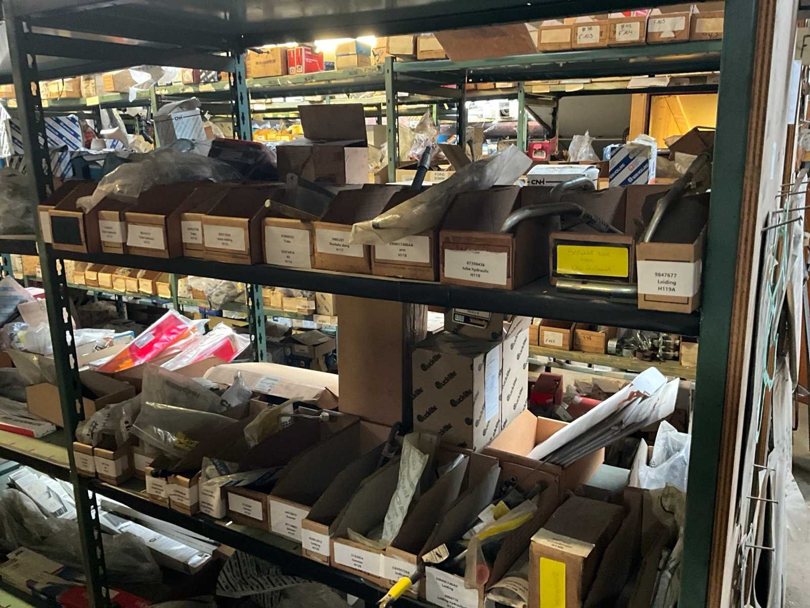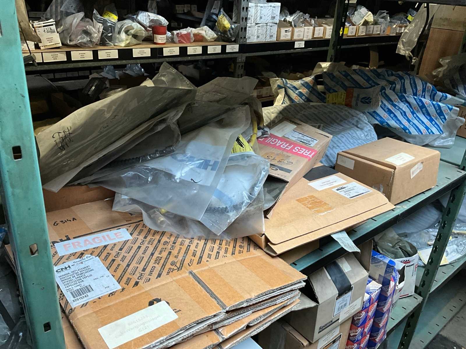 Bestaand uit inhoud 3x rek (12x sectie) waaronder originele verlichting-zwaailichten en spiegels (glas), werklichten, ruitenwisser bladen, gasveren, doorsteekkabels, vaste leidingen, enz.., ALLES BOVENOP REK NIET INCLUSIEF!!! Nee Merk: New Holland