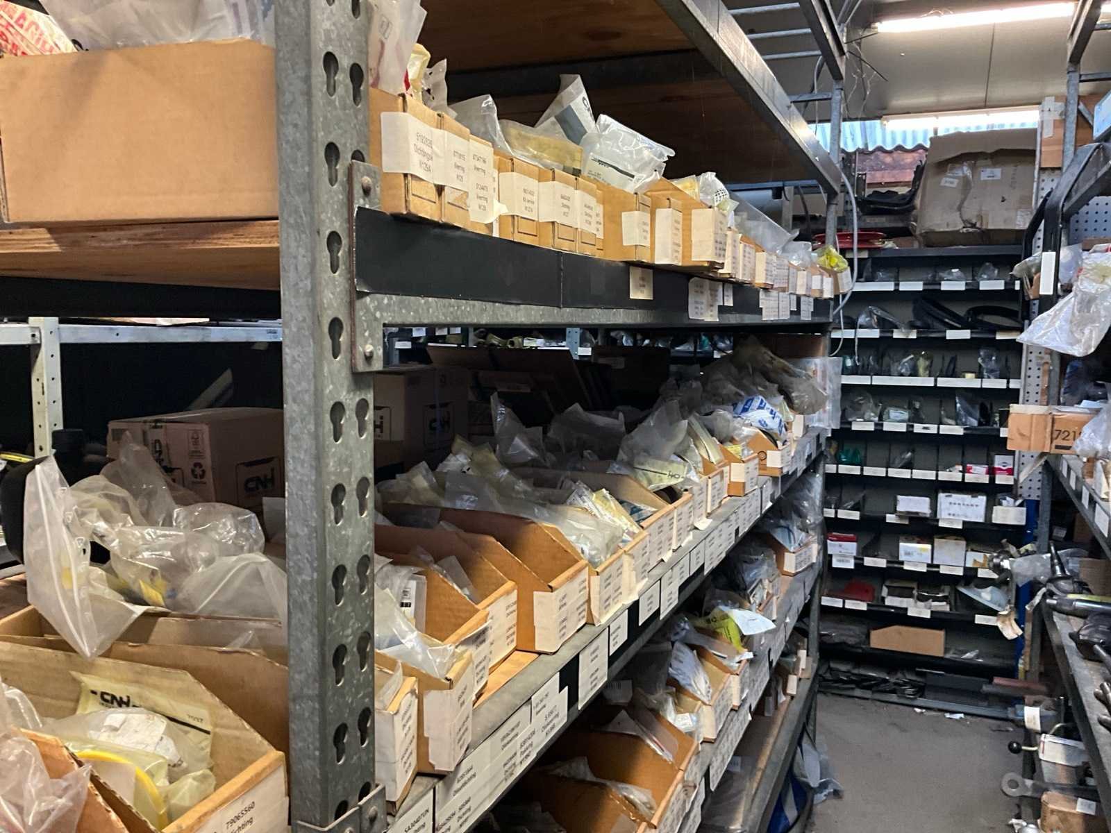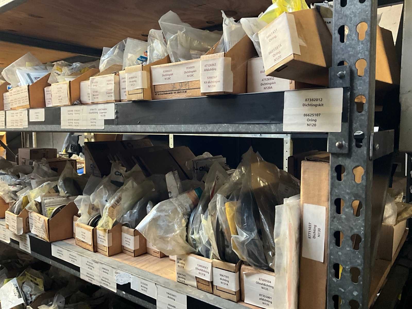 Inhoud eerste deel rek met 5 secties bestaand uit remschijven, dichtingen, flenzen, accumulatoren enz.. Nee Merk: New Holland